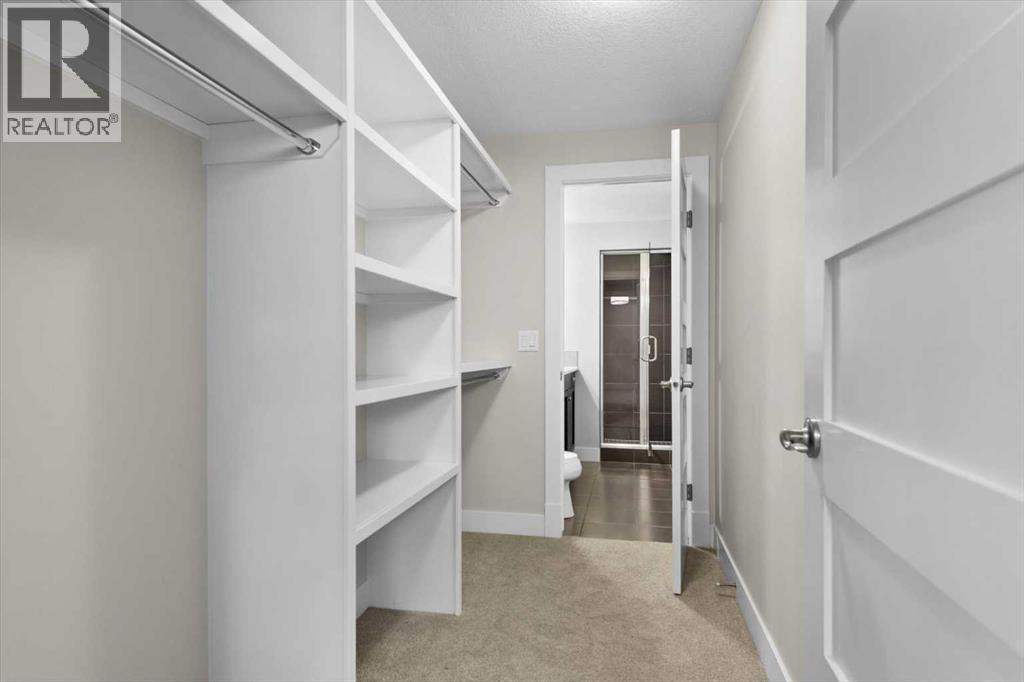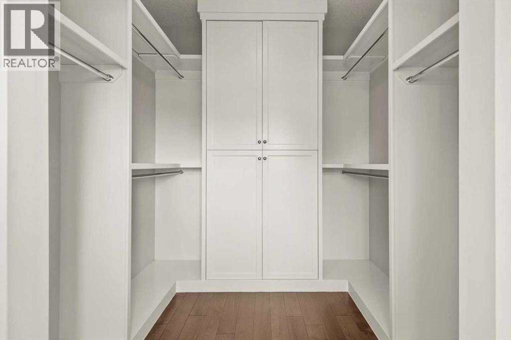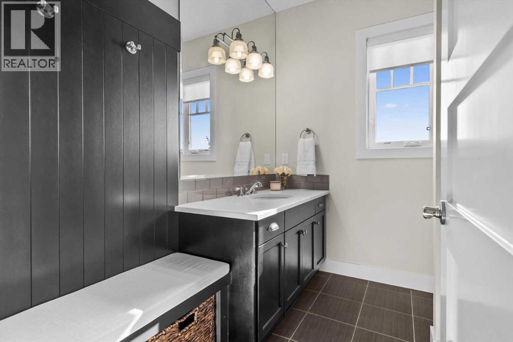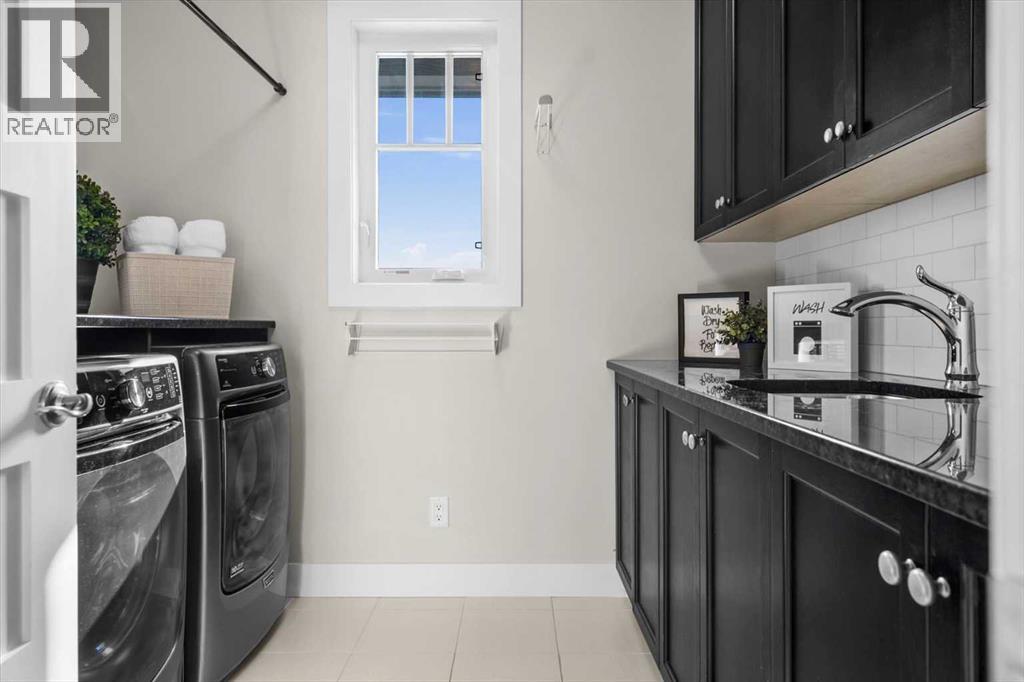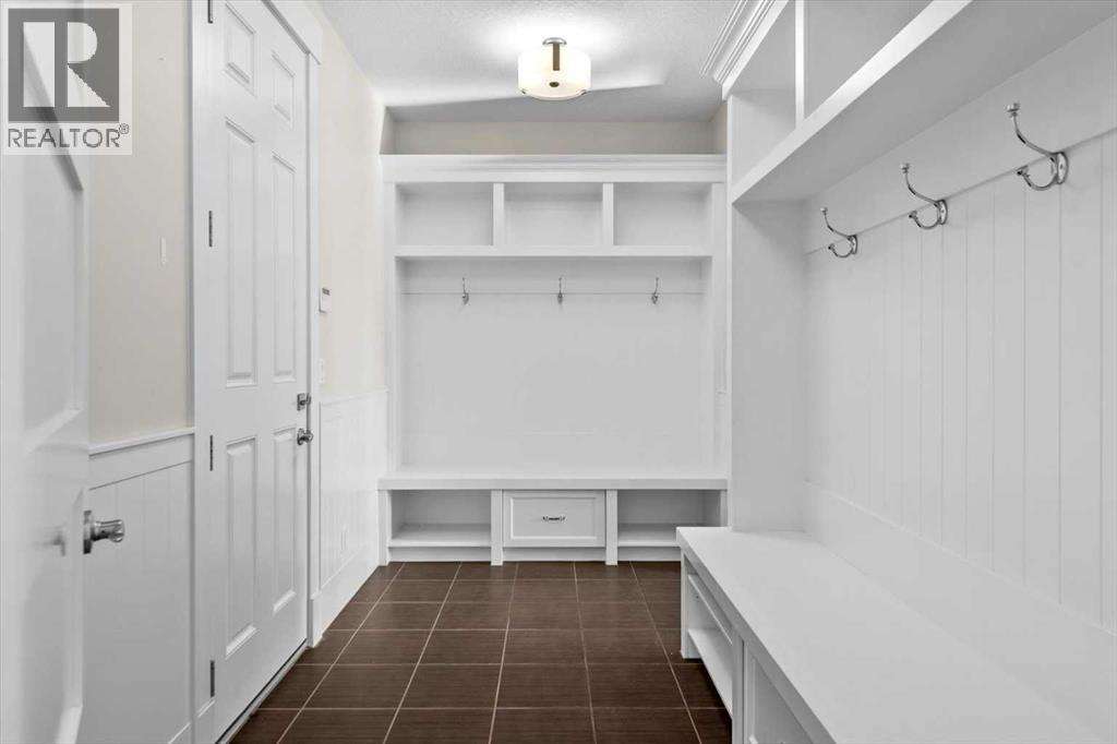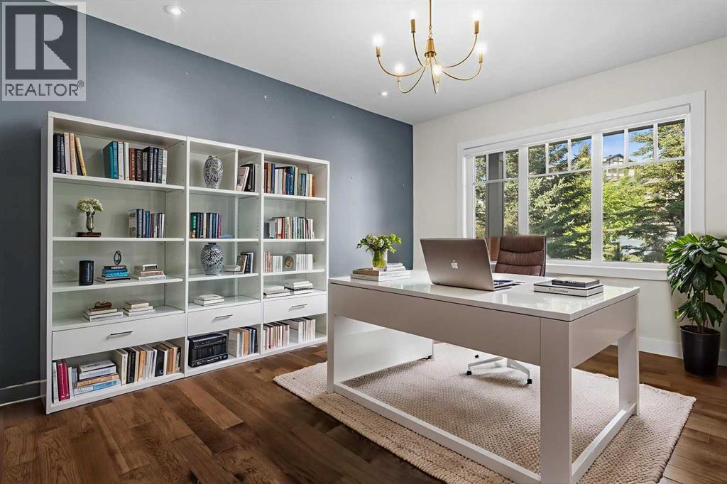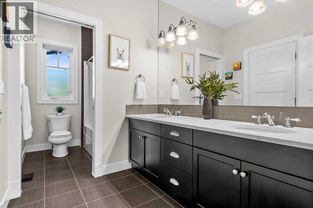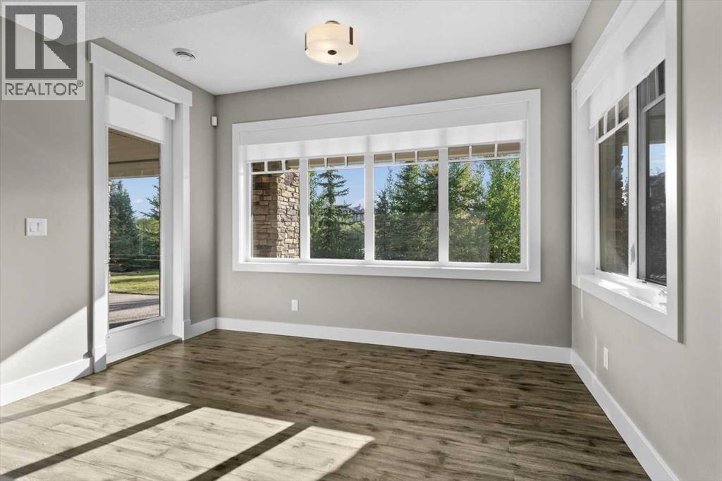 Set in one of Watermark's most coveted locations, a quiet cul-de-sac backing southwest onto green space with tranquil pond and stunning Rocky Mountain views, this custom built two-storey walkout by Wolf Custom Homes offers over 4500sqft of thoughtfully designed living space. Entering the home you are immediately captivated by the millwork on the artisanal curved wood staircase, the natural light streaming throughout the home and the serenity of the stunning views. The main floor is ideal for family connection and entertaining featuring an expansive great room with focal gas fireplace and custom cabinetry, a spacious dining area, and a chef-inspired kitchen with Calcutta Marble quartz countertops, premium JennAir appliances, and walk-through butler’s pantry with exceptional storage. An expansive southwest deck off the kitchen and dining area is perfect for weekend BBQ’s, outdoor dining or simply relaxing in the sunshine. Working from home is easy with the private office with double french doors on the main floor, while the large mudroom with custom built-ins keeps family life organized. On the upper level hardwood floors lead to four generous bedrooms and three full bathrooms, including a luxurious primary suite with vaulted ceilings, spectacular mountain views, a walk-in dressing room with custom cabinetry, and a spa-inspired ensuite featuring heated floors, dual vanities, a deep soaker tub, and a 10mm glass shower with dual rain heads. Two of the upper bedrooms share a Jack & Jill bathroom, and the fourth has its own private bath—ideal for teens or guests. A large laundry room on the upper level adds everyday convenience. The walkout lower level features in-slab heating and is perfect for movie nights or entertaining with the spacious family room and wet bar. Additionally on the lower level is a fifth bedroom that can double as a gym or second home office, a full bathroom, and plentiful storage. The private backyard continues the theme of exceptional living wi th professional landscaping, mature trees, fire pit conversation area, discreetly positioned hot tub, irrigation system and an abundance of space to play and entertain. Not to be missed is the finished oversized triple garage with polyaspartic flooring, slat walls, extensive built-in storage and EV charger. Recent updates to the home include servicing of furnaces, hot water tank, and A/C units; new light fixtures above island and in dining area, new wine fridge and icemaker in wet bar, hot tub, polyaspartic flooring and shelves in garage, mirrored wall in 5th bedroom, re-tiled shower base in ensuite, and addition of children’s play space under the stairs. Awarded Canada’s Community of the Year multiple times, Watermark features over 5km of paved trails, a network of cascading ponds and streams, community playgrounds and a Central Plaza. Exceptional access to several golf courses, the Rocky Mountains, Stoney Trail and downtown Calgary. (id:55577)