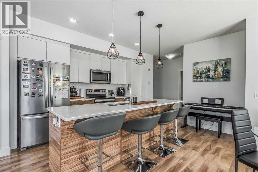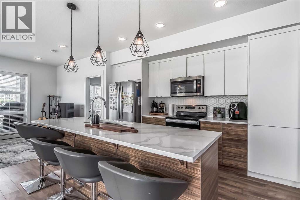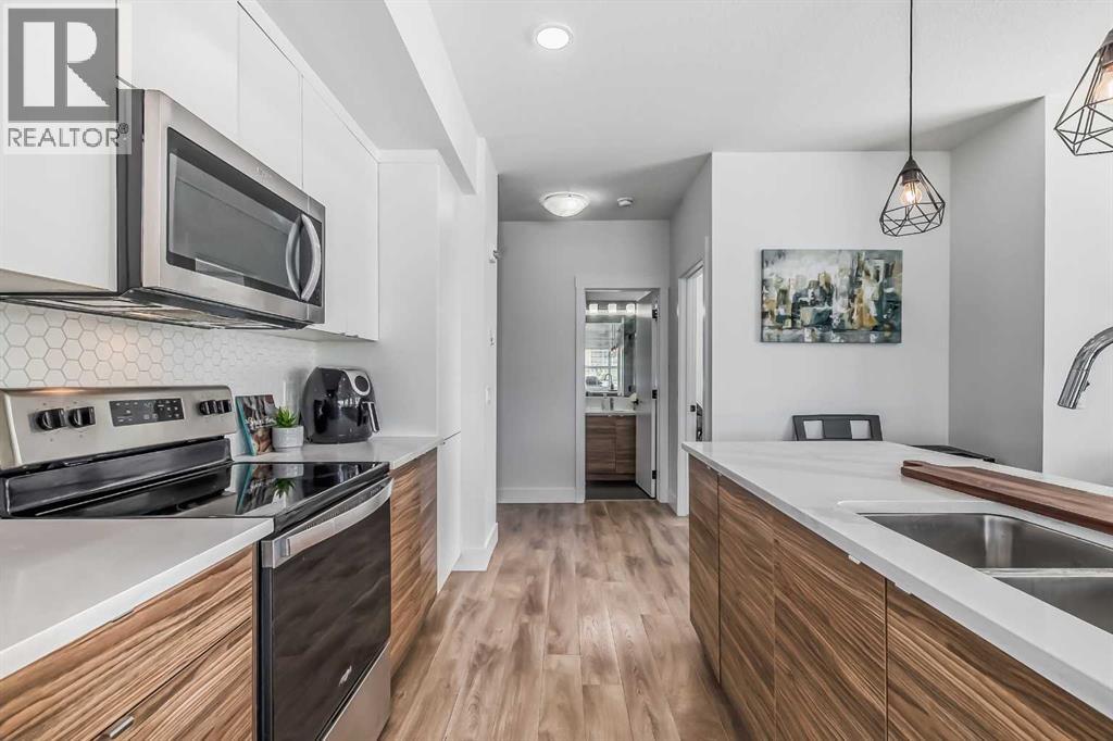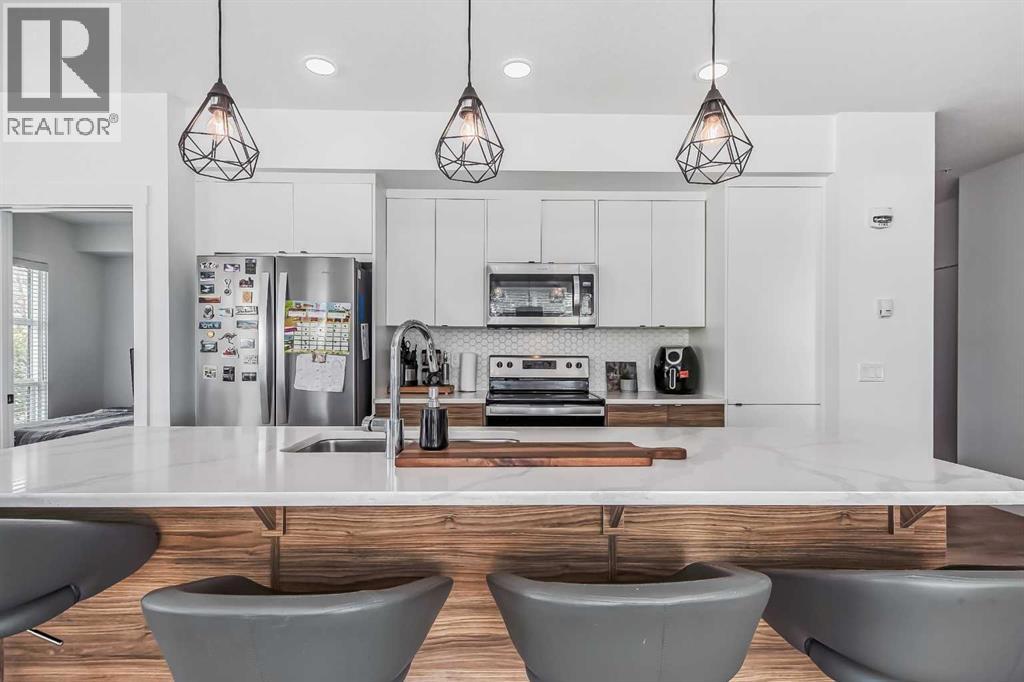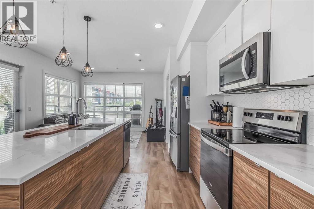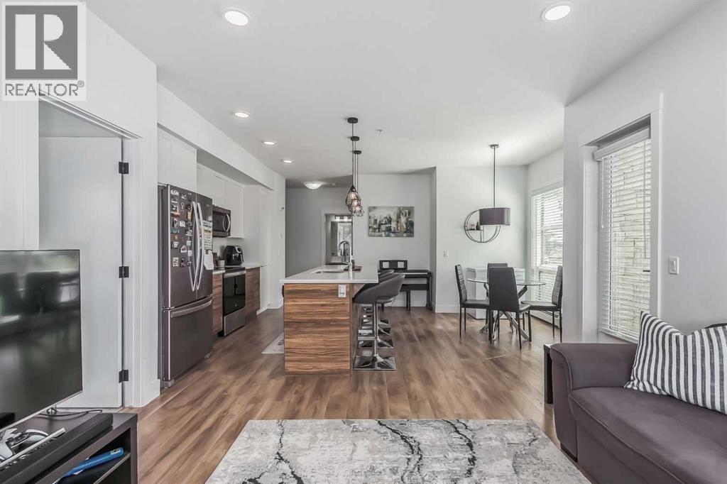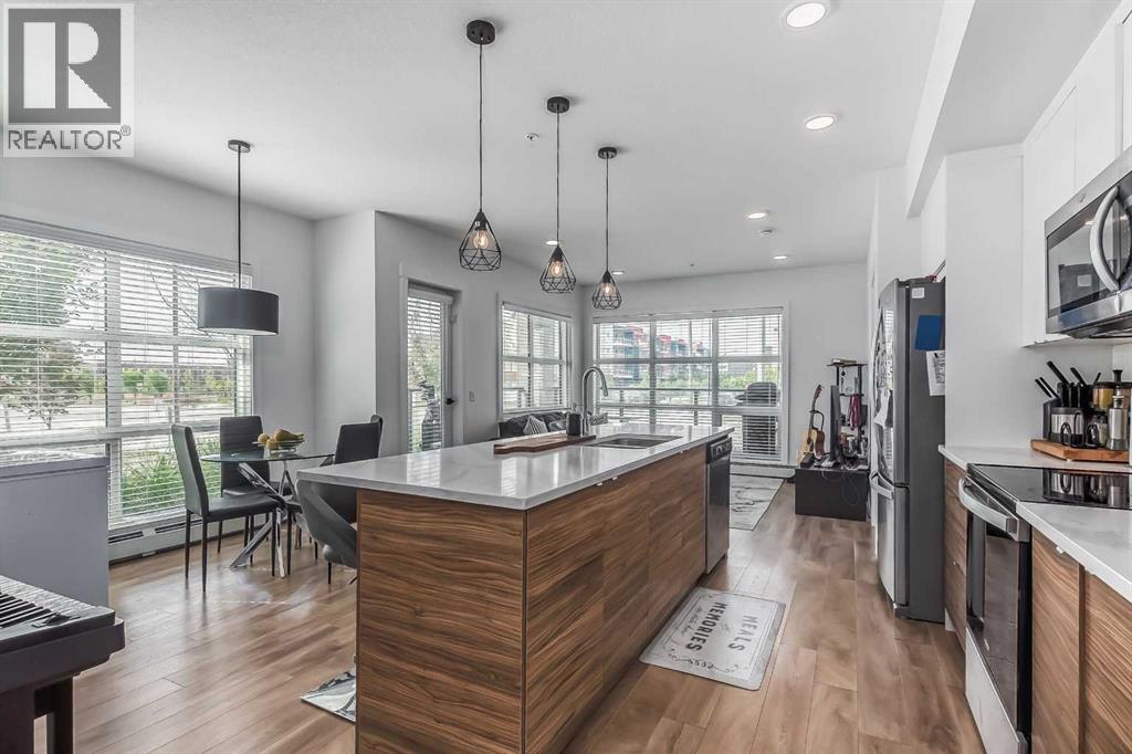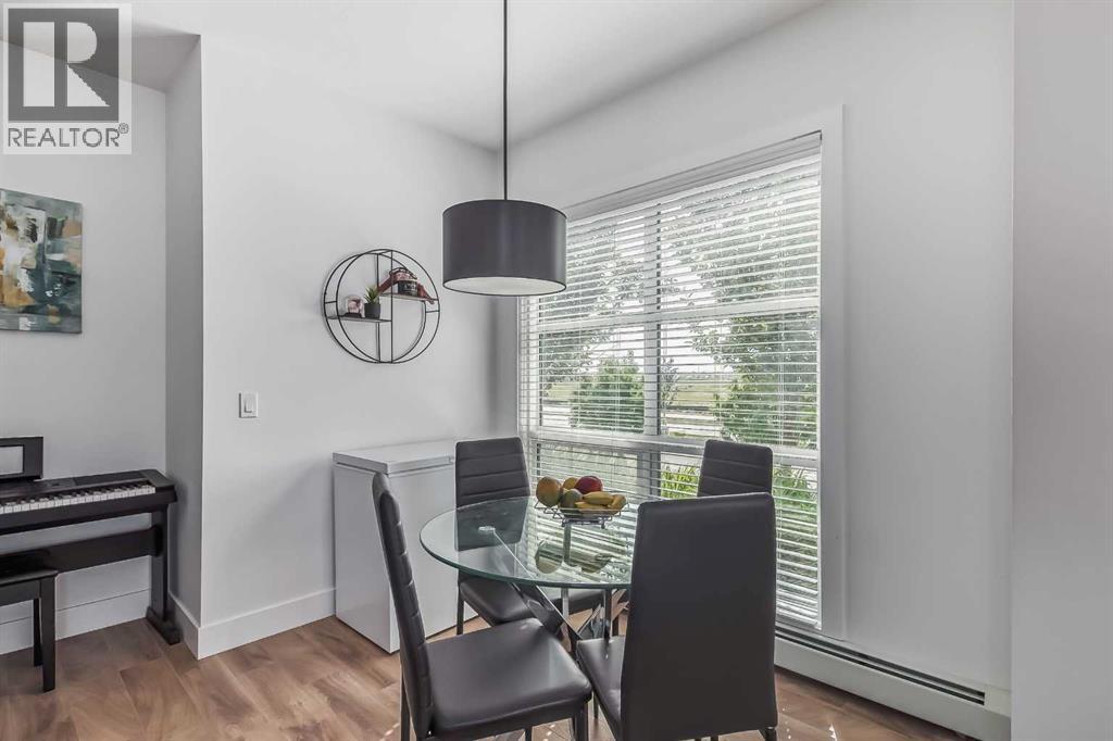 Welcome to this stunning end-unit ground floor apartment featuring 9-foot ceilings in the vibrant community of Seton. Perfectly situated in a premium location, this home offers breathtaking mountain views to the West and peaceful park views to the North.Inside, you’ll find wall-to-wall windows that fill the space with natural light, creating an inviting and airy atmosphere. The open and functional floor plan showcases a modern kitchen with a large peninsula breakfast bar island, quartz countertops, stainless steel appliances, and full-height cabinetry. The spacious living room and generous dining area are ideal for entertaining friends and family. The primary suite features a large window, a walk-in closet, and a luxurious ensuite complete with dual vanities, a soaker tub, and a stand-up shower with full-height tile. A well-sized second bedroom is complemented by a convenient 4-piece cheater ensuite, perfect for guests or family.This condo also comes with two titled underground secured parking stalls and a separate titled storage unit, ensuring all your parking and storage needs are met.Seton is one of Calgary’s fastest-growing communities, offering endless amenities including a VIP Cineplex theatre, public library, South Health Campus, the world’s largest YMCA, shopping, dining, schools, and easy access to Stoney Trail and Deerfoot Trail. Don’t miss out on this rare opportunity book your private showing today! (id:55577)