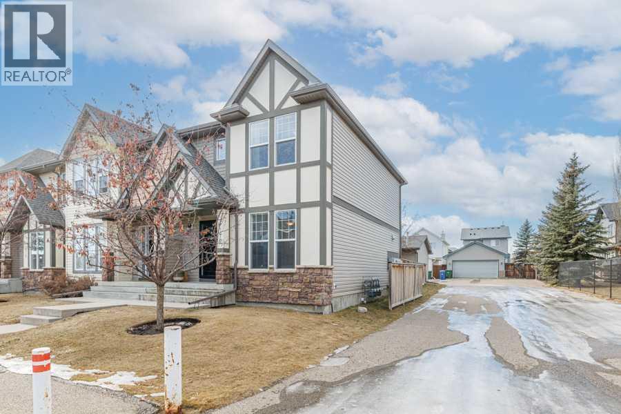 Beautifully maintained end-unit townhome in an exceptional location! This fully developed two story offers approx.. 1300 sq. ft with an additional 568 sq. ft. in developed basement. Upper-level features two bedrooms, two full baths, and a generous open loft area, for your office or bonus room. The bright main floor features a large living room, spacious dining area, and open kitchen with an island for two. A convenient half bath completes this level. The fully developed basement includes a large family room, a 3rd bedroom, full bathroom, laundry and storage. Recent upgrades include a new two-stage Trane furnace in October 2025, including duct and vent cleaning, and new smoke and CO detectors. New 40gallon Bradford White hot water tank installed in 2022. Additional features: water softener, built in vacuum system with attachments, and speakers wired throughout the home. Enjoy the private fenced backyard with brick patio area. Lawn, fence, and tree maintenance included by condo. Backing onto alley way is an insulated , double detached garage complete with furnace. This home is close to shopping, schools, parks, walking paths, Fish Creek Park, and easy access to Stoney Trail. Move in ready and ideally located!!! OPEN HOUSE SUNDAY 2to 4 PM (id:55577)