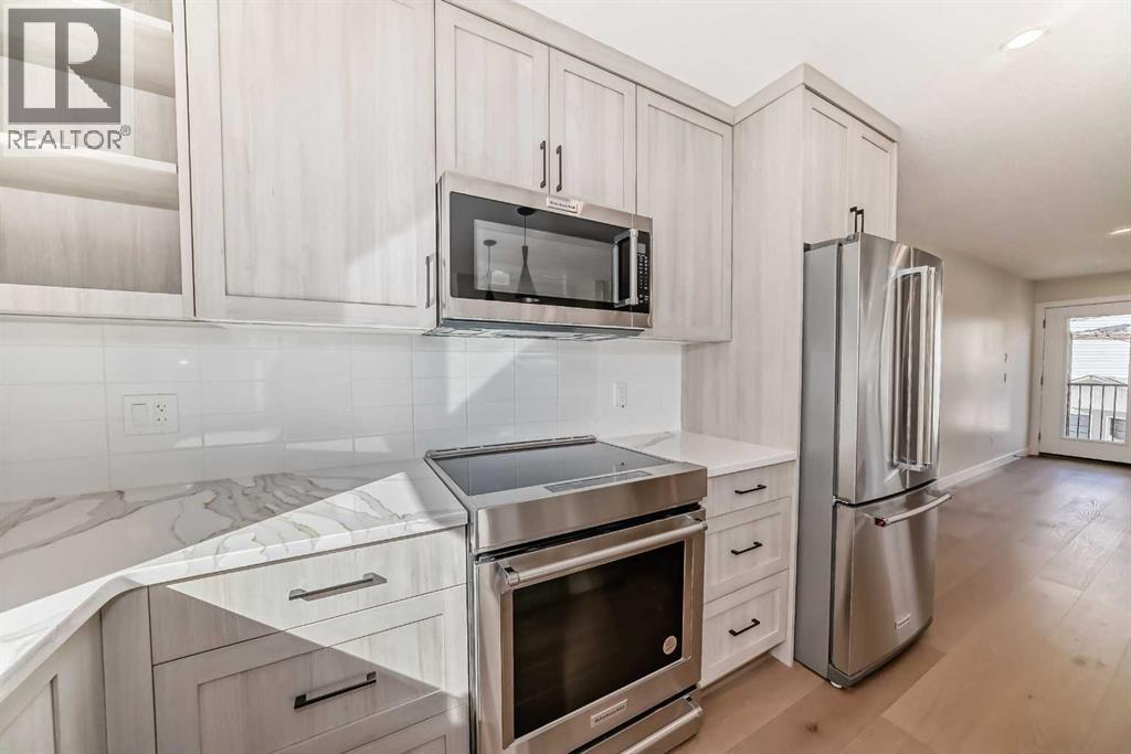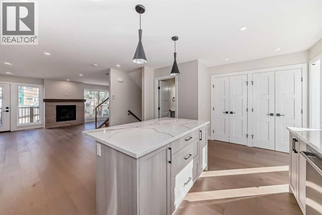 DOWN TO LAST INVENTORY - Bald Eagle Peak Chalets offers a limited collection of brand-new 4 bedroom, 3.5 bath townhomes in one of Canmore’s most walkable and evolving neighborhoods. Designed for real life, these homes balance smart layouts, quality finishes, and long-term livability in the heart of TeePee Town.Unit 115 is a standout value within the project. It delivers a full 4 bedroom, 3.5 bath layout, an attached garage, dedicated storage, and private outdoor space, making it a rare opportunity in the Canmore market for buyers looking for new construction without paying a premium.The main level features a bright great room with a gas fireplace, a well-appointed kitchen with a large island, and a comfortable dining area that works well for both everyday living and hosting. Large windows bring in strong natural light and mountain views, creating a warm and inviting space. A convenient half bath and direct access to outdoor areas complete the main floor.Upstairs, you’ll find 3 bedrooms and 2 full baths, including a comfortable primary suite with a spa-inspired ensuite and generous closet space. The lower level adds a versatile 4th bedroom with its own bath, ideal for guests, extended family, or future rental potential pending town approval.Every home includes a private yard, ample interior storage, an attached garage, and a dedicated gear storage room for bikes, skis, and all your mountain equipment.Located steps from Main Street, cafés, restaurants, shops, trails, and parks, Bald Eagle Peak Chalets offers excellent walkability and long-term value as TeePee Town continues its revitalization. First-time buyers may also qualify for the GST rebate.With only a few units remaining, this is a compelling opportunity to secure a brand-new 4 bedroom townhome in Canmore. Inquire today for a complete buyer package and private showing. (id:55577)