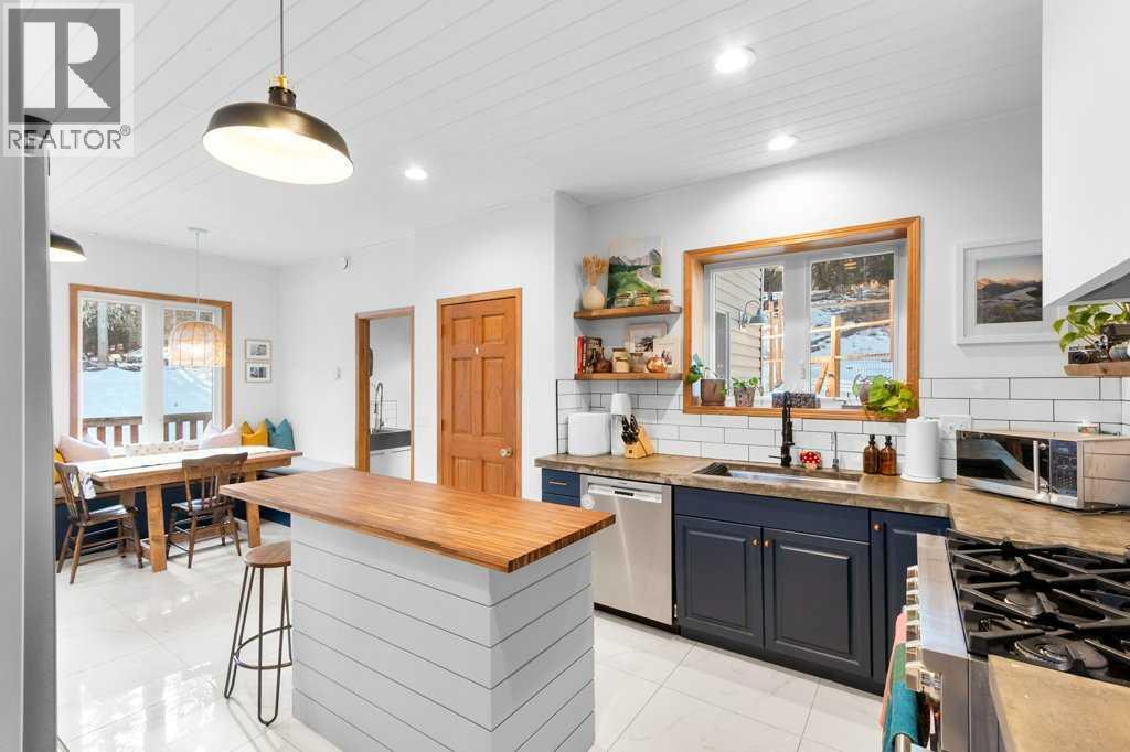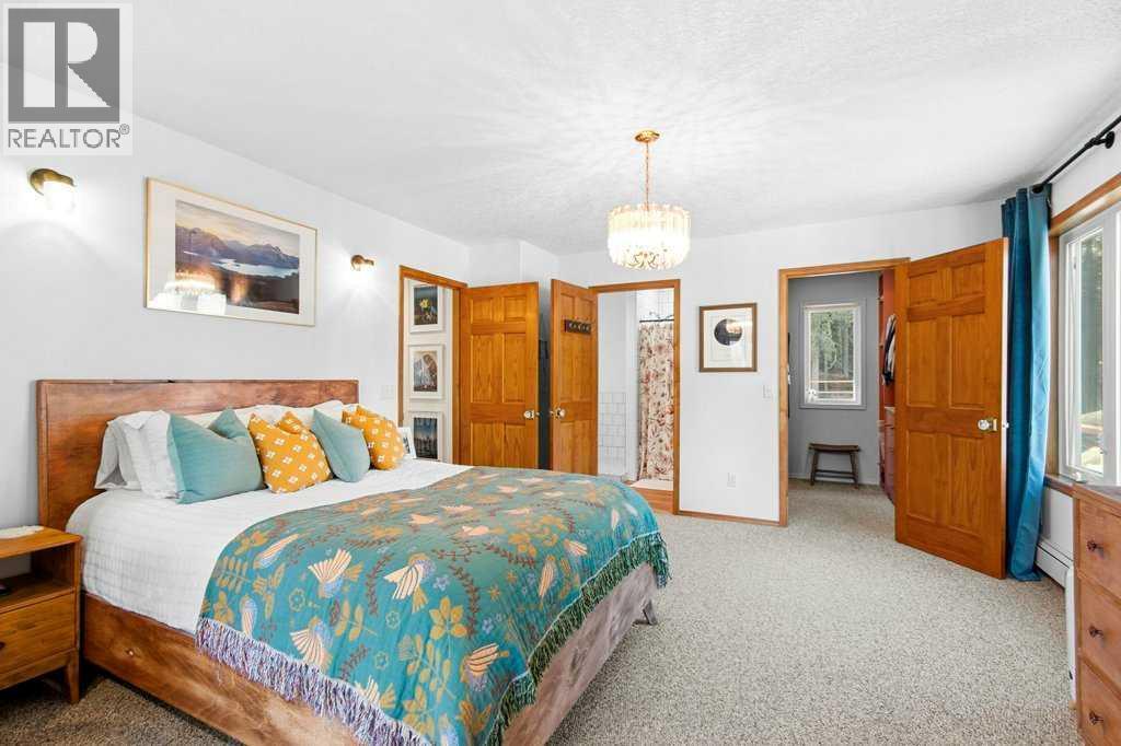 Private, treed, and packed with the charm you'd expect in Water Valley—this 1.5 storey walkout sits on 1.89 acres west of Water Valley and offers 3+2 bedrooms, 3 full bathrooms, and a heated double detached garage with a ~700 sq ft loft space ready for your ideas (guest suite, studio, office—your call).Enjoy outdoor living, surrounded by trees, with a massive front veranda, large rear decks, balcony, raised beds, and a greenhouse. The main floor features a bright country-chic kitchen with concrete countertops, butcher block island, high ceilings, a dining nook, and Forno stainless steel appliances. The living room impresses with vaulted, beamed ceilings and a cozy wood stove. There are two very spacious bedrooms on the main floor along with a refreshed 4 piece bathroom and enjoy main floor laundry also. Upstairs, a large bright loft flex space leads to a balcony with an outdoor pull-down theatre screen. The primary suite is incredibly bright and spacious with a 5-piece ensuite including a clawfoot tub and features a large walk-in closet with built-ins and a window.The finished walkout basement adds a large family room with gas fireplace and a door to a lower patio, a large rec room ideal for a gym or pool table, a big bedroom, a 4-piece bath, and space for another bedroom. The space has a suite-like feel that would be great for multi-generational living or perfect for guests/teens. RV parking, private setting, bus pickup at end of driveway, and easy commuting—45 minutes to Cochrane and under an hour to Calgary. Water Valley is a fantastic community with tons of charm. See the 3D tour. (id:55577)