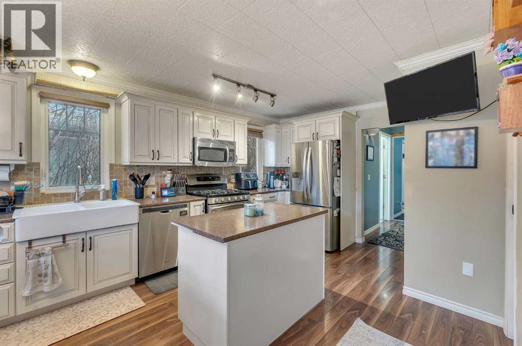 OPEN HOUSE THIS SATURDAY FEB 7TH 12-2PM! Welcome to The Village in Airdrie! This prime location is situated in the heart of old Airdrie surrounded by parks and trees. Just one block away from the city's downtown revitalization project, this location blends the best of both worlds. It's walkable to shops and stores, while on a quiet, peaceful street. It's also just one block away from Jensen Park, and the tri-schools (Ecole Edwards Elementary, Ecole Airdrie Middle School and George McDougall High School). This 50 x 130 foot lot backs west ensuring a sunny lot year round. This one and a half storey AIR CONDITIONED home has been updated over the years and features a spacious covered front veranda. Inside, the kitchen features stainless steel appliances, a bay window, stone countertops and modern cabinetry. The front living room is warm and inviting with a large window overlooking the street. At the back, there's a 3 piece bath as well as an enormous primary suite connected to a 4 piece ensuite. Upstairs, is a bonus room and a convenient second bedroom. A separate entry leads to a shared space at the rear with laundry and storage. The basement features a two bedroom illegal suite with a new kitchen, and separate laundry. The oversized single HEATED garage (29.5 x 19.7 feet) is fantastic year-round for tinkering. There is an additional concrete pad that runs the width of the property for four additional parking spots, as well as a rear deck, patio and plenty of green space. Opportunities like this don't come often. Basement is vacant and the upper level is tenanted and they may be willing to stay. (id:55577)