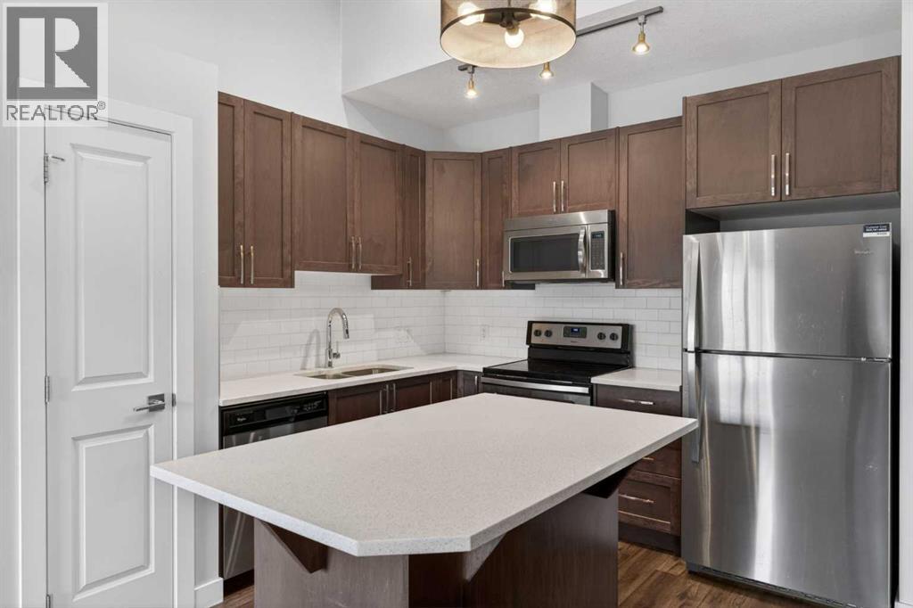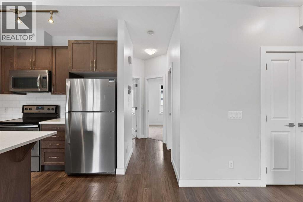 Welcome to this bright and airy 2-bedroom, 1-bathroom townhouse located in the heart of the highly sought-after community of Evanston. This home features a seamless open-concept layout and soaring vaulted ceilings that enhance the sense of space and natural light, perfectly complemented by a modern kitchen boasting high-quality appliances. Step outside to your private balcony for a peaceful view of the quiet, beautifully landscaped inner courtyard, or head downstairs to enjoy the convenience of covered parking with your own single car garage. Situated in an exceptionally well-managed complex with the added benefit of low condo fees, this property offers incredible value and peace of mind. Just minutes from local shopping, schools, and transit, this turnkey home is an unbeatable opportunity for first-time buyers and investors. View full media package of this home: https://listedmedia.aryeo.com/listings/019dc550-e3d0-7311-b66c-8452fc9bbfa2/download-center#files (id:55577)