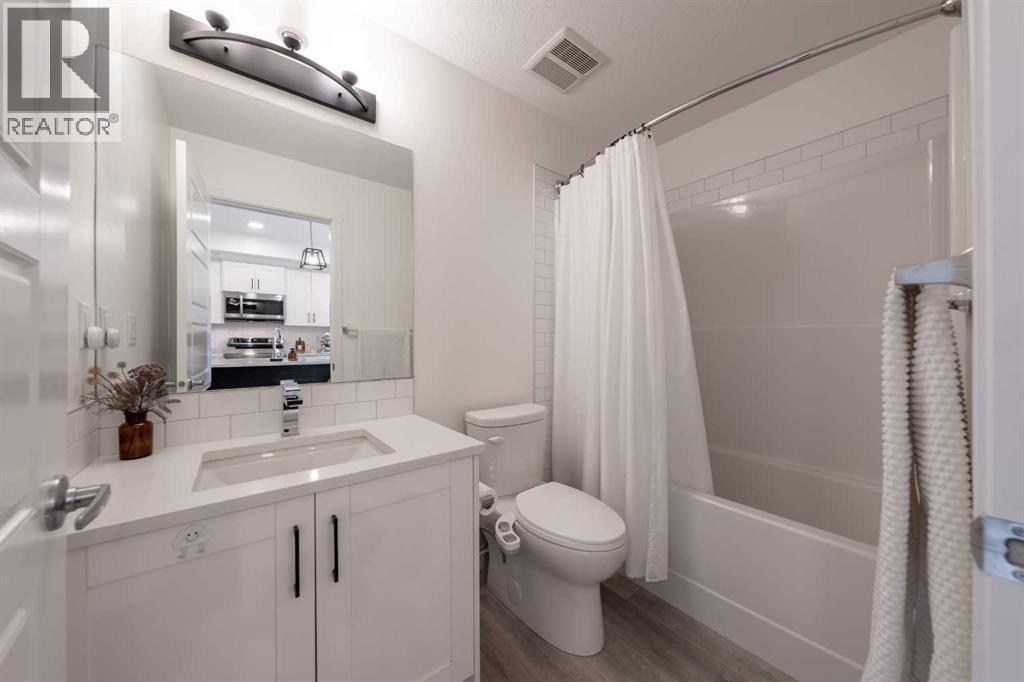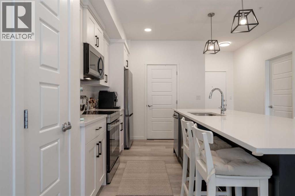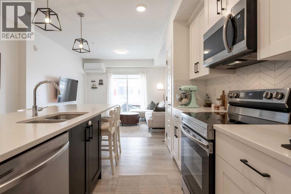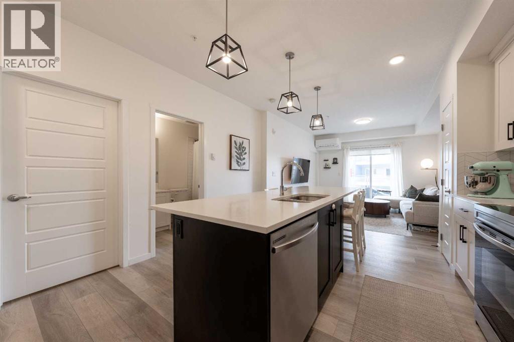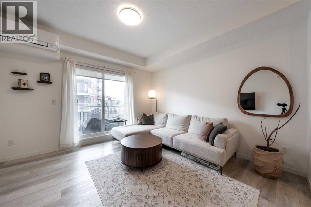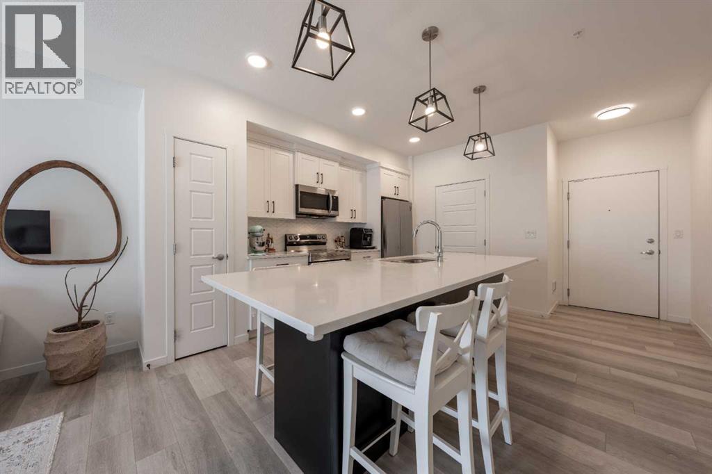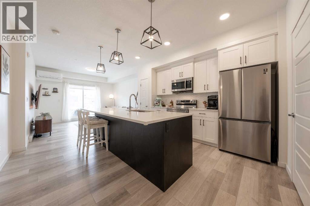 Welcome to this beautifully presented 2 BEDROOM, 2 BATHROOM apartment in the vibrant and highly walkable community of SETON. Offering 722 SQ. FT. of thoughtfully designed living space, this second-floor unit combines modern finishes, everyday comfort, and an outstanding location close to many of southeast Calgary’s best amenities. The bright, open-concept layout features CENTRAL AIR CONDITIONING, stylish VINYL PLANK FLOORING, contemporary lighting, and large patio doors that fill the main living area with natural light. The kitchen is beautifully finished with QUARTZ COUNTERTOPS, full-height cabinetry, stainless steel appliances, a microwave hood fan, tile backsplash, and a large central island with seating, creating a functional and inviting space for cooking, dining, and entertaining. The living room flows easily onto the WEST-FACING BALCONY, where you can enjoy fresh air, evening sun, and views into the well-kept interior courtyard area.The primary bedroom offers a comfortable retreat with a large window, closet space, and its own 4-piece ensuite. A second bedroom/flex room provides excellent versatility for guests, a home office, nursery, hobby space, or additional sleeping area, while the second full bathroom adds convenience for day-to-day living. The unit also includes IN-SUITE LAUNDRY, thoughtful storage, and a clean, contemporary feel throughout. A major added bonus is the TITLED UNDERGROUND PARKING STALL #161, located close to the elevator, along with access to secure bike storage.This location is one of the true highlights. Seton is one of Calgary’s most exciting urban districts, designed around convenience, recreation, and an easy low-maintenance lifestyle. You are close to the SOUTH HEALTH CAMPUS, grocery stores, restaurants, coffee shops, retail, professional services, parks, pathways, and everyday amenities. The BROOKFIELD RESIDENTIAL YMCA AT SETON is within walking distance, offering incredible recreation options just beyond the large green space o n the east side of the building. Whether you are a first-time buyer, downsizer, investor, or someone wanting to live close to work, transit, recreation, and shopping, this property delivers excellent value in a growing, amenity-rich southeast Calgary community. (id:55577)