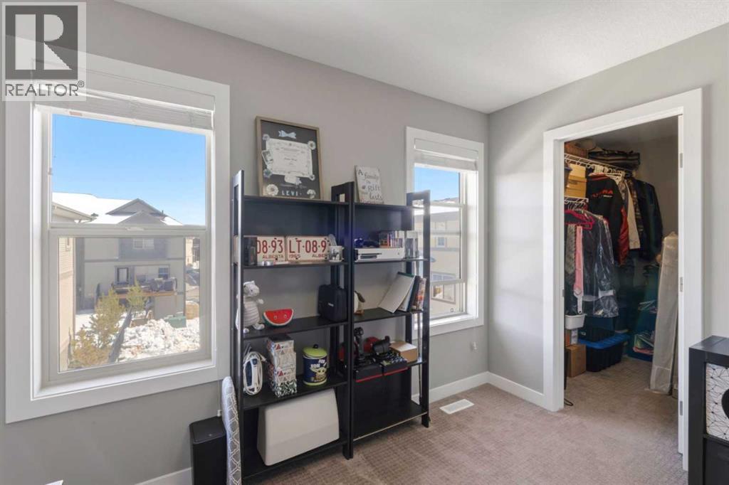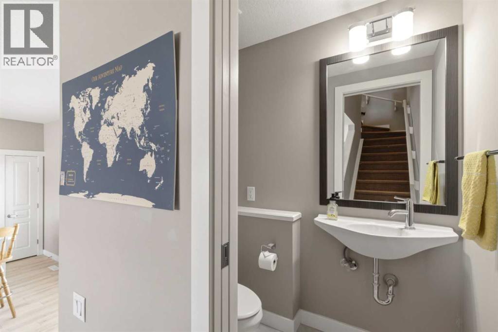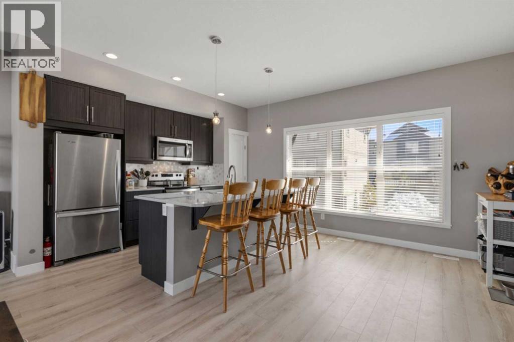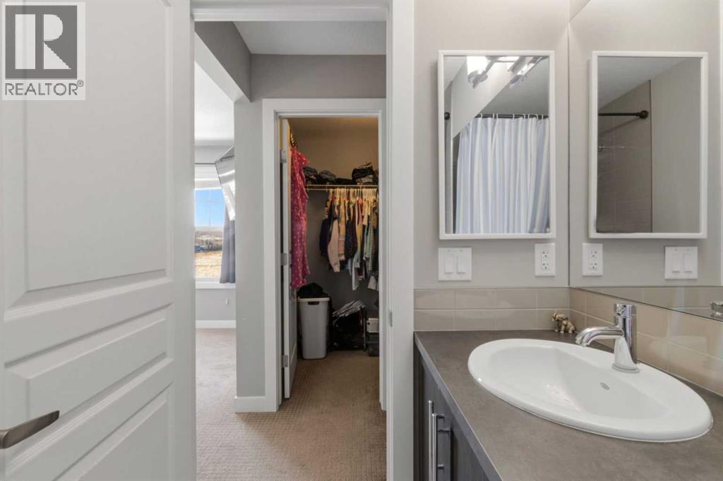 Click brochure link for more details. Unobstructed Mountain Views in a Prime Location!Backing onto expansive, undeveloped fields with nothing between you and the Rocky Mountains; this townhome in the sought-after community of Heartland offers a front-row seat to nature that most buyers only dream of. With parks, playgrounds, and pathways just minutes away, this home blends a welcoming community atmosphere with unparalleled natural beauty.As you enter the home and head up the stairs to the main living area, you'll be greeted by an abundance of natural light in a bright and open-concept floor plan. It's the perfect space for relaxing, entertaining, or just taking in the mountain views. Step from the living room onto your deck to enjoy morning coffee while watching local wildlife and the mountains. The kitchen features stainless steel appliances, granite countertops, and a large island with ample space for preparing meals and entertaining. A convenient half-bath is also located on this level, perfect for guests.Upstairs, discover two generous primary bedrooms, each boasting its own full 4-piece ensuite bathroom and walk-in closet. You will also find an open den perfect for a home office setup, and the ultimate everyday convenience of upper-level laundry so you never have to carry baskets up and down the stairs again.As an incredible bonus, this unit features an oversized double attached garage. The extra depth gives you room to comfortably park two full-size vehicles while still having abundant space for all your outdoor gear and mountain toys.Enjoy stress-free, low-maintenance living with stable condo fees that cover water, landscaping, snow removal, waste removal, and building insurance. This home truly checks all the boxes and with the Rockies just a 30-minute drive away, your weekend escapes to the mountains have never been easier! (id:55577)