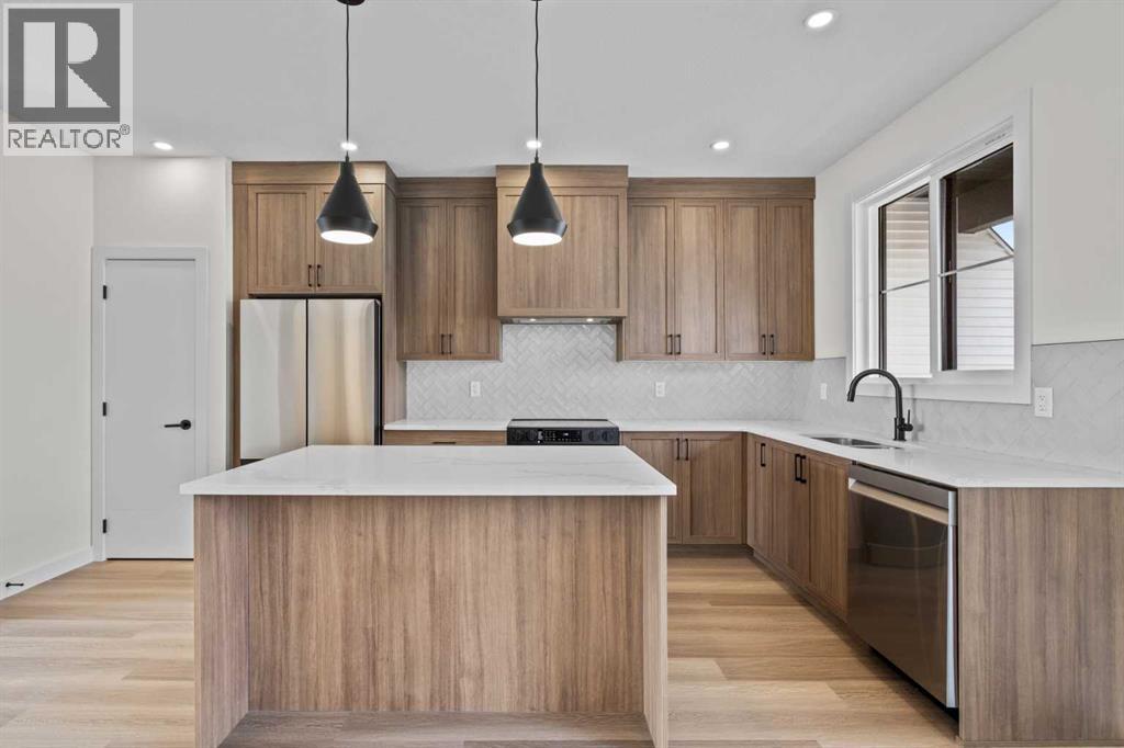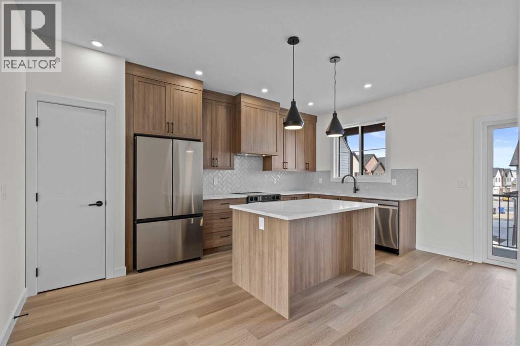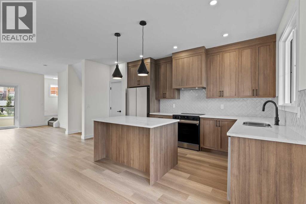 Winner of the 2023 BILD Calgary Award, these thoughtfully designed 3-storey Village Townhomes blend timeless architectural charm with modern, state-of-the-art living. Each home offers a spacious and open-concept layout, featuring 9-foot ceilings on the main level and a functional 3-bedroom, 2.5-bathroom floor plan with a versatile flex room. At the heart of the home is an elegant gourmet kitchen, complete with upgraded stainless steel appliances, a generous quartz island with a double-basin sink, and a sleek pull-out vegetable sprayer—perfect for both everyday living and entertaining. Upstairs, the deluxe primary suite offers a private retreat, complemented by two additional bedrooms, a 4-piece main bathroom, and a conveniently located laundry room ( no in-unit washer and dryer). A powder room on the main level adds everyday practicality. Outdoor living is elevated with not one but two decks—one off the main living area and a large rear deck ideal for relaxing or hosting. The double-car garage, plus a full-length driveway with two extra parking spots, ensures ample space for vehicles and guests. To top it off, these townhomes come complete with professionally designed, maintenance-free landscaping, so you can enjoy a beautiful exterior year-round, without the work. Book to a viewing today! (id:55577)