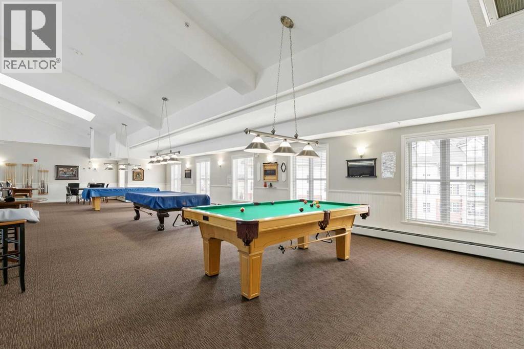 Exceptional 40+ complex in a prime location with outstanding amenities! This highly sought-after, well-managed community features an active Board and a true pride of ownership throughout.Almost 1,000 sq ft, this spacious 1 Bedroom + Den unit is ideally situated in a quiet corner of the complex. The functional open-concept layout includes a large kitchen with eating bar overlooking the living room, ample counter space, pantry, and a separate dining area. The bright living room features a cozy fireplace and large windows with access to the generous deck.The oversized primary bedroom includes a walk-in closet and a 5-piece ensuite with double sinks, abundant cabinetry, and excellent counter space. Additional highlights include 10 ft ceilings, quality carpet underlay, in-suite storage, plus a storage locker conveniently located at the front of the titled underground heated parking stall.Resort-style amenities include an indoor swimming pool, hot tubs, fully equipped fitness room, theatre, billiards/games room open to a dance floor and party space, library, car wash bay, and workshop area in the heated parkade. Beautiful walking paths surround the pond to the south with sitting areas throughout the grounds.Ideally located close to shopping, dining, recreation, VIVO Centre, cinema, and more, with quick access to Deerfoot Trail and Stoney Trail. A fantastic opportunity to enjoy maintenance-free living in a vibrant, amenity-rich community. Get into this desired Community while you can! (id:55577)