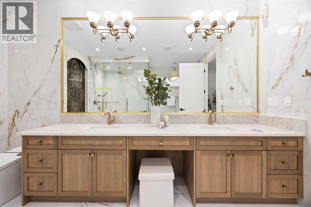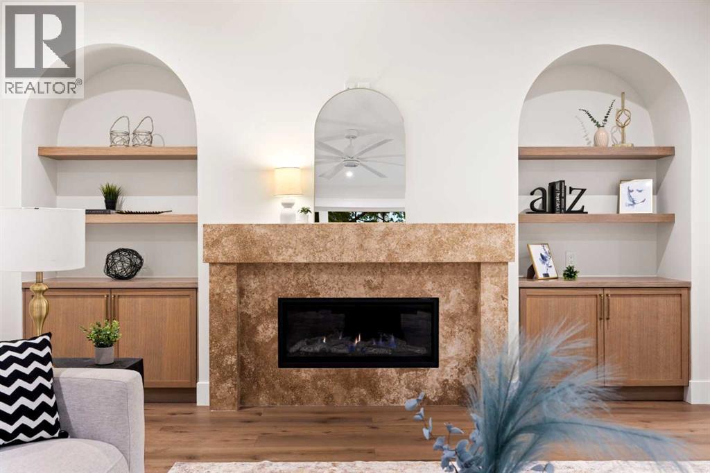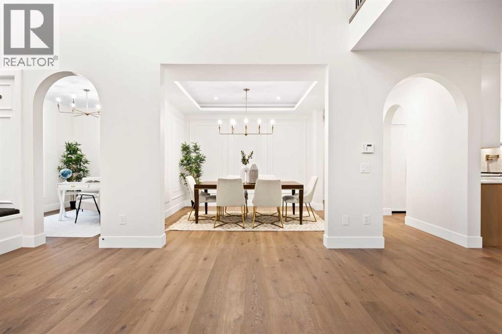 LUXURY LIVING IN VARSITY ESTATES!! With over 6,300 sq.ft. of exquisitely designed living space, this custom estate home blends timeless craftsmanship with refined modern details in one of Calgary’s most prestigious communities.The grand entrance welcomes you with soaring vaulted ceilings, a striking leathered granite fireplace, and stunning designer chandeliers. A front office provides the perfect space to work from home, while elegant arches and custom millwork set a tone of sophistication throughout. The gourmet kitchen is a showpiece, featuring Taj Mahal quartz countertops, JennAir appliances, a wall oven, and a large island ideal for entertaining. The dining room is enhanced with picture frame molding and fluted detailing, while a second main floor living room with a stone fireplace offers a warm retreat. Completing the main level is a stylish powder room, a well-appointed mudroom with built-ins, and garage access with space for an optional third bay, gym, or golf simulator.Upstairs, you’ll find three bedrooms, each with its own ensuite, including one with a hidden paneled door that adds a touch of intrigue. A spacious bonus room and a designer wet bar provide additional comfort, and the bonus room can easily be converted into a fourth bedroom to suit your needs. Convenient upstairs laundry adds ease to family living.The fully developed basement is an entertainer’s dream, boasting two additional bedrooms, a large recreation space, a stunning glass-enclosed wine cellar with arched shelving, a hidden movie theater with hand-painted ceiling detail, and a wet bar with striking copper accents.Step outside to your private backyard oasis, complete with a covered deck featuring a built-in gas fireplace and motorized screens, plus an aggregate patio with pergola—perfect for summer evenings.This home is also thoughtfully equipped with heated bathroom floors, an EV charger, and 200 amp service, ensuring both modern convenience and efficiency. Additional features include central air conditioning for year-round comfort.This rare Varsity Estates offering delivers both elegance and function, designed for those who appreciate the finest in luxury living. (id:55577)