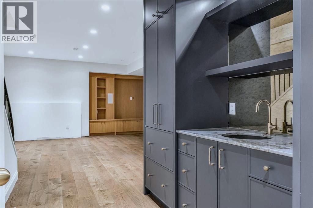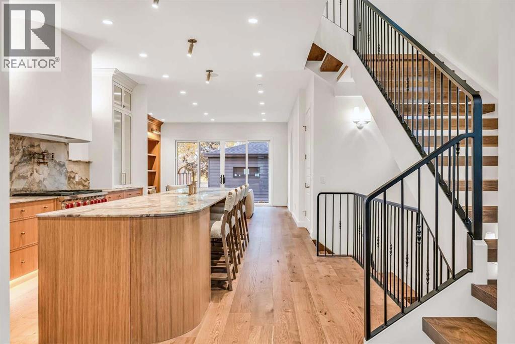Discover this luxury 3-storey detached home in historic Inglewood — where timeless elegance meets modern design. Built by Levant Homes in collaboration with Aly Velji Designs, this 4,998 sq.ft. masterpiece showcases meticulous craftsmanship, designer finishes, and thoughtful innovation throughout.Situated on a 33-ft south-facing lot backing onto the Bow River, this home blends curb appeal with architectural presence — Large Lux windows, full-bed brick, cedar soffits, and an aged concrete patio with built-in planter. It’s equipped with an elevator and Control4 smart home automation, combining sophistication with modern convenience.Inside, 10-ft ceilings create a light, refined atmosphere. The MAIN level features a formal dining room, custom wet bar pantry, and a warm living space anchored by a custom Urbana fireplace. The chef’s kitchen impresses with marble counters, bespoke cabinetry, and a full Wolf/Sub-Zero appliance package — including a 48” gas range, built-in steam oven, 3x under-counter fridges, and wine cooler.Upstairs, the PRIMARY suite exudes sophistication, featuring a matching double-sided Urbana fireplace, custom walk-in closets, and a spa-inspired ensuite with Calacatta Viola marble, a steam shower, his-and-hers sinks, soaker tub, and heated bench & floor. Two additional bedrooms each offer private ensuites and walk-in closets.The top-floor LOFT stands as the home’s defining feature — with downtown skyline views from the front balcony and peaceful river views from the rear patio. Designed for work and leisure, it combines a versatile rec space with another bar, office or study, and a full bath.Downstairs, the BASEMENT offers the perfect retreat for those long days — a built-in media centre, a gym, wet bar with wine cooler and beverage fridge, a steam-shower bath, and a comfortable guest suite.Enjoy the best of Inglewood at your doorstep — Rouge, The Dean House, Spolumbo’s, Lina’s, the farmers market, RiverWalk, and more. With new home warra nty, this home defines elevated urban living.Book your private showing today. (id:55577)