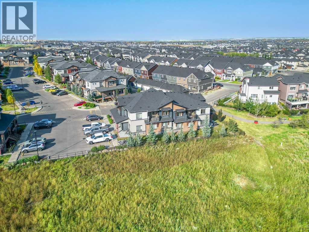 **Open House this Holiday Monday, October 13th from 2-4pm** Experience this bright and well-appointed one-level townhouse in Airdrie, where modern comfort meets refined living. Perched on the top floor, this two-bedroom, two-bathroom home impresses with soaring vaulted ceilings and expansive windows that flood the space with natural light. The kitchen features quartz countertops, stainless steel appliances, sleek cabinetry, and a large island with eating bar, perfect for everyday living or entertaining. The open-concept design flows seamlessly into the dining and living areas, creating an inviting space to gather or unwind. The private primary suite offers a walk-in closet and ensuite bathroom, while the second bedroom and full bath provide versatile options for guests, family, or a home office. Step outside to the sun-filled south-facing deck ideal for relaxing or hosting summer barbecues. Additional highlights include in-suite laundry, two parking stalls (one titled, one assigned), and the convenience of low-maintenance living in a well-cared-for community. With breathtaking rural vistas, close proximity to Airdrie’s pathways, parks, and amenities, plus just a short 15-minute drive to Calgary, this home is the perfect blend of style, comfort, and location. Don’t miss it! (id:55577)
