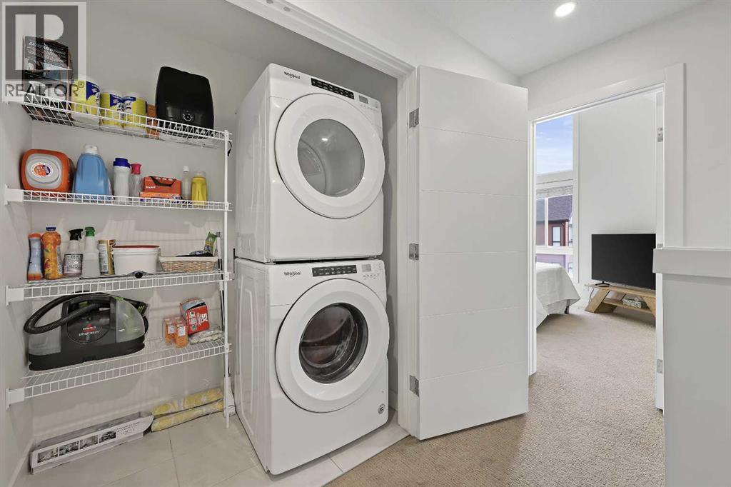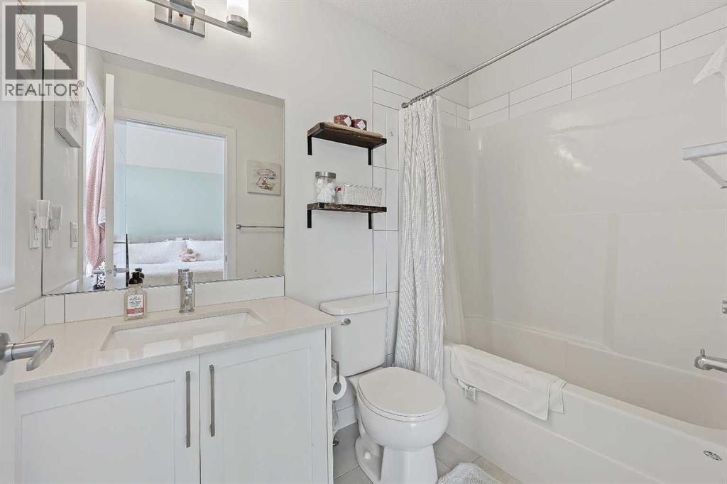 Welcome to this former showhome in the highly desirable community of Sage Hill, offering a perfect blend of modern design, energy efficiency, and functional living in the Arrive at Sage Hill development.With nearly 1,700 square feet of thoughtfully designed space, this 3-bedroom, 3.5-bathroom townhome features a bright, open-concept layout with contemporary finishes throughout. The main floor showcases wide-plank vinyl flooring, quartz countertops, full-height cabinetry, soft-close drawers, and a central kitchen island—perfect for everyday living and entertaining.Step directly from the kitchen into your fenced private yard, ideal for children, pets, or enjoying outdoor relaxation.Upstairs, you'll find a rare dual primary bedroom layout, each with its own walk-in closet and private ensuite. Vaulted ceilings and the convenience of upper-floor laundry complete this well-planned level.The fully developed basement adds versatility with a spacious third bedroom, a full 4-piece bathroom, and a cozy family or recreation room—ideal for guests, a home office, or additional living space.Built with sustainability in mind, this home is equipped with energy-efficient features, including a tankless water heater, high-efficiency furnace, and HRV system for year-round comfort and reduced utility costs.Additional highlights include assigned parking and a prime location close to future schools, shopping, medical services, and easy access to Stoney Trail. Outdoor enthusiasts will appreciate nearby walking paths, natural green spaces, and proximity to Nose Creek Park.This beautifully maintained home offers a turn-key opportunity for first-time buyers, downsizers, or investors. A must-see! (id:55577)