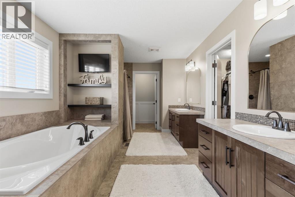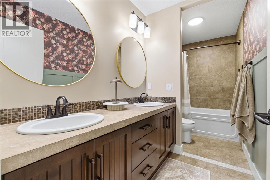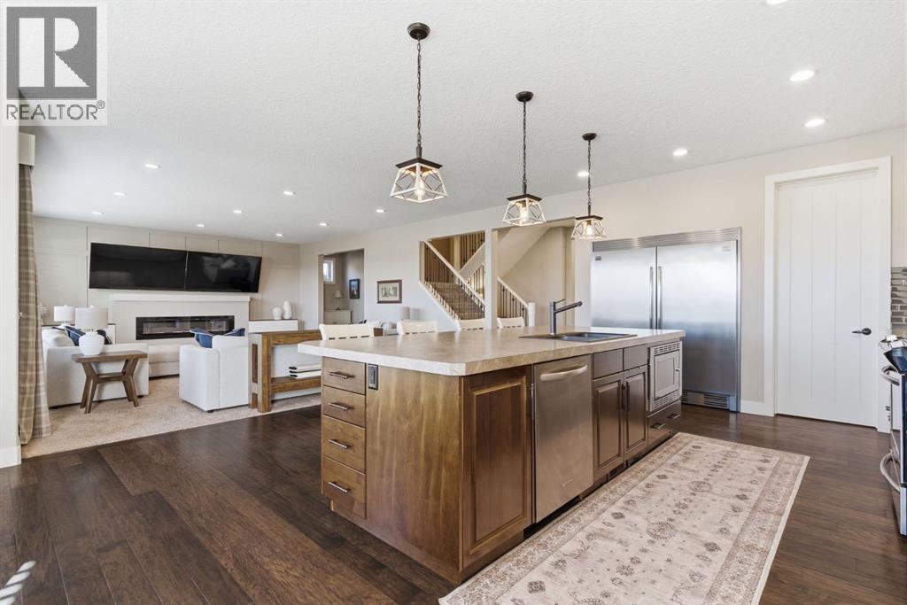 **OPEN HOUSE SAT Mar 28th 2p.m-5p.m** Welcome to 124 Ranch Road, located in Air Ranch, one of Okotoks’ most sought-after communities. Bigger, better, and thoughtfully designed for how families actually live day to day. With over 5,200+ sqft of developed living space, this home delivers serious value with 5 bedrooms plus a main floor office and 4.5 bathrooms, offering flexibility for families, work-from-home setups, or multi-generational living. Starting outside, the triple driveway provides plenty of parking, leading into an oversized triple garage that functions as a 4-car garage with over 1,000 sqft, complete with water and generous storage. As you move through the hallway, you’ll notice the scale with wider hallways, 8 ft doors, higher ceilings, and an overall sense of space. At the front is a beautiful office or piano room, while the entire west-facing back wall is lined with windows, bringing in natural light and overlooking your composite deck, pergola, and spacious yard. The kitchen is built for living and entertaining with a huge eat-up island, extensive cabinet and counter space, and a walk-in pantry, all flowing into the living room with a fireplace, plush carpet, and a dedicated kids’ corner with its own TV and playhouse. The rest of the main floor offers a half bath, garage access, and a separate entrance leading to one of the most incredible mother-in-law suites you will ever see. Upstairs, you’ll find 4 full bedrooms, including a spacious primary retreat with west-facing views of the mountains, sunset, and airstrip, along with an ensuite featuring a soaker tub with a TV above, tiled shower, separate water closet, and a large walk-in closet. One of the three additional bedrooms has its own 5-piece ensuite and walk-in closet, while two more bedrooms, a 5-piece bathroom, and a laundry room with counter space and cabinetry complete the upper level. The bonus room is exceptionally well designed with full cabinetry, plenty of counter space, a full fridge, an d its own sink, making it perfect for family nights and entertaining with east-facing windows bringing in morning sunlight. The basement offers a fully self-contained mother-in-law suite with its own entrance, in-floor heat, and large windows that make the space bright and inviting, along with a kitchen featuring extensive cabinetry, a full pantry, and great prep space, plus a living area with its own fireplace, generous seating space, and a custom built-in desk. The bedroom includes extra soundproofing, a walk-in closet, and a private ensuite with a soaker tub, walk-in shower, separate water closet, and its own laundry. Outside, the yard is set up for relaxing and entertaining with a fire pit, gazebo, and plenty of space, and if you have occupants in the basement, there is their own dedicated outdoor area as well. This is a home that checks every box, where space, layout, functionality, and lifestyle all come together in a way that is hard to find. Reach out to your favourite Realtor to book a showing! (id:55577)