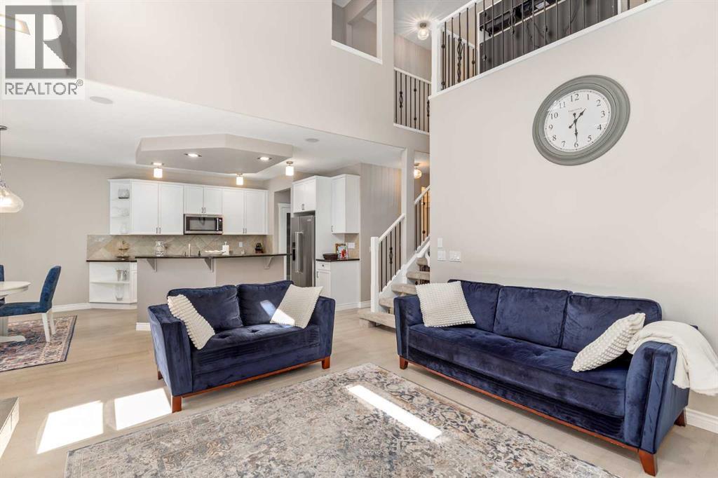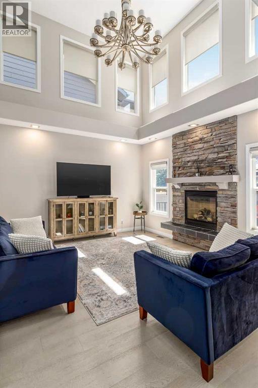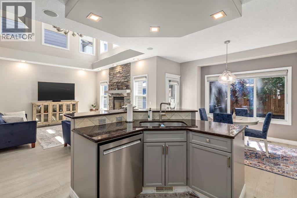 Indulge yourself in this extraordinary opportunity in the highly desirable SW Calgary community of Crestmont. With 3,200+ sq. ft. of carefully designed living space spread over three levels, 4 bedrooms, 3.5 baths and a pivotal location you cannot let this one slip away. A wide front drive and heated, double attached garage gives you ample parking for four vehicles. A NW front-facing railed porch is your calm spot at day’s end. The brightly lit foyer with sidelights welcomes you in and straight ahead, the open concept main floor features ash, wide-plank hardwood flooring and muted colors throughout. The dining room has an elegant tray ceiling and is perfect for more formal gatherings. A walk-through hall with butler’s pantry leads to a very impressive high-ceilinged kitchen boasting modern white cabinetry, gleaming granite countertops, tiled backsplash, a breakfast bar/ island with under counter double sinks and stainless appliances. The adjacent breakfast nook showcases a beautiful array of windows and provides access to the deck. The living room is breathtaking with tall ceilings and views to the second level. The large stone-surround gas fireplace makes for snug winter evenings. A spare room could serve as a home office and a well-appointed laundry room with tons of storage and a 2-pc. bath wrap up this level. The second level repeats with the light, wide-plank hardwood flooring and lots of natural light. A bonus room at the top of the stairs would be excellent as a family room or play area for the kids. The extra roomy primary bedroom is your private sanctuary with walk-through 5-pc. ensuite (double sinks, soaker tub) leading to a sizable walk-in closet. Two additional bedrooms share a second 5-pc. bath. The basement level is fully finished with carpeting, a rec room, a 4th bedroom, 3-pc. bath and utility room. Moving outside, the rear deck is equipped with a BBQ gas line. The yard is fenced, landscaped, and well treed. On the SW edge of the City and close to 16t h Avenue and Stoney Trail, access to Alberta’s beautiful natural areas is never far away. Proximity also to Calaway Park, Winsport, Calgary Olympic Park, Artists View Park (hiking and biking trails), shopping at Calgary Farmers’ Market, Crest Lake, schools, churches, and playgrounds. This home is tastefully decorated, has been impeccably maintained and offers so many pluses – skylights, wired for sound, 2 central air conditioners, 2 furnaces, water softener, central vac – details that increase comfort and value and make it worthy of your attention. Call for your private viewing today. (id:55577)