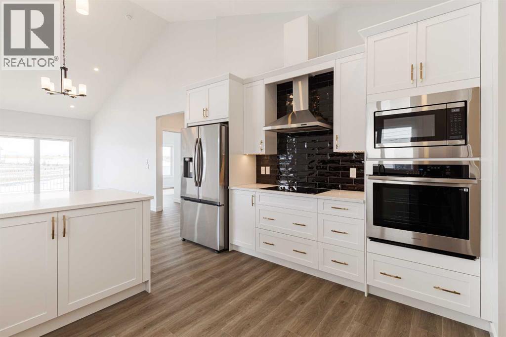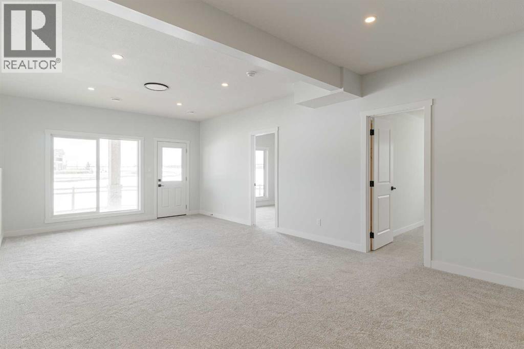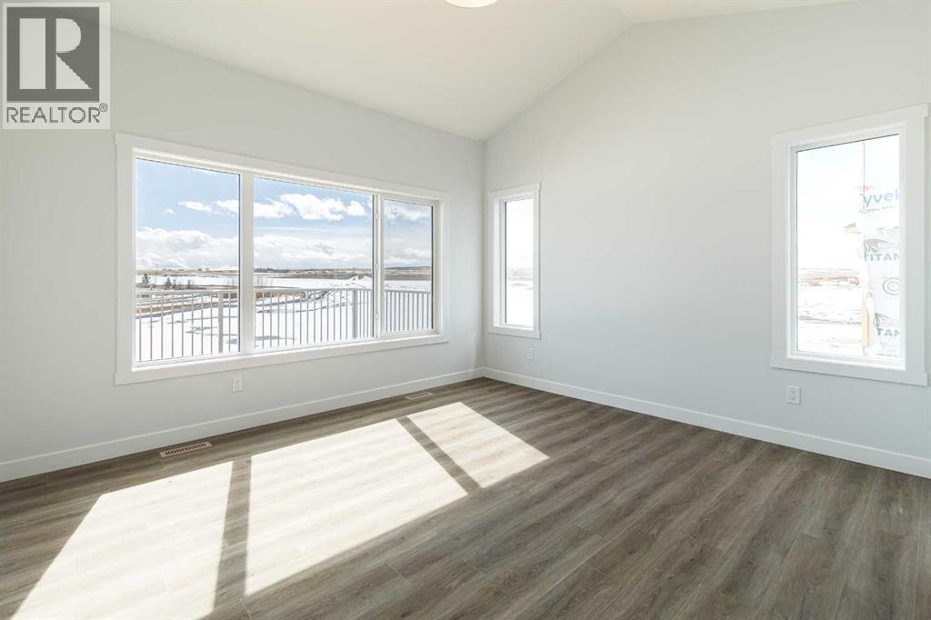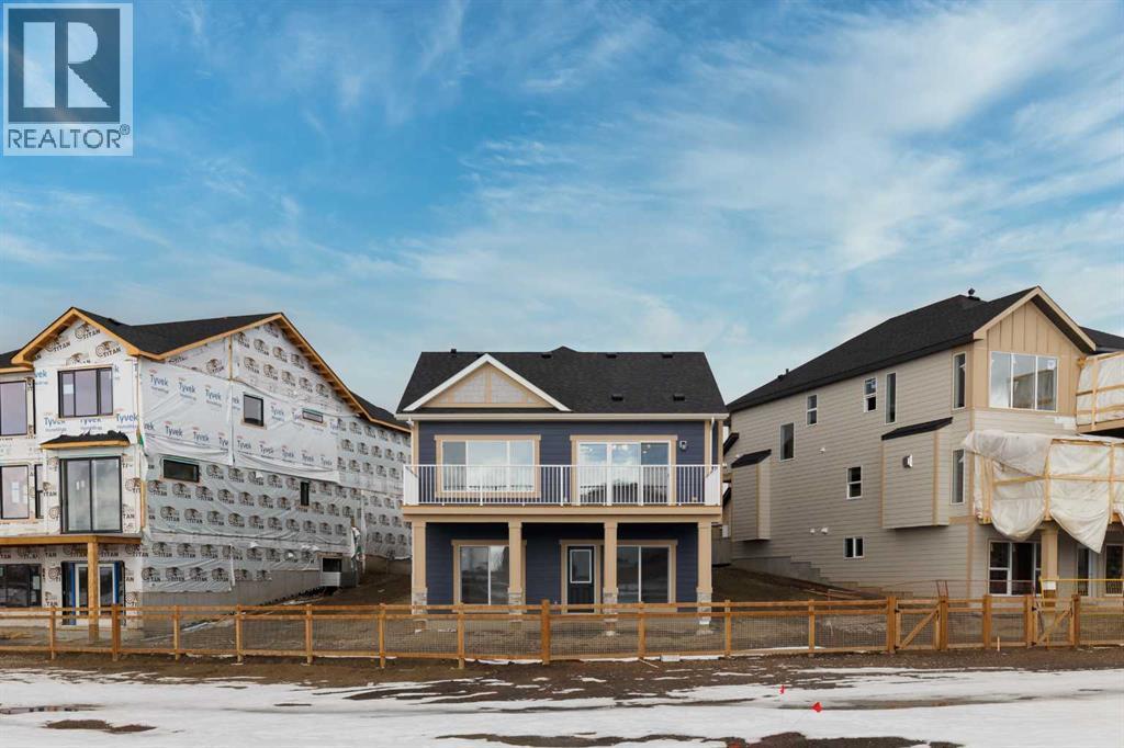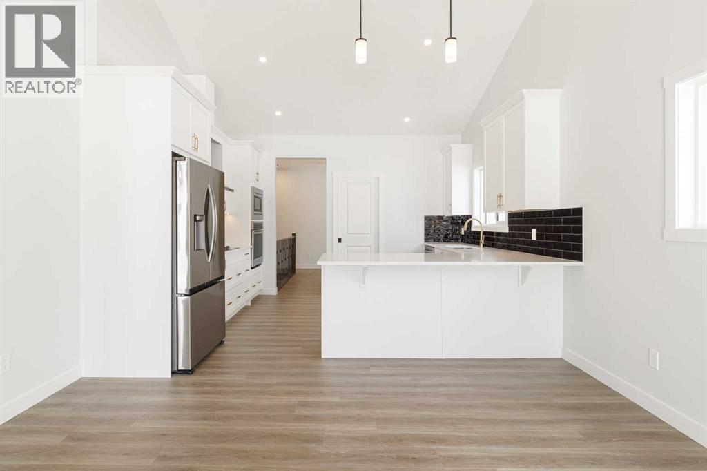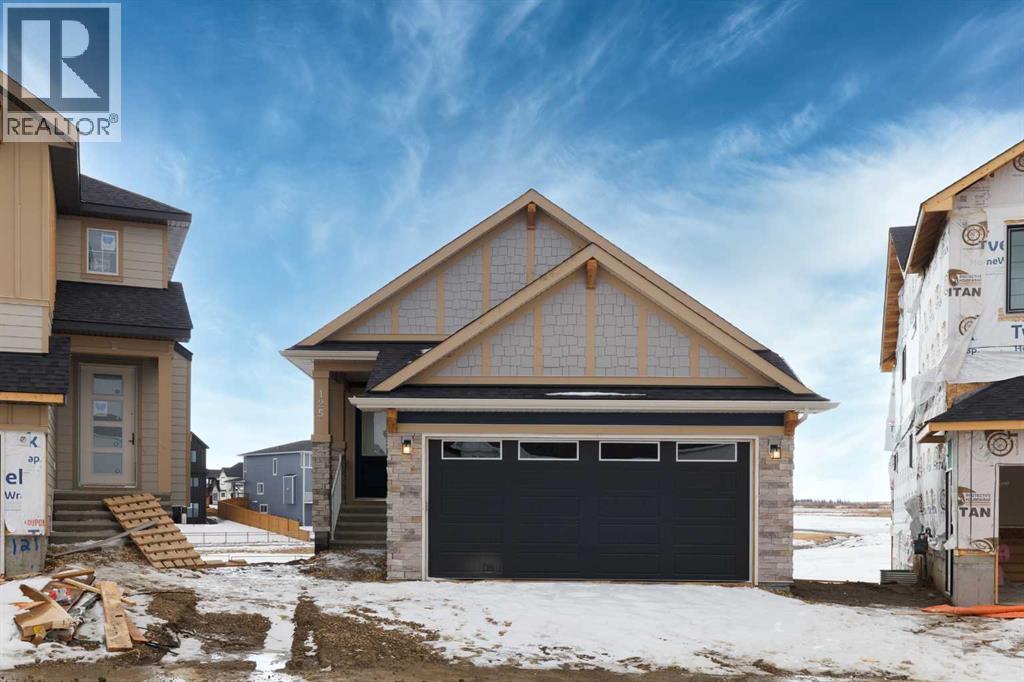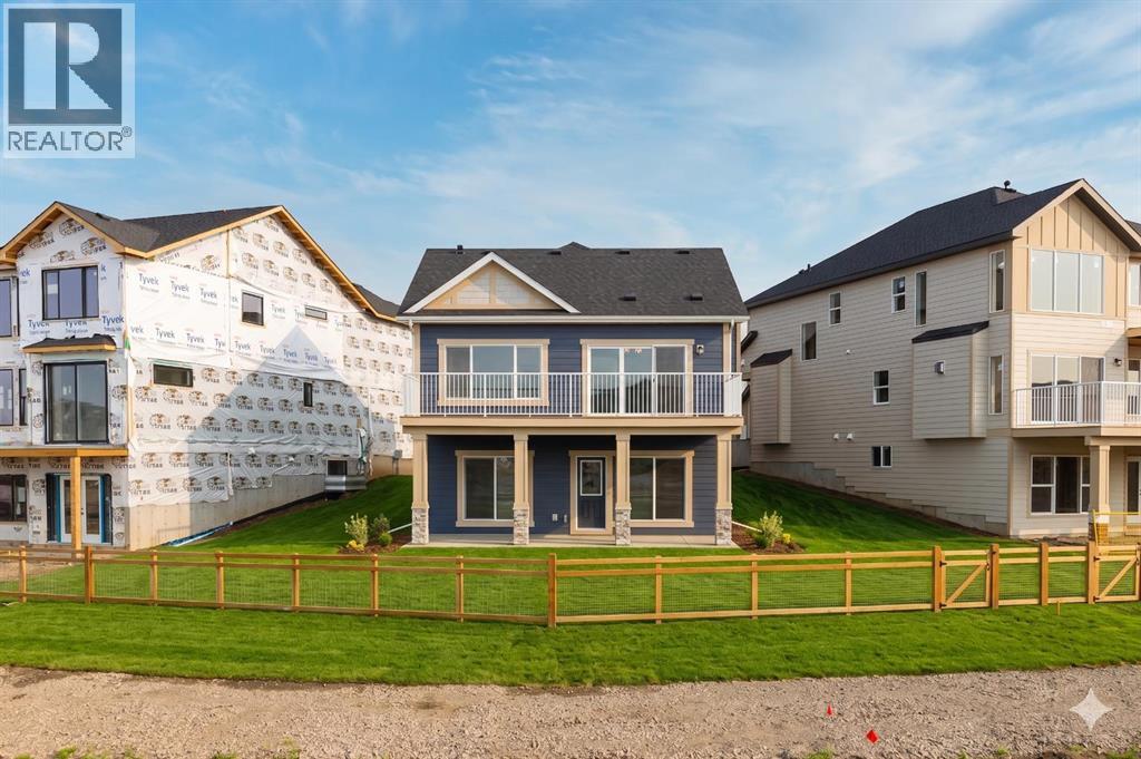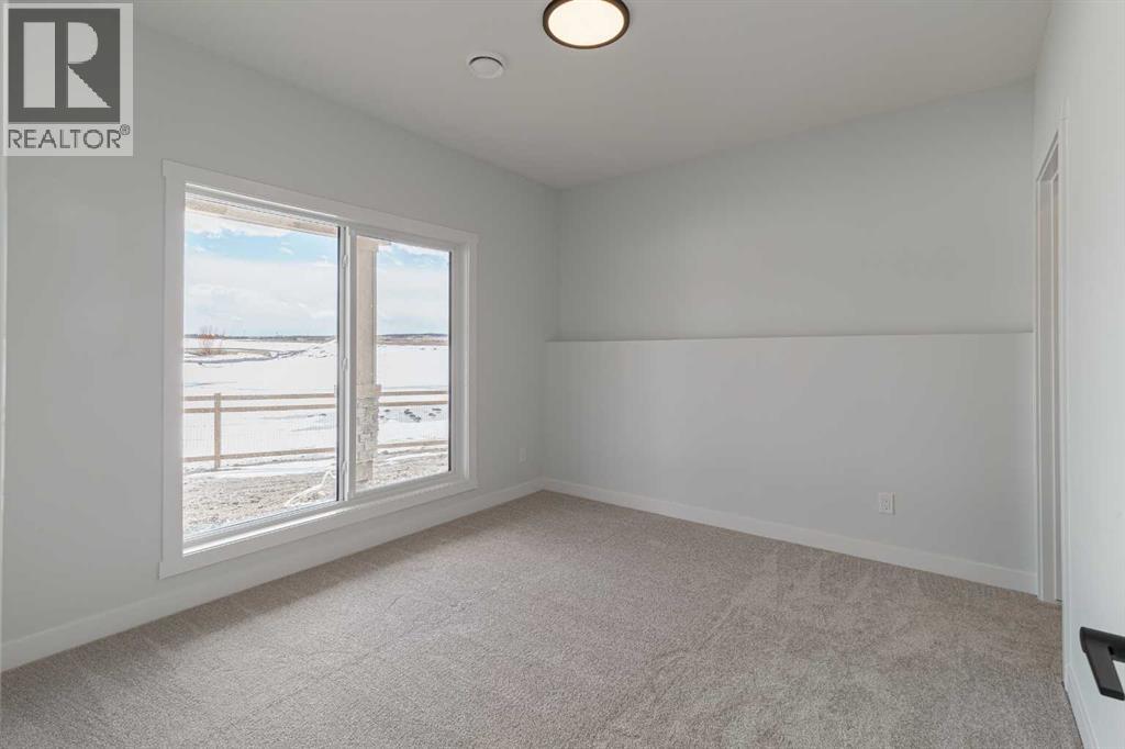 Welcome to this exceptional bungalow offering over 2,500 sq. ft. of fully developed luxury living, ideally positioned on a premium pie-shaped lot backing onto tranquil green space in the prestigious lake and golf community of Harmony in Springbank. Designed for elevated living, this residence features an open-concept layout with soaring vaulted ceilings, expansive windows, and abundant natural light, creating a seamless connection between indoor comfort and the beauty of its natural surroundings. The main floor offers 1,350 sq. ft. of refined living space, complete with two spacious bedrooms and two full bathrooms, thoughtfully designed for comfort and privacy.  The chef-inspired kitchen showcases an island, quartz countertops, full-height cabinetry, soft-close finishes, and a subway tile backsplash. The kitchen flows effortlessly into the dining and living areas, anchored by a warm gas fireplace, perfect for both everyday living and elegant entertaining.  The primary suite is a private retreat with peaceful greenspace views, a generous walk-in closet, and a spa-inspired ensuite featuring dual quartz vanities and an oversized glass shower. The fully developed walkout lower level expands the living space with two additional bedrooms, a full bathroom, and a spacious recreation area, opening directly to a covered patio and the outdoors, ideal for entertaining or relaxed family living. Outdoor living is elevated with a walkout patio overlooking open green space, offering tranquility and year-round enjoyment. Additional highlights include luxury vinyl plank flooring, vaulted ceilings, zebra blinds, roughed-in central vacuum, and a front-attached double garage. Residents of Harmony enjoy an exceptional lifestyle with access to 140 acres of lake, Mickelson National Golf Club, scenic pathways, parks, and future Village Centre amenities, all just minutes from Springbank Airport, top-rated schools, and Calgary. A rare opportunity to own a luxury walkout bungalow on one of Har mony’s most desirable green space lots, offering a refined blend of privacy, thoughtful design, and elevated resort-style living. (id:55577)