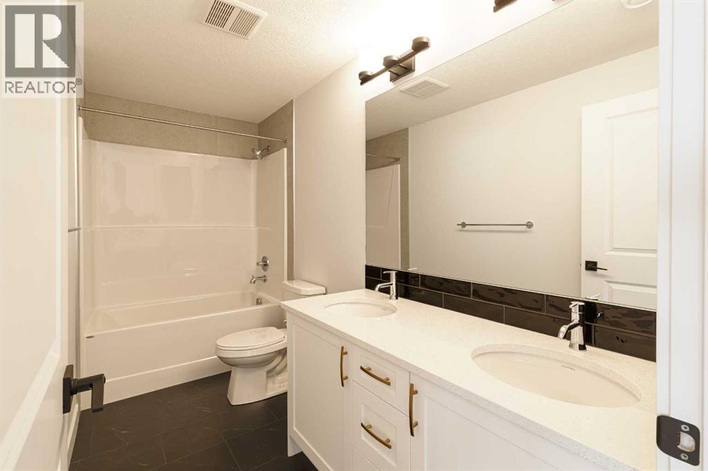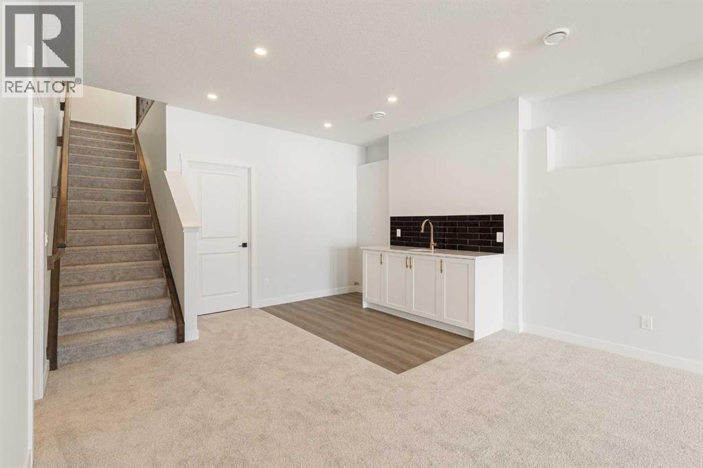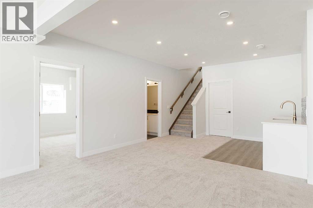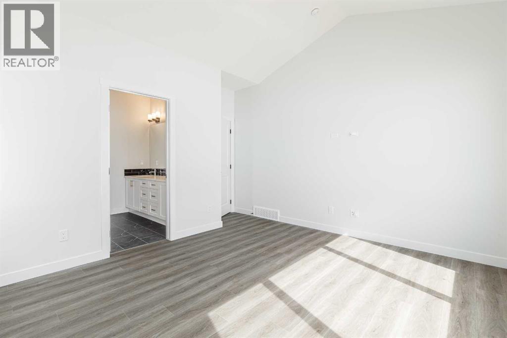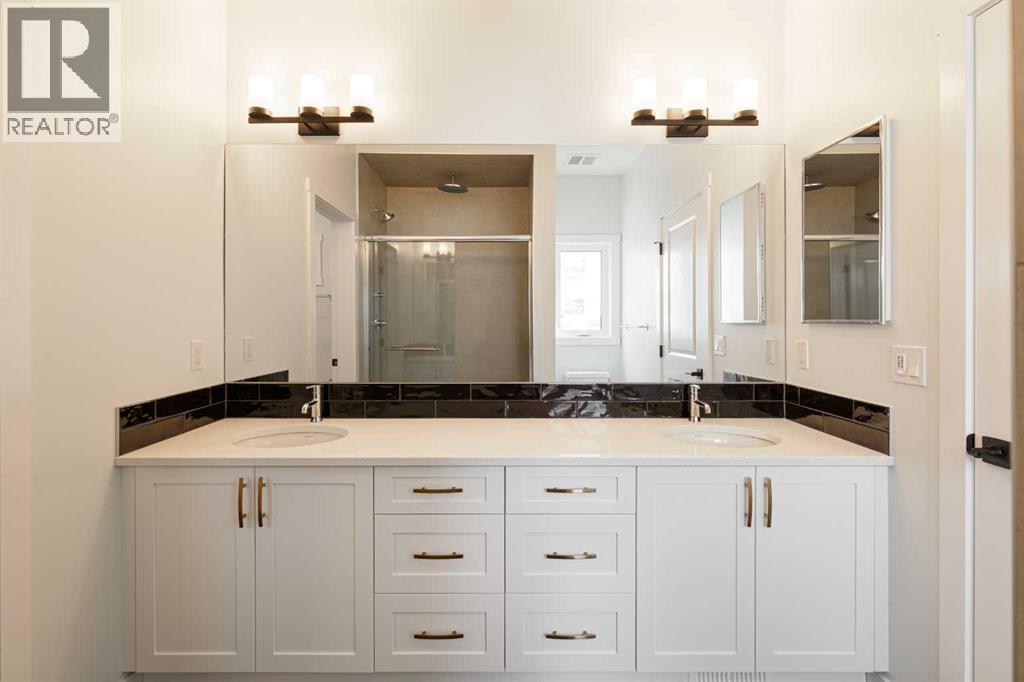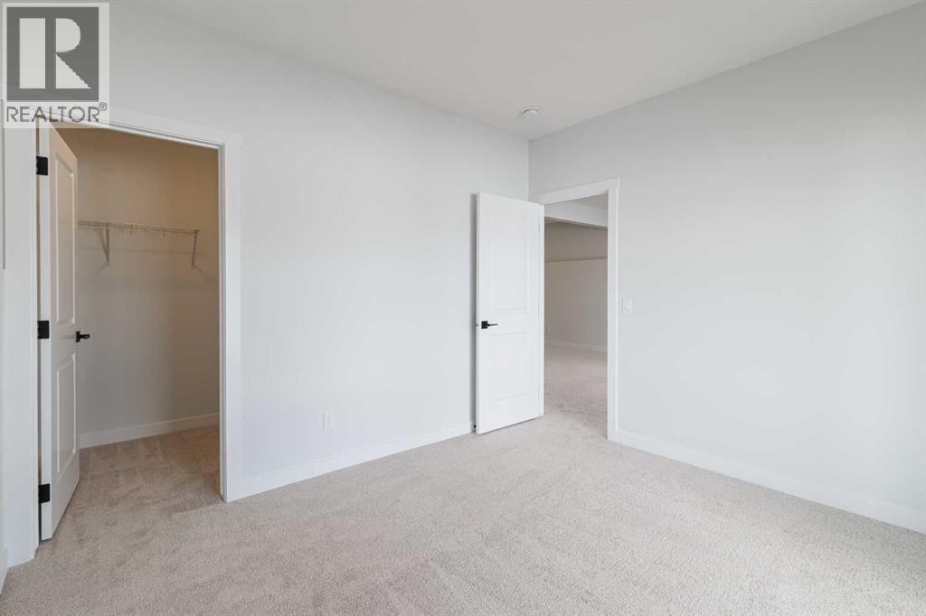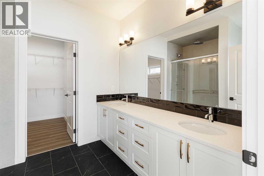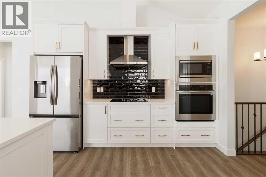 Welcome to this exceptional bungalow offering over 2,500 sq. ft. of fully developed luxury living, ideally positioned on a premium pie-shaped lot backing onto tranquil green space in the prestigious lake and golf community of Harmony in Springbank. Designed for elevated living, this residence features an open-concept layout with soaring vaulted ceilings, expansive windows, and abundant natural light, creating a seamless connection between indoor comfort and the beauty of its natural surroundings. The main floor offers 1,350 sq. ft. of refined living space, complete with two spacious bedrooms and two full bathrooms, thoughtfully designed for comfort and privacy.  The chef-inspired kitchen showcases an island, quartz countertops, full-height cabinetry, soft-close finishes, and a subway tile backsplash. The kitchen flows effortlessly into the dining and living areas, anchored by a warm gas fireplace, perfect for both everyday living and elegant entertaining.  The primary suite is a private retreat with peaceful greenspace views, a generous walk-in closet, and a spa-inspired ensuite featuring dual quartz vanities and an oversized glass shower. The fully developed walkout lower level expands the living space with two additional bedrooms, a full bathroom, and a spacious recreation area, opening directly to a covered patio and the outdoors, ideal for entertaining or relaxed family living. Outdoor living is elevated with a walkout patio overlooking open green space, offering tranquility and year-round enjoyment. Additional highlights include luxury vinyl plank flooring, vaulted ceilings, zebra blinds, roughed-in central vacuum, and a front-attached double garage. Residents of Harmony enjoy an exceptional lifestyle with access to 140 acres of lake, Mickelson National Golf Club, scenic pathways, parks, and future Village Centre amenities, all just minutes from Springbank Airport, top-rated schools, and Calgary. A rare opportunity to own a luxury walkout bungalow on one of Har mony’s most desirable green space lots, offering a refined blend of privacy, thoughtful design, and elevated resort-style living. (id:55577)