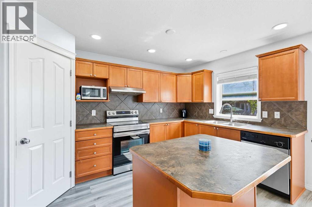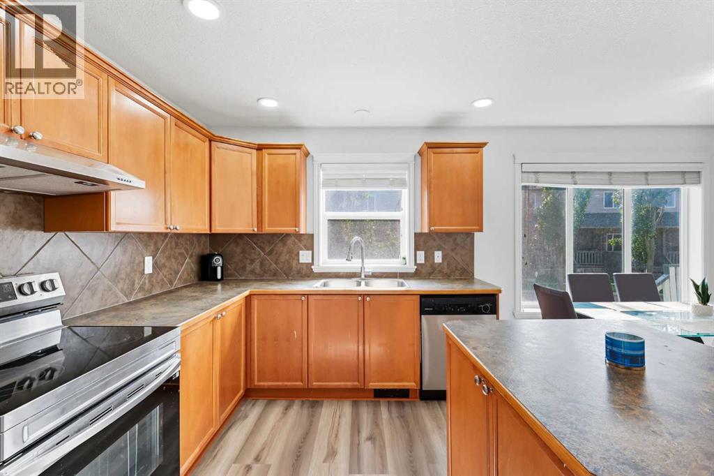 Welcome to this beautifully updated 5-bedroom, 3.5-bathroom home offering over 2,400 sq. ft. of total living space in one of Airdrie’s most prestigious and peaceful cul-de-sacs. Perfect for first-time buyers or growing families, this home sits on a massive lot with incredible curb appeal and is just steps from playgrounds, parks, and everyday amenities. Inside, you’ll love the brand-new vinyl flooring, fresh paint throughout, modern pot lights and flush-mount lighting, updated toilet seats, and sleek new stainless steel appliances. The main floor is bright and open with large south-facing windows, a cozy gas fireplace, and plenty of space for family gatherings. Upstairs, you’ll find three generously sized bedrooms including a spacious primary suite with a walk-in closet and private ensuite, plus a versatile bonus room. The fully developed walkout basement features a 2-bedroom illegal suite with its own washroom, full kitchen, separate laundry, appliances, rec room/living area, and a private entrance—perfect for rental income or extended family living. Step outside to your private backyard oasis featuring a two-tiered deck, mature trees, and a stunning waterfall stream feature that creates a serene retreat. With a double attached garage, expansive driveway, and an unbeatable location close to schools, shops, and Nose Creek Park, this property truly has it all. Don’t miss your chance to own this one-of-a-kind property—book your private showing today with your favourite realtor! (id:55577)