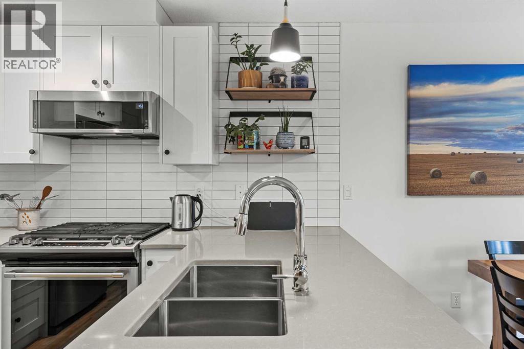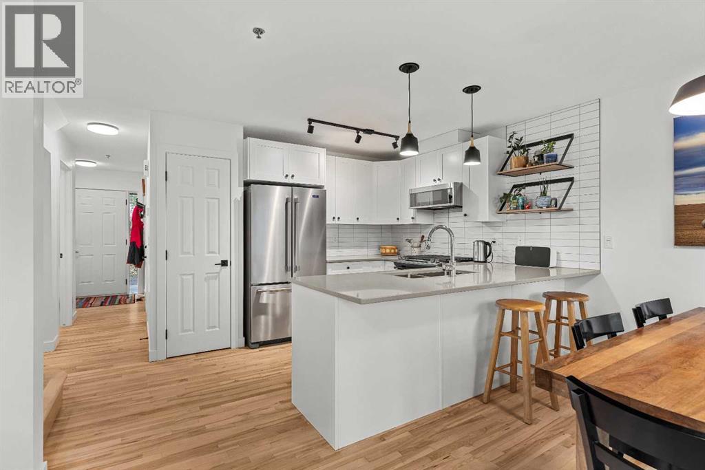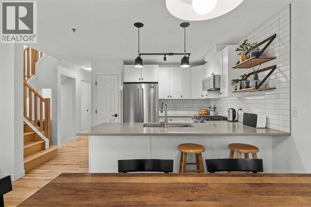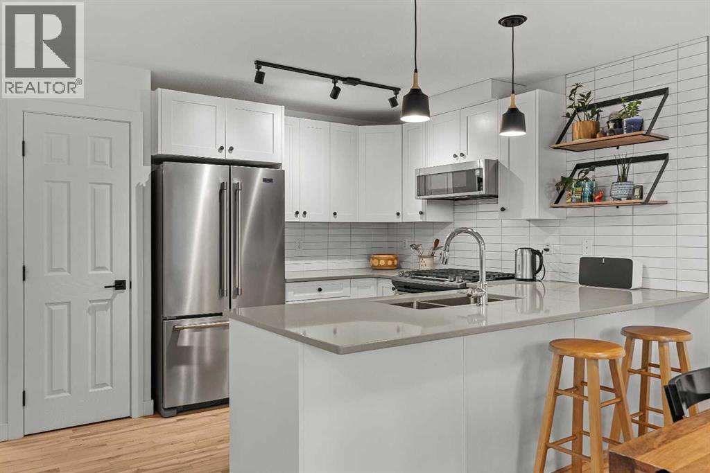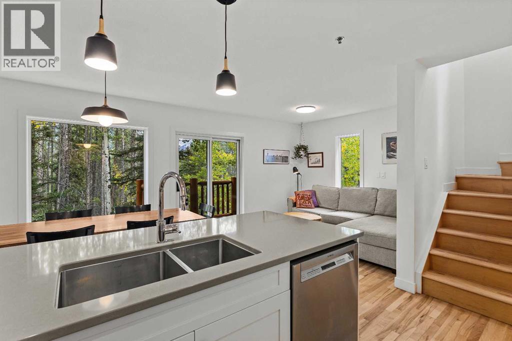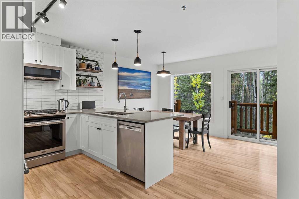 Stunningly presented 3 bedroom, 4 bathroom, end-unit townhouse in the sought-after neighborhood of Rundleview. You’ll love the fully renovated kitchen, solid maple hardwood flooring through the living level and bedrooms, and the huge walk-out additional living area on the lower level with brand new carpet. Numerous balconies and patio allow you to sit amongst the surrounding aspen and feel like you’re bathed in nature. This end unit benefits from additional windows and natural light – and of course that treed view that brings a sense of calm indoors. An enviable location backing on to protected Environment District lands and close to Quarry Lake, Nordic Centre and easy access to Kananaskis Country. Single attached garage, driveway parking, plus visitor parking onsite. Owners love these townhomes and there has not been a listing here for over 2 years – don’t wait to schedule your viewing! (Please note: Short term rentals are not permitted at this property). (id:55577)