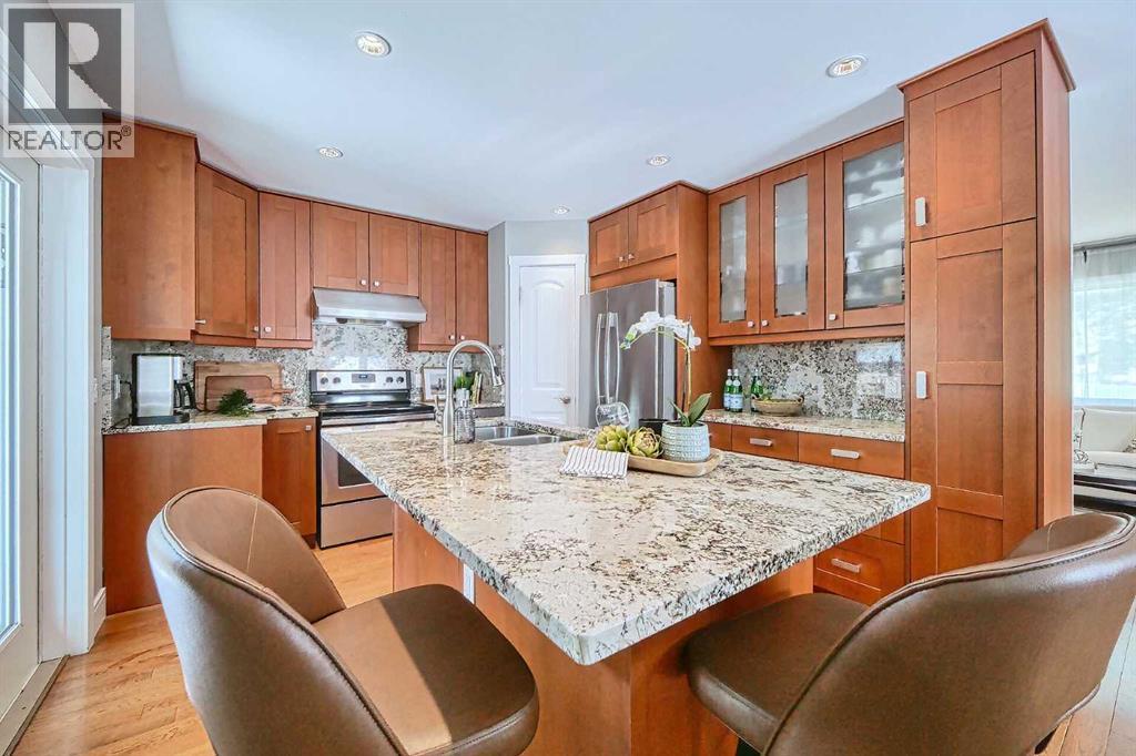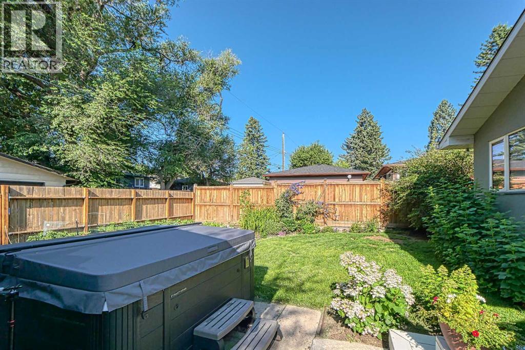 Welcome to this beautifully maintained and thoughtfully updated home in desirable Meadowlark Park a peaceful inner city neighbourhood known for its tree lined streets, walkability, and unbeatable location. Perfect for working professionals, empty nesters, or anyone seeking an easy care home with style, this property blends timeless charm with modern upgrades for comfort, character, and convenience inside and out.Step inside to a bright, airy layout with large windows, a spacious living room, and a central dining area ideal for entertaining or relaxed evenings. The kitchen features timeless cabinetry, updated lighting, and a smart, efficient design. French doors open directly to the deck, where you’ll find a lush, handcrafted garden oasis and patio space perfect for morning coffee or summer dinners. Facing a park and green space right across the street, you’ll enjoy year round views and a serene, open feel.A skylight above the central staircase floods the home with natural light, while wide plank flooring, modern fixtures, and soft neutral tones create a calming atmosphere. The lower level offers warmth and function, complete with a bar fridge, stackable washer & dryer, and a water filtration system located in the utility room. Year round comfort is ensured with central air conditioning and a hot tub for private relaxation.Outdoors, the fully fenced backyard is a private retreat with hand dug perennial beds (established in 2021), mature trees, and pollinator friendly landscaping. Whether you garden, entertain, or simply relax, this yard offers endless enjoyment.Location is unbeatable: only a 10 minute drive to downtown Calgary, with the current owner noting she enjoys her quick, scenic commute. Easy access to Chinook LRT, Elbow Drive, Macleod Trail, and Glenmore Trail keeps you connected to the city, while being minutes from Chinook Centre, restaurants, and entertainment. Families and pet owners will love proximity to top rated schools, off leash parks, and walking trails.If you’re seeking a move in ready home that offers inner city convenience, lush outdoor living, and a welcoming community, this property delivers it all. Book your showing today and discover why Meadowlark Park is one of Calgary’s hidden gems. (id:55577)