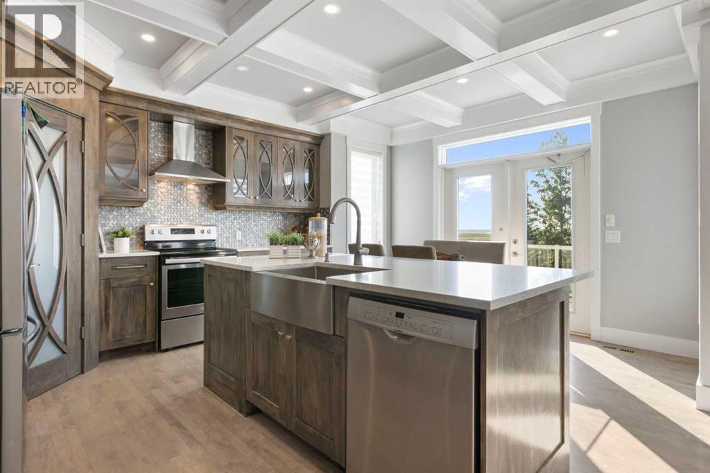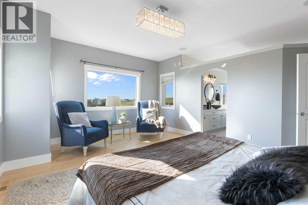 ***Welcome to this breathtaking acreage retreat just minutes from Airdrie, where luxury living meets the tranquility of wide-open country views. Set on an expansive 9.34 acres, this extraordinary property combines timeless elegance, modern updates, and endless space to live, work, and play.Step inside to discover soaring ceilings, striking coffered details, and an abundance of natural light pouring through oversized windows that frame the sweeping backdrop of rolling land. With 4 spacious bedrooms and 3.5 baths, including a spa-inspired 5-piece ensuite, this home is designed to impress. The gourmet kitchen features gleaming quartz countertops, a walk-in pantry, and seamless flow into the dining and living areas, anchored by one of two cozy fireplaces.Entertain in style or unwind in peace on the expansive south-facing balcony, where serene views stretch for miles. The finished walkout basement offers even more space for family and guests, complete with a sunroom, second fireplace, and direct access to the backyard oasis with fire pit.Outside, the property is just as remarkable, boasting a triple attached garage, a detached single garage, and two massive quonsets, ensuring endless storage and workspace options. With a south-facing yard, towering windows, and plenty of room to gather, every detail of this home invites comfort and connection.Perfectly located close to schools and all the amenities of Airdrie, yet tucked away in a private and peaceful setting, this one-of-a-kind property offers the very best of both worlds. A true haven for those seeking space, style, and serenity. (id:55577)