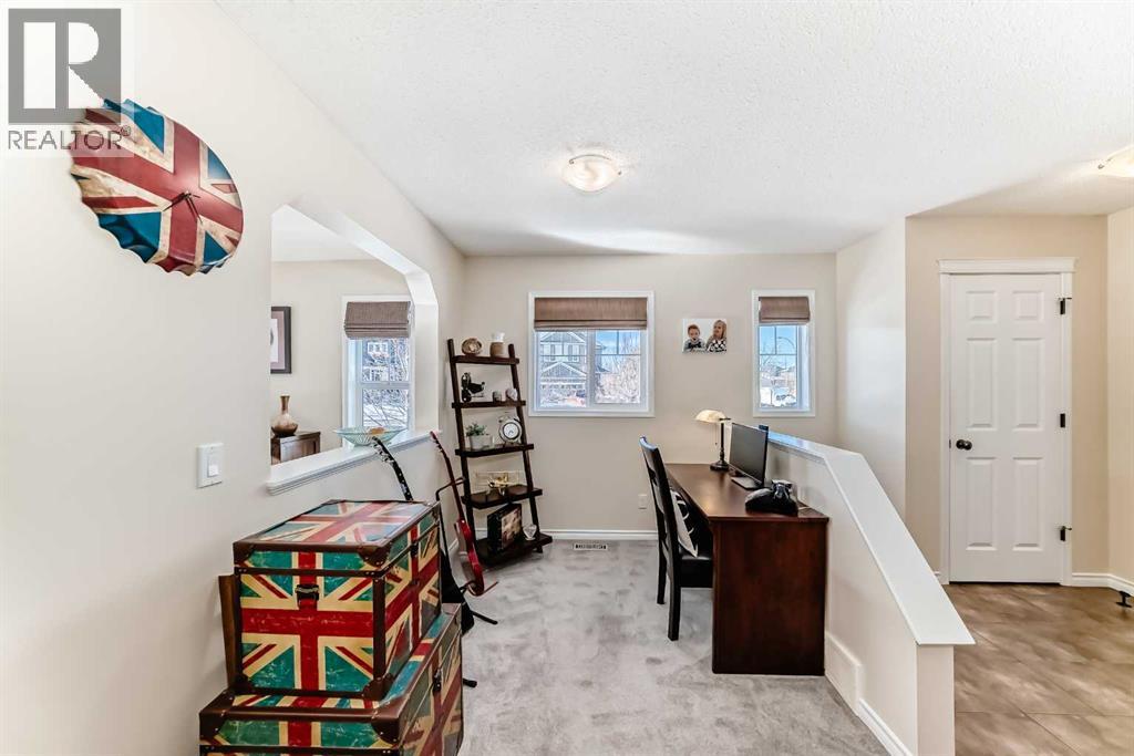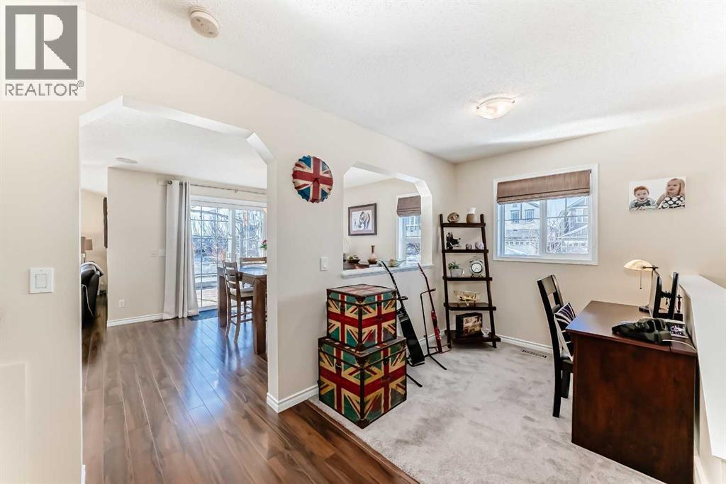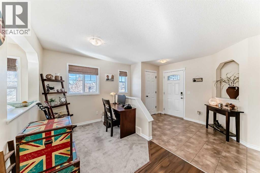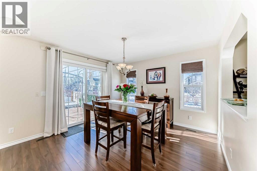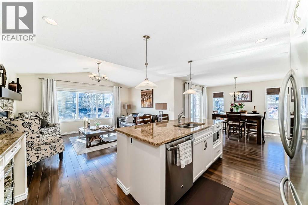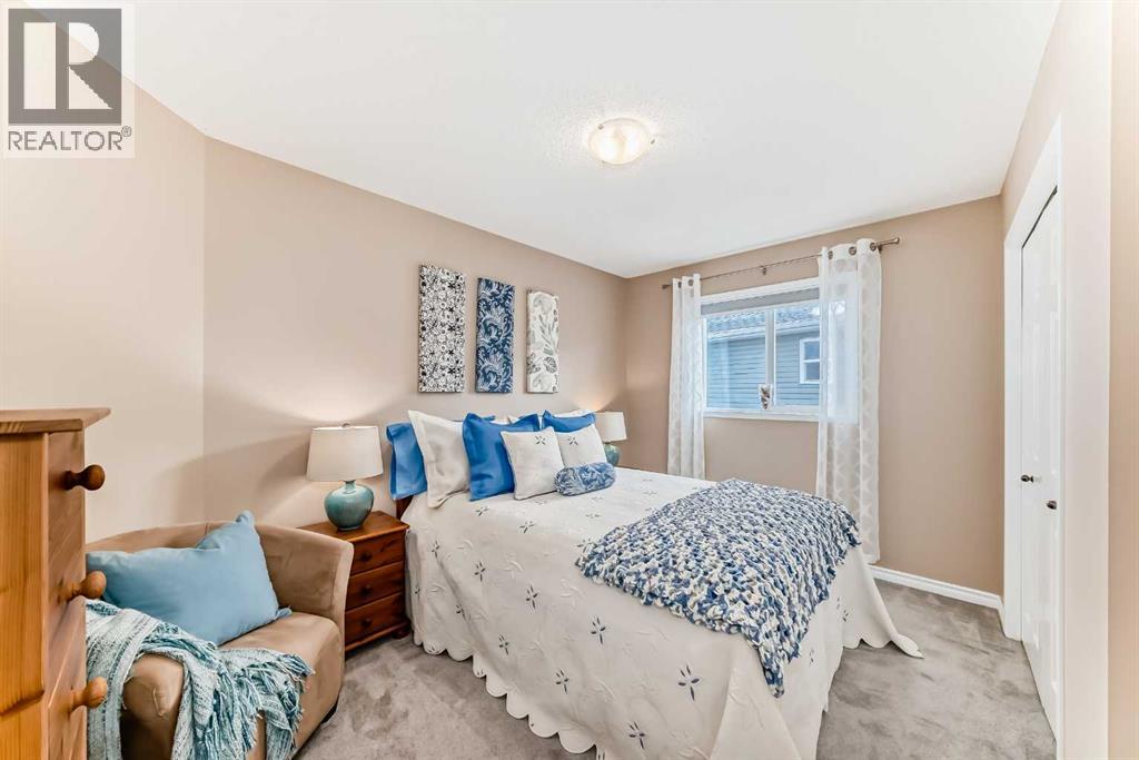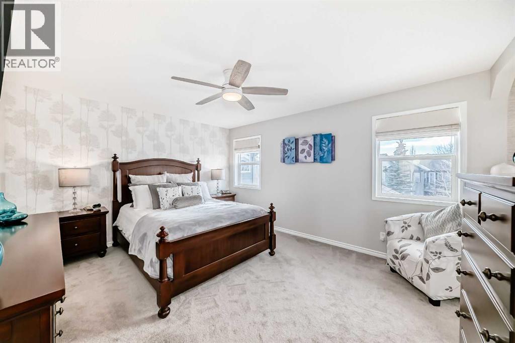 Welcome to this 4 bdrm, 3.5 bath, fully finished, immaculate one-owner home, built by Mckee Homes, in the beautiful, family-friendly, sought-after community of Ravenswood Airdrie. Situated with city greenspace to the north (no shovelling), walking paths behind, with a large sun-catching south/west-facing yard and a 2-tiered deck. With over 2,900 sq ft of finished living space and the flex/poss 5th bdrm in the basement, there is room here for a growing family. Walking in, you will love the open concept, which includes a 2-piece bath to the left, a door to the mudroom that connects to the laundry room, pantry and kitchen, and the garage entrance. Ahead is an office space, then into the open kitchen, dining and living room area. Large south/west windows fill the rooms with an abundance of natural light. The kitchen is for someone who loves to cook and entertain with modern white cabinetry, granite counters with ample counter space and an island. SS appliances, a 5-burner gas stove, a DBL Door refrigerator w water and ice maker and a large pantry make this plan ideal. The living room is vaulted and has a cozy gas fireplace with a fan and a stone front, and the dining area will fit a large table for family meals. Then through the sliding patio doors onto an extra-large 2-tiered deck w a hot tub, paved patio area with a firepit, privacy screen, extra power outlets, and a huge backyard for gardening and entertaining. Upstairs is a vaulted, bright bonus room, perfect for an extra TV room or play area for the kids. 3 bedrooms and 2 bathrooms. All the rooms are a good size, with the primary large enough to fit not only a king-size bed but also all your large bedroom furniture and your extensive wardrobe in the walk-in closet. The ensuite is very spacious with dual vanities on a long counter, a large separateshower and a soaker tub with a separate shower head. Downstairs, you will find a 4 th bdrm without a closet, another flex room with two windows that could easily be turn ed into a 5 th bdrm. As well as another bathroom, plus a fabulous bar and entertainment room, with a natural theme for relaxing. All TVs and TV mounts throughout the house stay, as do the hot tub, shed, bar fridge, SONOS soundsystem, and built-in speakers throughout the house, including both back decks, the lower deck is also fitted with low level lighting. New roof shingles in 2021, Gas hot water tank 2020, carpets upstairs 2024, built-in Telus security system that the buyer can take over, the seller is paying $25 + tax a month. The smoke detector is also linked to Telus security. This home is a one-owner home and is immaculate and feels like new inside. You will not be disappointed. It's got quick access to parks, pathways, nearby schools, and shopping at the Yankee Valley Crossing Shopping Plaza, the Kingsview Plaza Sierra Springs Plaza. Access the rest of the city and Calgary through several nearby major roadways, including Deerfoot Trail, Yankee Valley Blvd. Downtown Calgary is a 23 min drive. (id:55577)