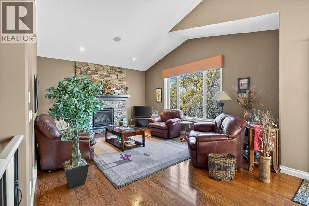 Welcome to your next home in Hillview Estates!This beautiful bungalow sits in one of the neighborhood’s most desirable locations, featuring a walkout basement that backs onto a quiet, peaceful canal.Step inside to an open-concept main floor that feels bright and airy, flowing seamlessly from the front door to large back windows overlooking your private, tree-lined yard.At the front of the home, an office with French doors and large windows offers an ideal workspace or can easily serve as a fourth bedroom.Hardwood floors flow throughout the kitchen and living area. The kitchen features two-tone cabinetry, stone countertops, and a spacious sit-up island, perfect for cooking or entertaining. The living room centers around a stone-clad fireplace, creating a warm, inviting atmosphere.The primary suite includes a walk-in closet and an ensuite bathroom with a shower and large soaking tub. Conveniently, located just outside the bedroom is the main-floor laundry room for easy access.Downstairs, the fully finished walkout basement offers a large recreation area with a second gas fireplace, two generous bedrooms and a full bathroom. One of the bedrooms features French doors that open directly onto the outdoor patio.Additional features include a heated, fully finished garage, a new roof (2025), and a built-in irrigation system. This home is truly move-in ready and waiting for its next owners.Homes like this don’t come up often in Hillview Estates, so book your showing today! (id:55577)