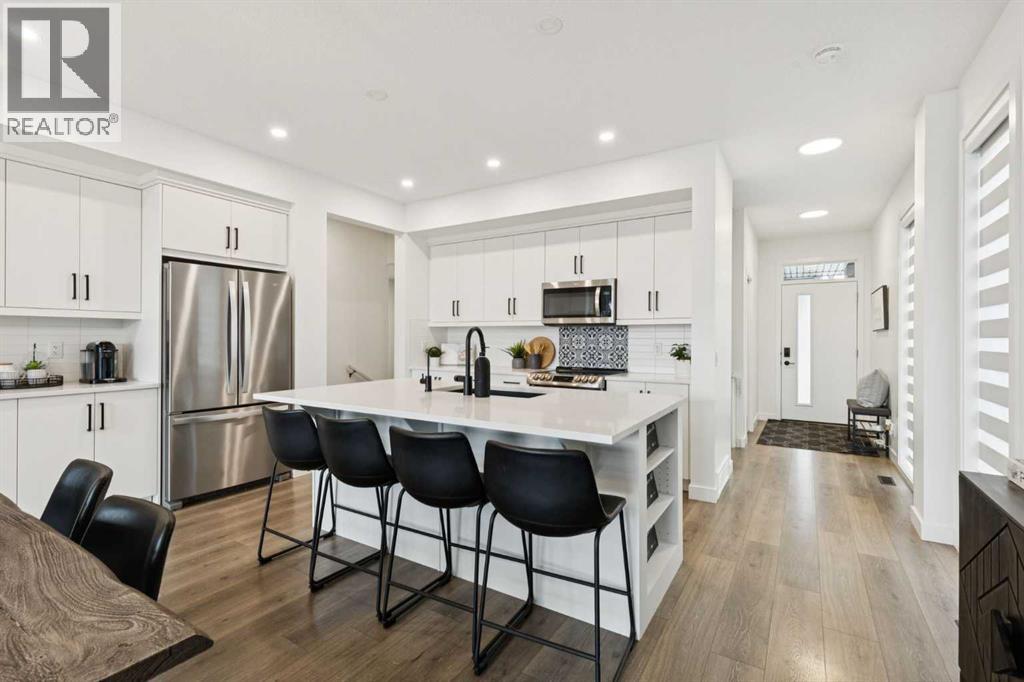 Welcome to this beautifully UPGRADED & THOUGHTFULLY DESIGNED two-storey home in the sought-after community of Precedence! Blending style, comfort, and functionality, this home offers a thoughtfully planned layout with stunning finishes throughout.The OPEN-CONCEPT main floor showcases a bright WHITE KITCHEN accented with sleek BLACK HARDWARE, QUARTZ COUNTERTOPS, TONS OF COUNTER SPACE and a large U-SHAPED ISLAND with a BREAKFAST BAR. With a WALK-IN PANTRY, UPGRADED TILE BACKSPLASH, INDUCTION COOKTOP, and BAR/WINE FRIDGE, this kitchen is both a chef’s dream and an entertainer’s delight.The spacious living room is filled with LOTS OF NATURAL LIGHT from the TRIPLE-PANE WINDOWS and soaring ceilings, creating an inviting atmosphere. Step onto the east-facing deck where the sun rises to enjoy a hot cup of coffee or the opportunity to BBQ as its roughed in for a gas line. This home is the perfect place for hosting friends or enjoying your morning coffee while taking in the sunrise.Upstairs, the primary retreat is a true highlight, featuring expansive windows, a spa-inspired 5-piece ensuite with a SOAKER TUB, STAND-ALONE SHOWER, and DUAL VANITY, plus a WALK-THROUGH CLOSET with direct access to the laundry room. Two additional bedrooms, a 4-piece bath, and a central bonus room complete the upper level.The unfinished, walkout basement with bathroom rough-in provides endless opportunities to create your dream space. Outside, enjoy the AGGREGATE PATIO and beautifully landscaped yard. Additional features include a double attached garage with built-in shelving and SOLAR PANELS for enhanced energy efficiency.This home checks all the boxes for modern living in a family-friendly community. Don’t miss your chance—book your showing today! (id:55577)