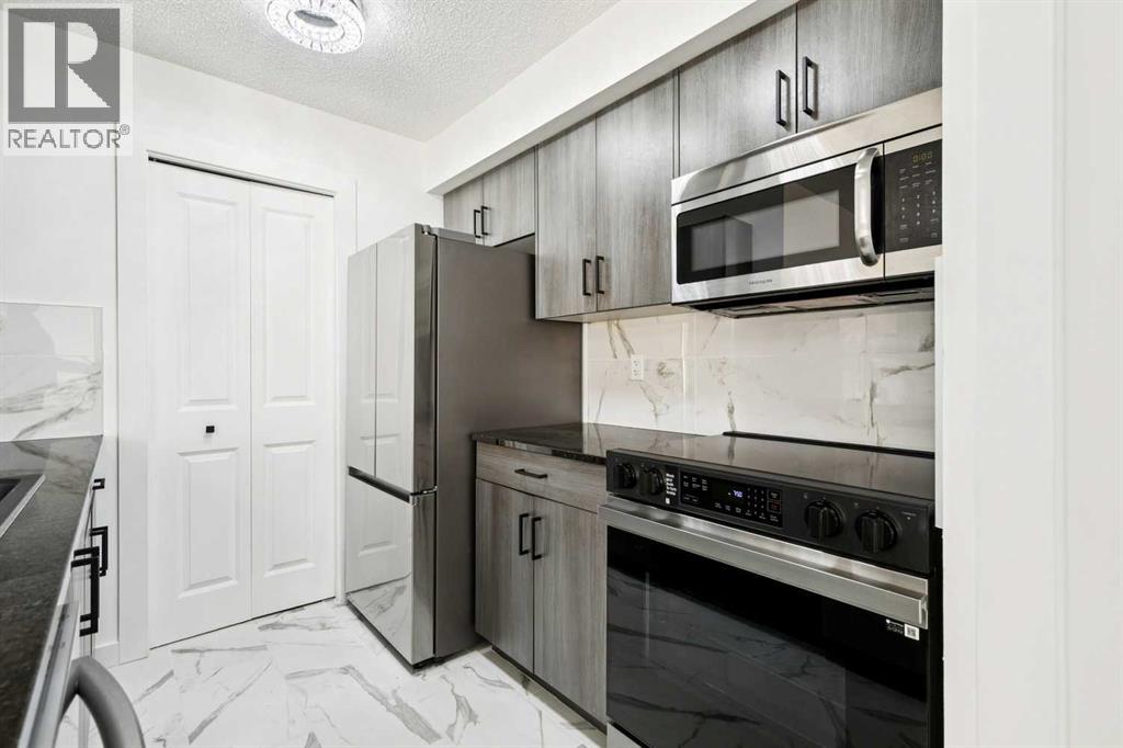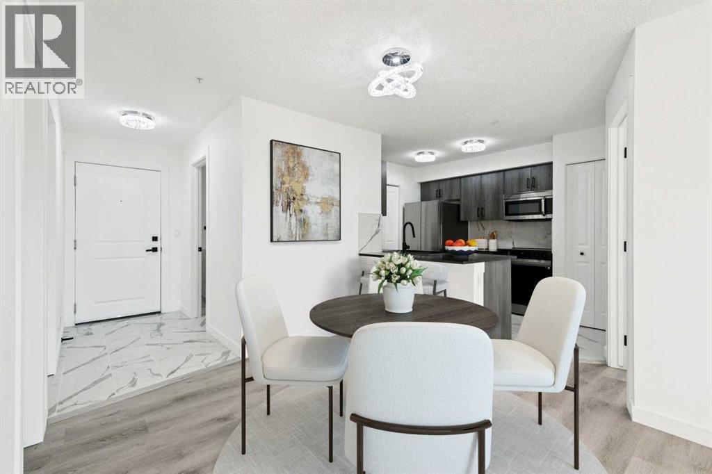 Modern, move-in ready living in the heart of Legacy. This fully updated 2-bedroom, 2-bathroom condo sits on the third floor with a west-facing exposure that brings in beautiful afternoon light. The open-concept design blends the living and dining areas seamlessly, offering a functional layout that works just as well for everyday living as it does for entertaining. A breakfast bar defines the kitchen space, while large windows throughout enhance the bright, airy atmosphere. Thoughtful upgrades include granite countertops, updated kitchen cabinetry, stainless steel appliances, fresh paint, and luxury vinyl plank flooring, delivering a clean, modern finish throughout. The primary bedroom features a walk-through closet and private 4-piece ensuite, while the second bedroom and full bathroom provide flexibility for guests, a home office, or shared living. In-suite laundry with full-size machines and extra storage add to the home’s practicality. Step outside to the spacious covered balcony, ideal for unwinding or hosting friends. This unit also includes a titled underground parking stall in a heated parkade, along with secure bicycle storage. Conveniently located near shopping, dining, parks, pathways, and the South Health Campus, with easy access to Macleod Trail, Stoney Trail, and Deerfoot Trail. Public transit is just steps away, making this a fantastic option for first-time buyers, downsizers, or investors looking for a stylish, low-maintenance home in a well-connected community. (id:55577)
