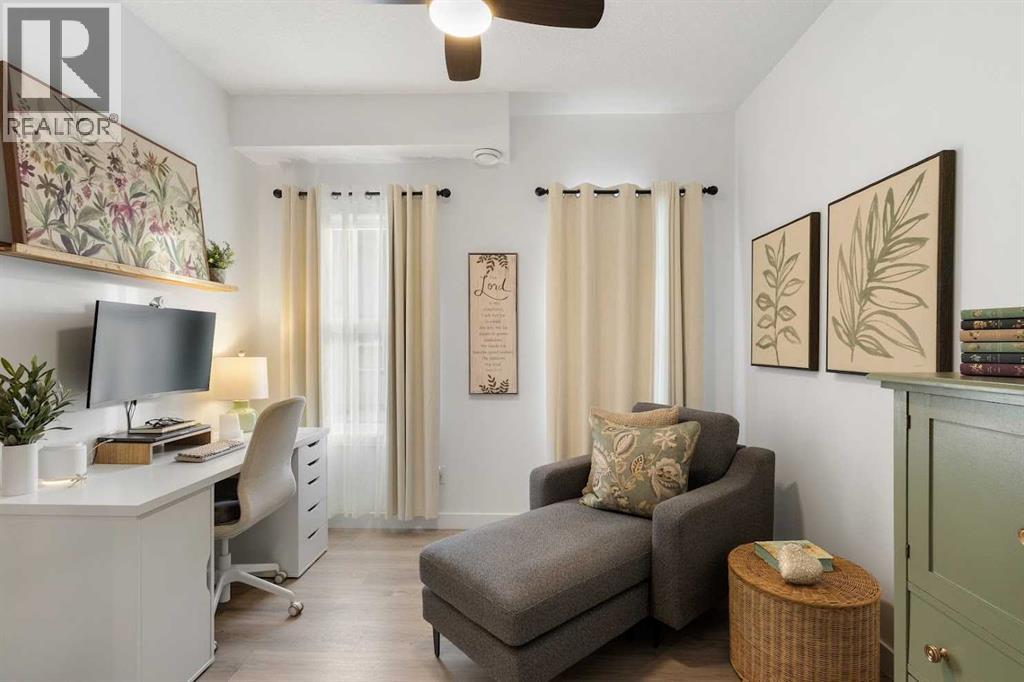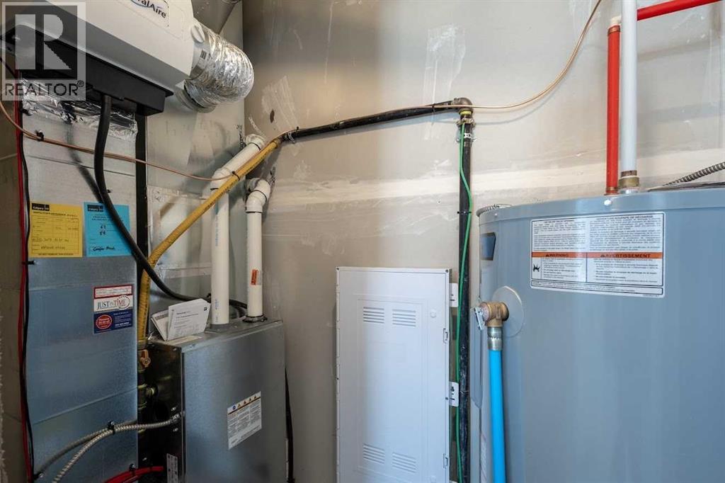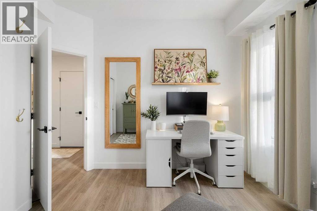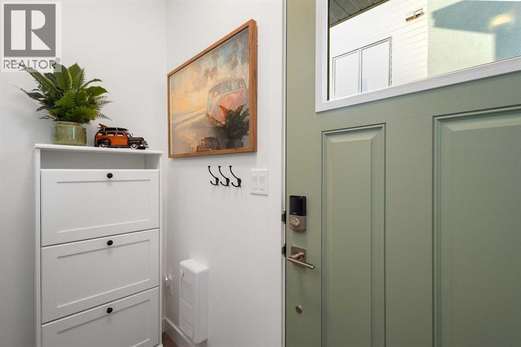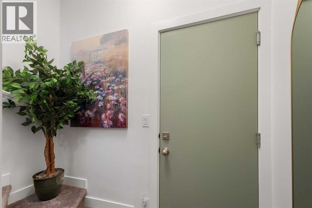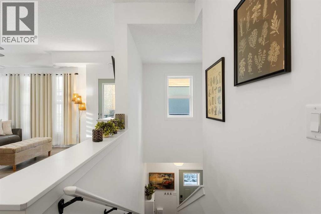 Contemporary European-style townhome with 2 beds, 2 baths, a spacious balcony on the TOP floor & a tree-lined view. From the moment you enter, the home showcases a designer show-home feel. The open-concept 2-storey stacked townhouse features 9' ceilings, double-pane windows, fully installed CENTRAL AIR-CONDITIONING, a HIGH EFFICIENCY FURNACE, humidifier, water tank, water-proof durable LVP flooring throughout the kitchen, living, dining area, bathrooms, & bedrooms. The European-inspired kitchen is finished with Quartz countertops, High-quality cabinets, Soft-close doors, Backsplashes, new UPGRADED SAMSUNG stainless-steel appliances, microwave hood fan, and front-load washer & dryer. The newly completed Elkwood Townhouse (Phase 2) offers affordable luxury & convenient living, close to Aspen Landing Shopping. Bordered by a natural environmental reserve & walking trails that connect throughout the community, it is a perfect location for active living & relaxation. Built by Slokker Homes, a quality builder since 1935, these homes offer the best value in Aspen and Springbank Hill. (id:55577)