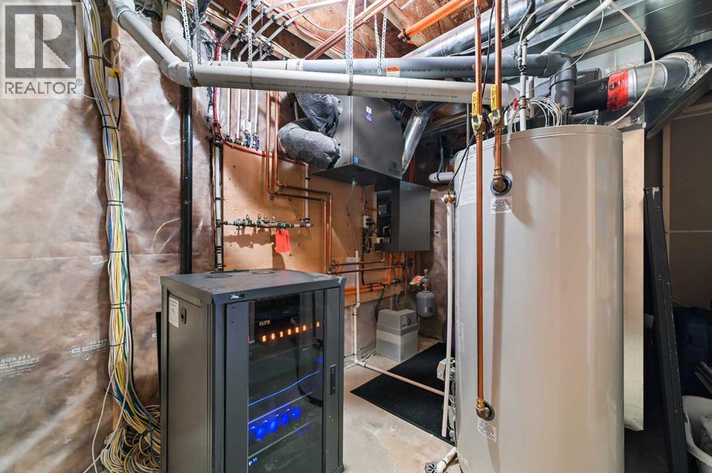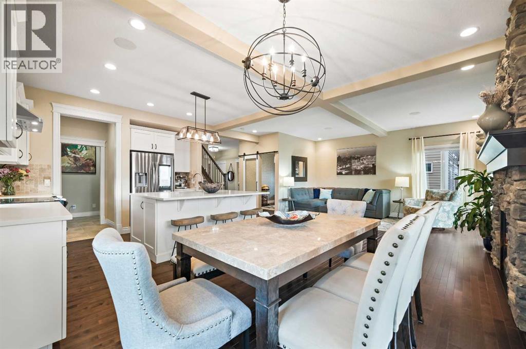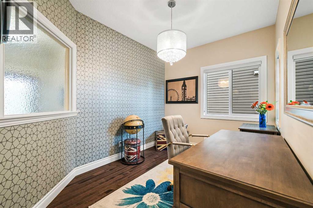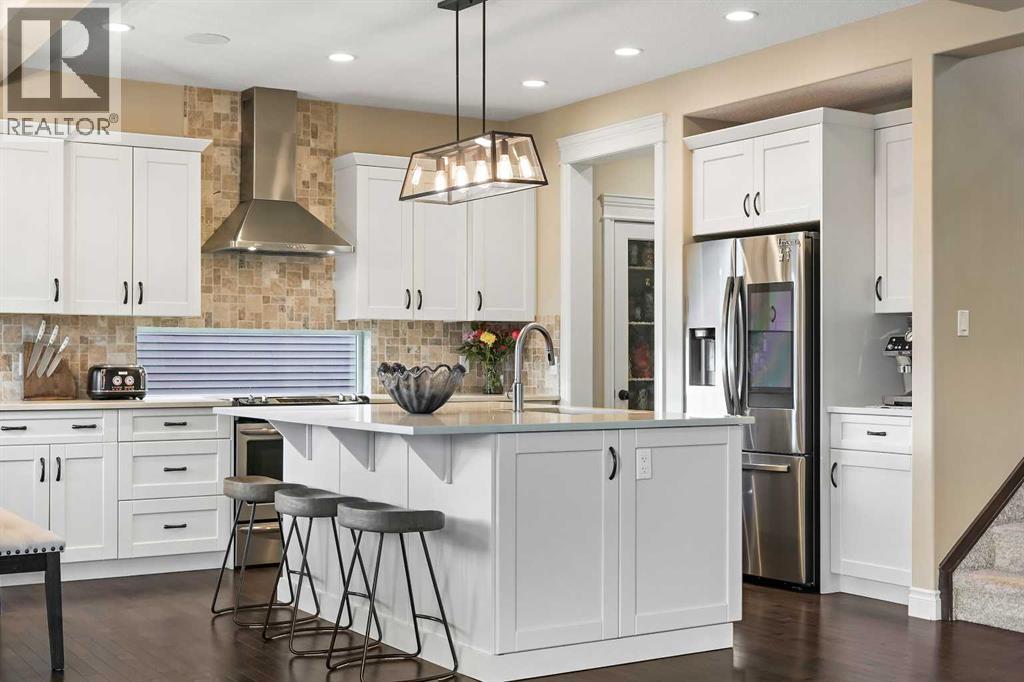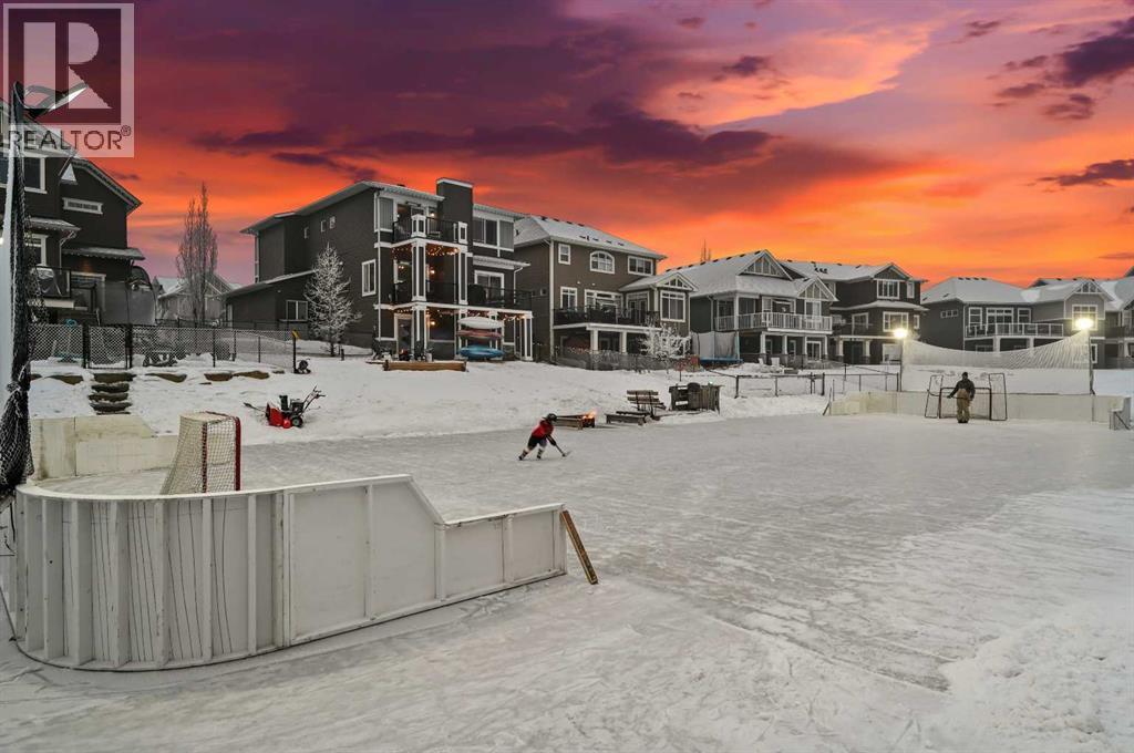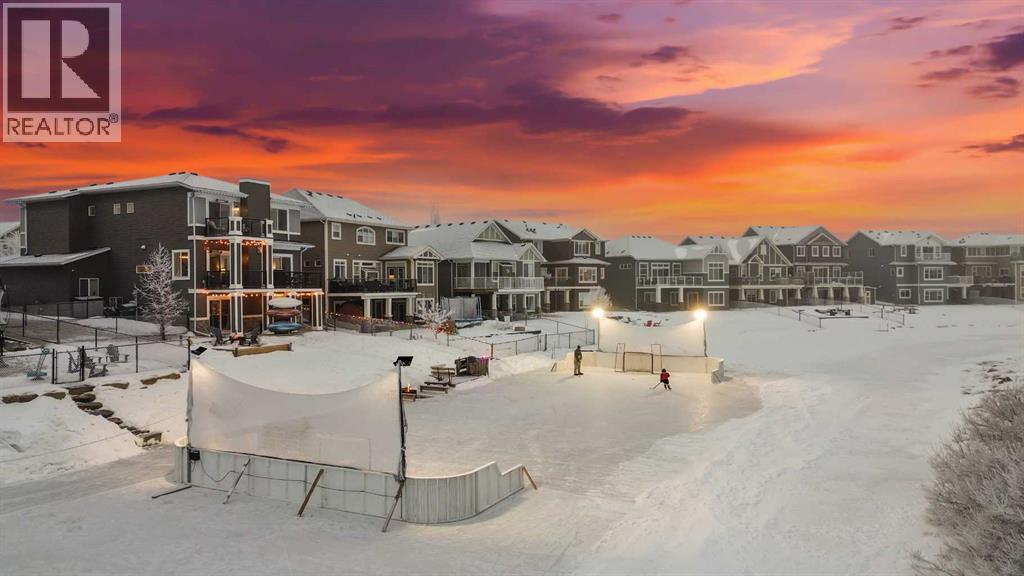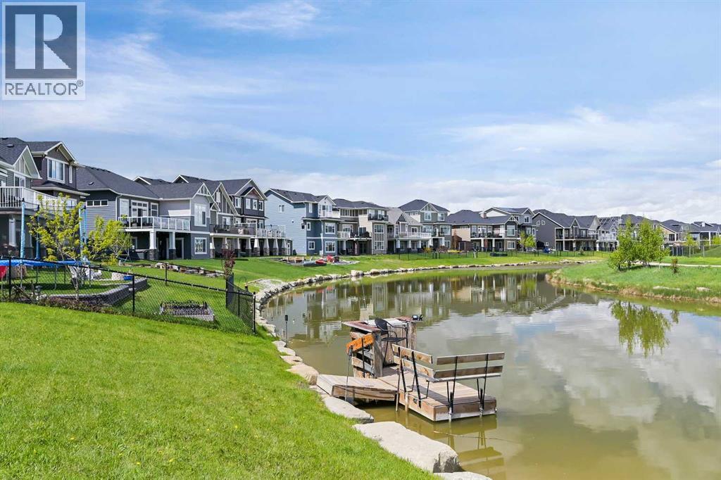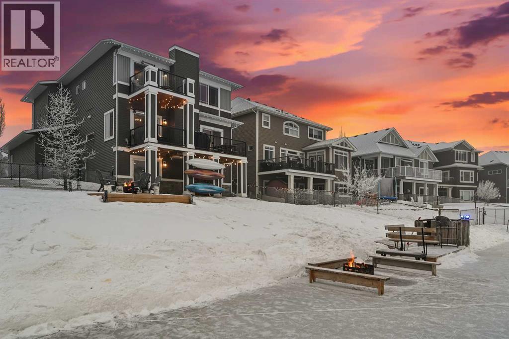 Welcome to this WATERFRONT home on an oversized 7,290 sq ft lot in Bayside Estates, offering one of the most sought-after lifestyles in Airdrie. Backing directly onto the Bayside canal with a private dock, this former McKee showhome (original owner, took possession in Nov 2018) delivers year-round enjoyment including SKATING ON YOUR OWN BACKYARD RINK, kayaking, and unobstructed water views from multiple levels to enjoy astounding sunsets and the northern lights. The main floor is thoughtfully designed with an open-concept layout, hardwood flooring throughout, and large windows that bring in abundant natural light. The living room features a floor-to-ceiling stone gas fireplace flowing seamlessly into the dining area overlooking the canal. The upgraded kitchen offers white cabinetry, stainless steel appliances (including a newer WiFi-enabled fridge), quartz countertops, and a generous food prep space. Also on the main floor is a large office, a functional garage entry with built-in seating and storage, a half bathroom, and a spacious balcony with two sets of sliding doors—an ideal spot to take in the waterfront setting. Upstairs you’ll find a large bonus room with a built-in desk, along with a spacious primary retreat overlooking the canal. The primary bedroom includes its own private balcony, a spa-inspired ensuite with a deep soaker tub, dual vanity, tiled shower, and a walk-in closet with custom built-in shelving. Two additional bedrooms are well-sized and conveniently located near the second full bathroom and upstairs laundry. The walkout basement adds excellent versatility with a large family room, pool table area, and custom bar complete with a wine fridge—well suited for entertaining, movie nights, or a home gym. The fourth bedroom includes a finished nook beneath the stairs, ideal for a children’s play area, along with another full bathroom. Mechanical features include a full built-in media system with speakers throughout, Sonos integration, and a boiler syst em providing in-floor heat in the basement. As a former showhome, the oversized heated garage is fully finished with in-floor heating, ceiling texture, lighting, built-in speakers, and an extended bay ideal for bikes, motorcycles, or workshop space. Additional highlights include Gemstone architectural exterior lighting, underground sprinklers, and a rare extra-wide waterfront lot. This is a well-maintained home offering a unique lifestyle in Airdrie that needs to be seen to be fully appreciated. (id:55577)
