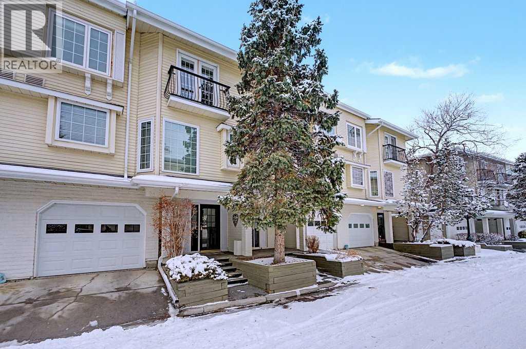 Proudly presenting this bright, beautifully renovated townhome in the highly sought-after community of Varsity Village, offering over 2,100 sq ft of developed living space designed for comfortable, connected living. Step inside to a sun-filled main floor featuring rich hardwood flooring, a spacious living room with 9 foot ceilings and a cozy wood-burning fireplace, and a wall of windows that flood the home with natural light while providing seamless access to your private deck—perfect for enjoying Calgary’s sunny days. The expansive dining area easily hosts large gatherings, while the thoughtfully updated kitchen showcases stainless steel appliances, ample storage, pantry space, and a charming dining nook for everyday living. Upstairs, retreat to the generous primary bedroom with a 4-piece ensuite and walk-in closet, complemented by a spacious second bedroom and a versatile bonus room ideal for a home office, family room, or flex space. The lower level sets this home apart with a rare and highly functional additional bedroom/office, - perfect for guests, a private workspace, or multigenerational living, along with a welcoming entryway, laundry, and access to the oversized attached garage. Extensive upgrades including hardwood flooring, triple pane windows, patio door, furnace, electrical panel, refinished deck, and a new garage door provide peace of mind and true turn-key convenience. Additional parking is available directly in front of the unit. Located in the well-managed, pet-friendly Landmark Estates III, residents enjoy access to scenic ponds, parks, and pathways, all just minutes from the University of Calgary, Market Mall, University District, Foothills and Alberta Children’s Hospitals, and excellent schools—offering an exceptional lifestyle in one of Calgary’s most established communities. (id:55577)