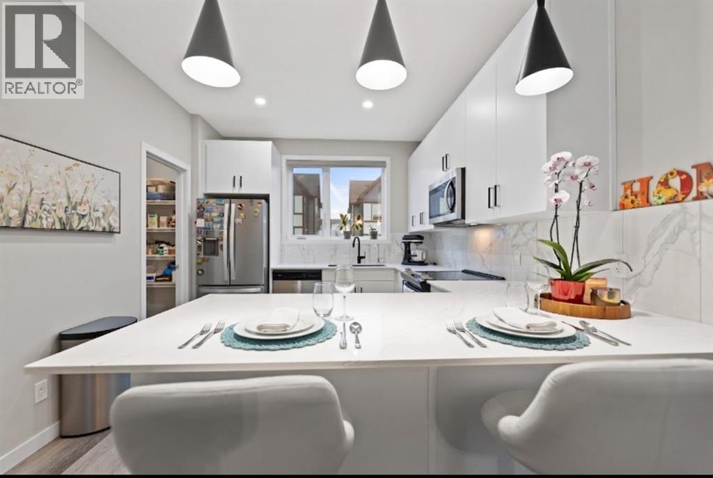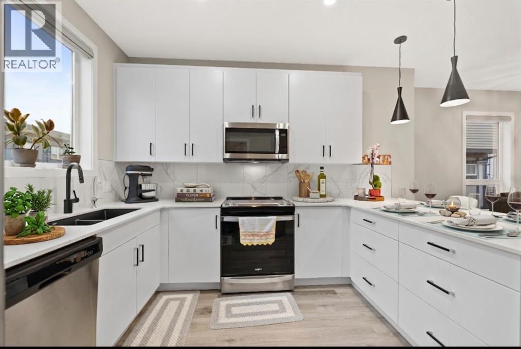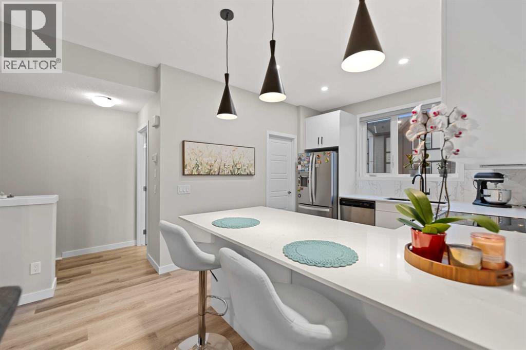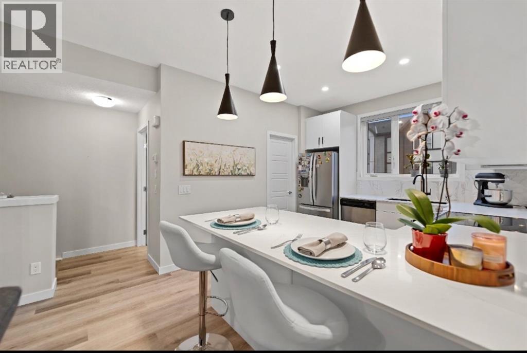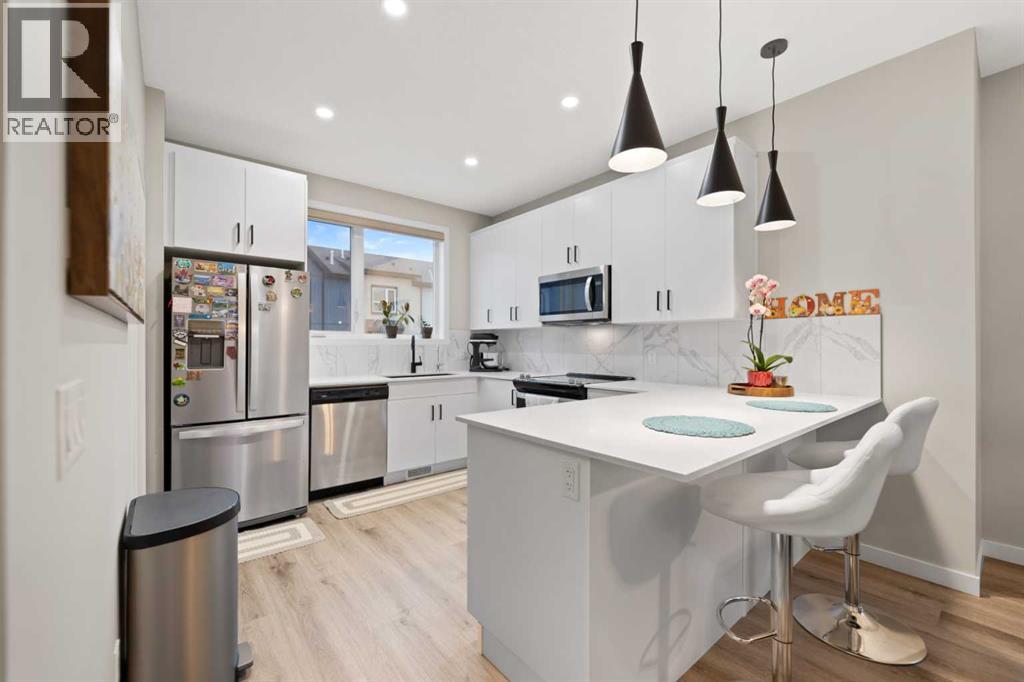 Welcome to Belmont, where comfort, style, and value come together in this beautifully upgraded 3 bedroom, 2.5 bathroom townhome offering 1,533 sq. ft. of bright, functional living space. With 9’ ceilings on the main floor and an open concept layout, this home feels spacious and inviting from the moment you walk in. The kitchen is a standout, featuring a U shaped design with plenty of counter space and storage, a breakfast bar that is perfect for busy mornings or casual entertaining. The great room and dining area flow seamlessly together, while the upper balcony gives you the perfect spot to enjoy your morning coffee or relax at the end of the day. Upstairs, the primary bedroom includes its own ensuite, with two additional bedrooms offering flexibility for guests, a home office, or extra space to fit your lifestyle. Upper floor laundry adds everyday convenience. You will also love the oversized tandem attached garage, ideal for parking, storage, a workshop, or hobbies. Located close to parks, pathways, shopping, dining, major routes, and within walking distance to the new City Field House being built in Belmont, this move in ready home is an excellent opportunity for anyone looking for modern living with room to grow. (id:55577)