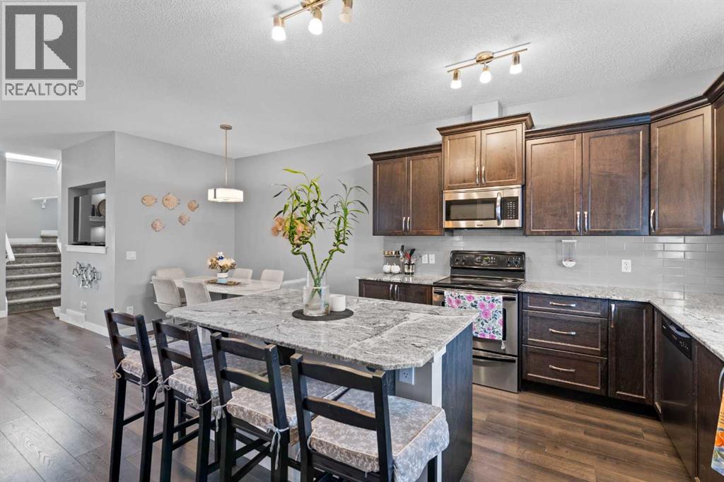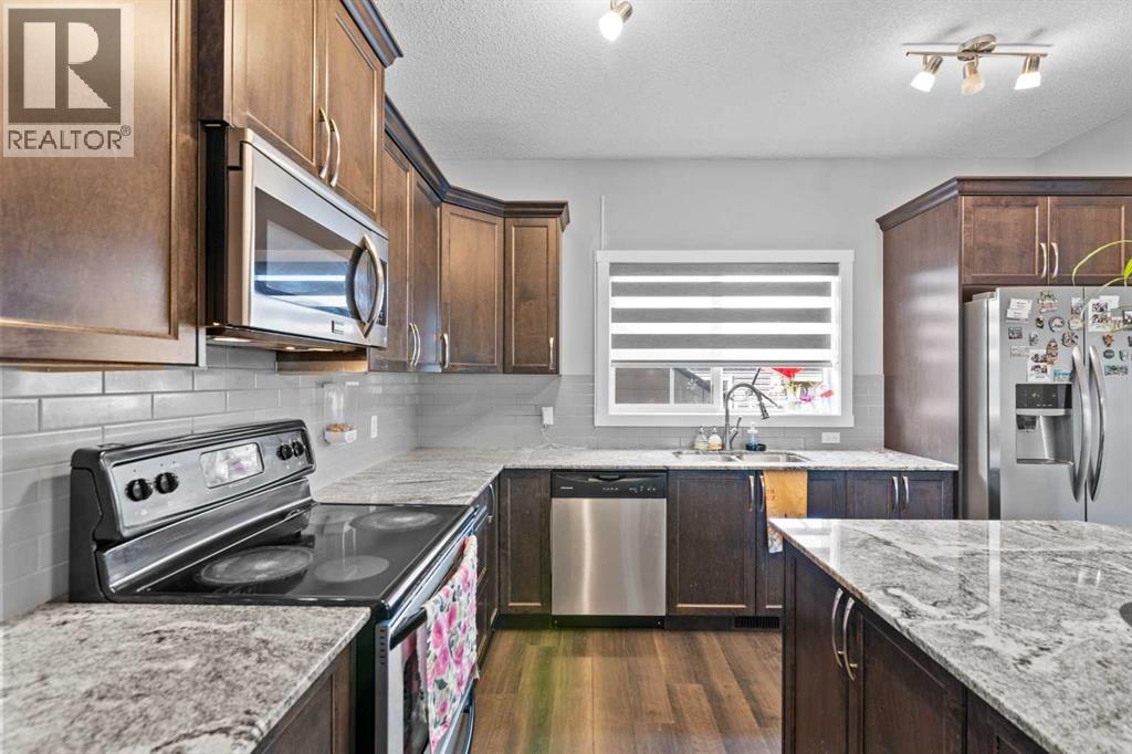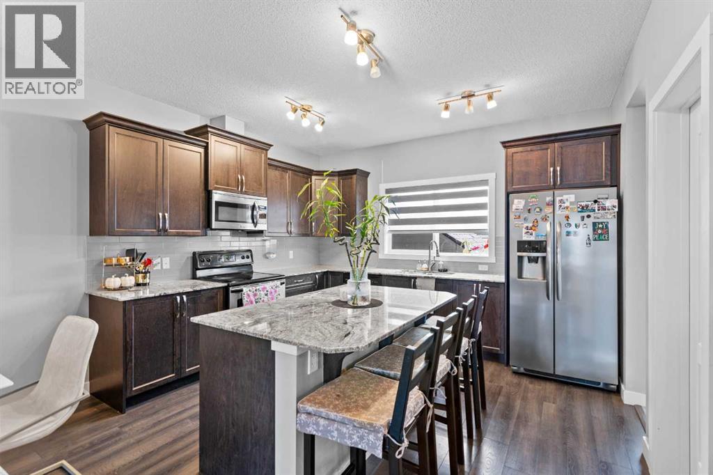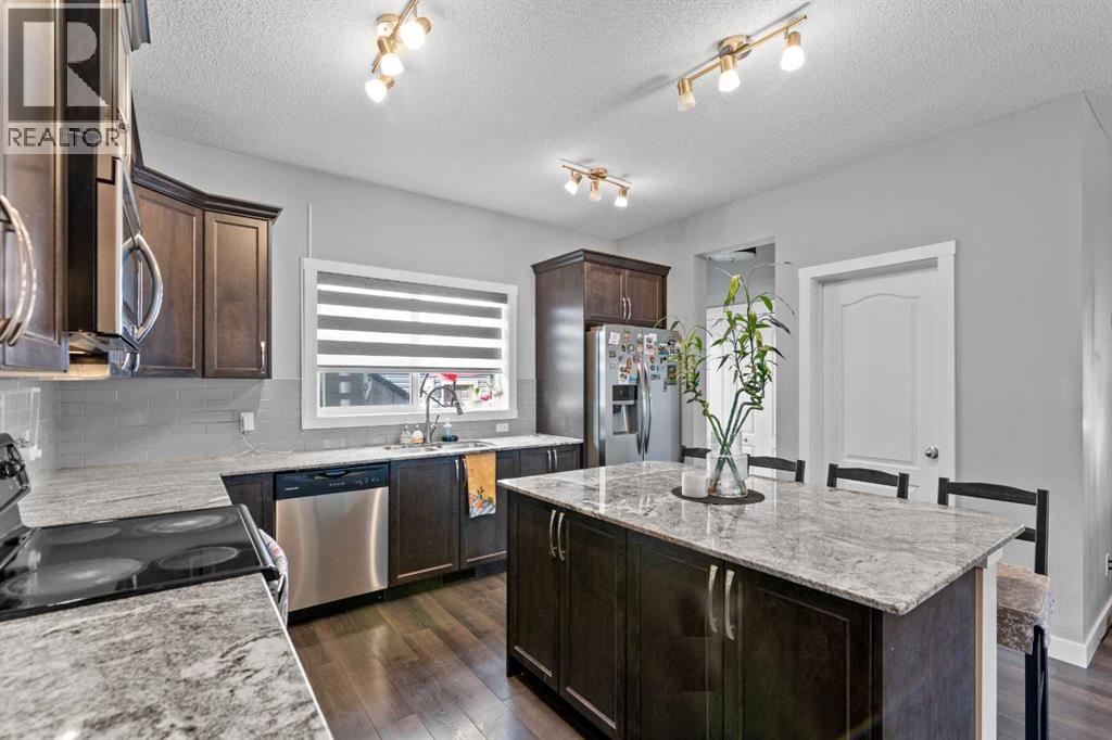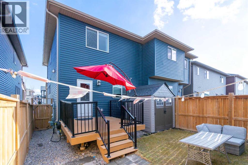 Welcome to your new home! This beautifully maintained property offers the perfect blend of comfort, style, and convenience. Featuring a bright and open floor plan, modern finishes, and ample natural light throughout, every detail has been thoughtfully designed This fully loaded home features a developed basement, double detached garage, fenced & landscaped yard, shed, 2 laundry areas, 4 bedrooms, 3.5 baths, central A/C, and many upgrades. Enjoy a charming verandah, rear deck, newer roof, storm doors, phantom screen, and mostly new appliances. Over 2,000 sq. ft. of total living space with a bright tiled foyer, luxury vinyl plank floors, spacious dining area, and chef’s kitchen with granite counters, tall maple cabinets, walk-in pantry, and 4-seat island. Upstairs offers 3 large bedrooms, 2 full baths (granite vanities), and upper laundry with new washer/dryer. The finished basement includes a rec room, 4th bedroom, full bath, second laundry, and plenty of storage. Located in vibrant Cornerstone with quick access to Stoney Trail, schools, shopping, parks, airport & more. Built by award-winning Shane Homes – move-in ready! (id:55577)