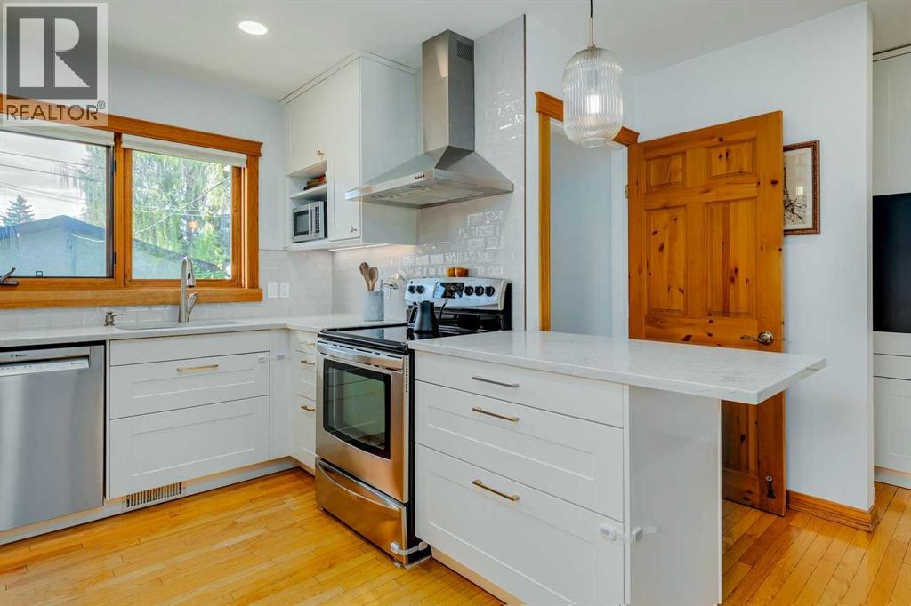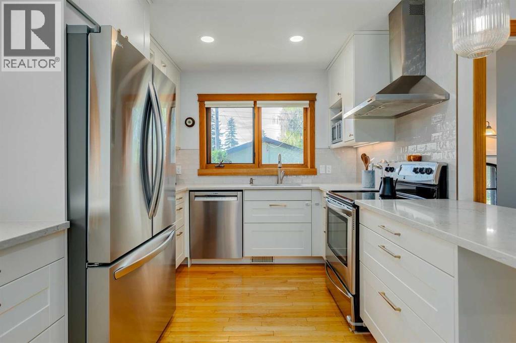 An Urban Oasis in Southwood. Discover a beautifully updated bungalow in the established community of Southwood, offering over 1,800 sq ft of thoughtfully developed living space. The main level features warm hardwood floors and an open-concept living and dining room that flows into the tastefully updated kitchen, complete with sleek quartz countertops, crisp white cabinetry, and a suite of stainless steel appliances. Two main-floor bedrooms and a four-piece bath, along with a private primary bedroom with a three-piece ensuite and soaker tub, provide peaceful retreats.The versatile lower level includes a large recreation room, a third bedroom (ideal for a home office), a three-piece bath, and dedicated laundry and storage. Enjoy a sunny south-facing backyard with a newly installed covered pergola and a single detached garage. This home has been meticulously maintained, with key recent updates including a new sewer line (2021), a newer furnace, hot water tank, and new roof (2024). Located close to parks, schools, and shopping, with easy access to the downtown core, this is a home that offers comfort and convenience. (id:55577)