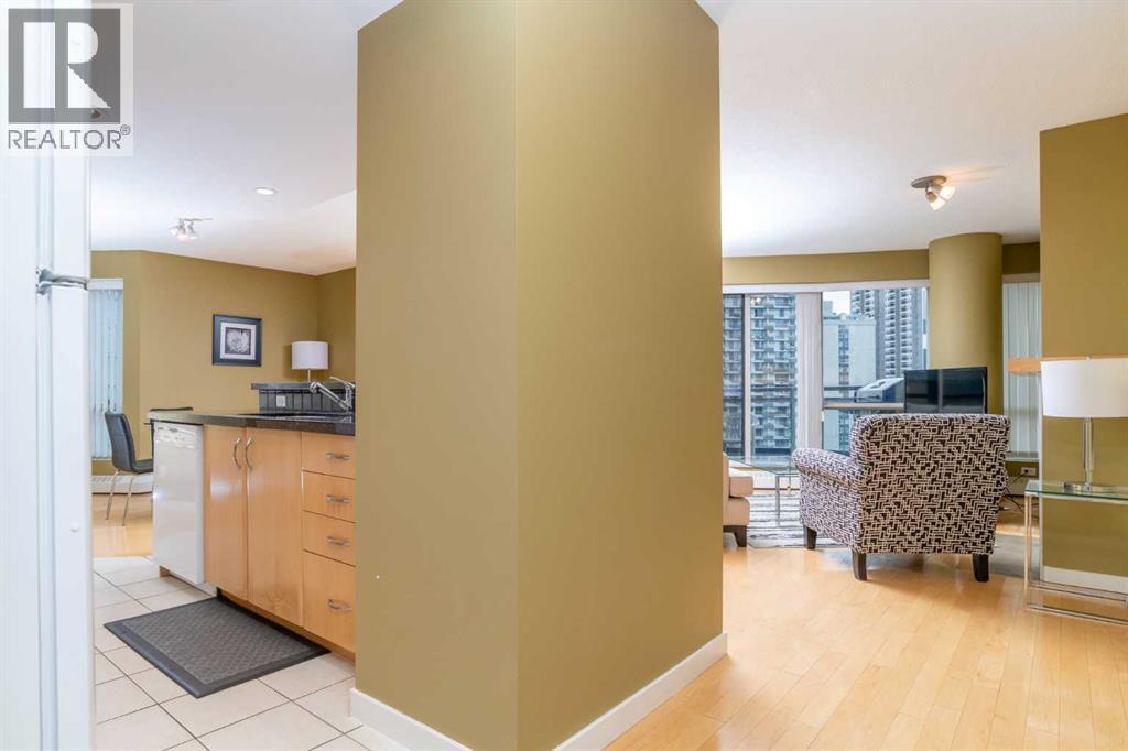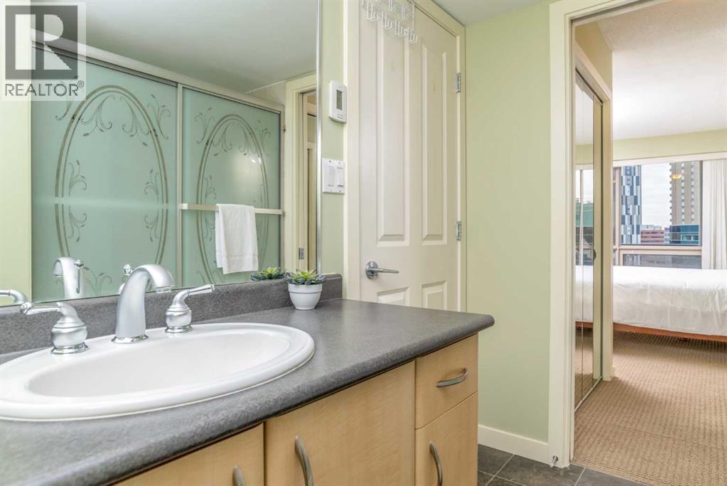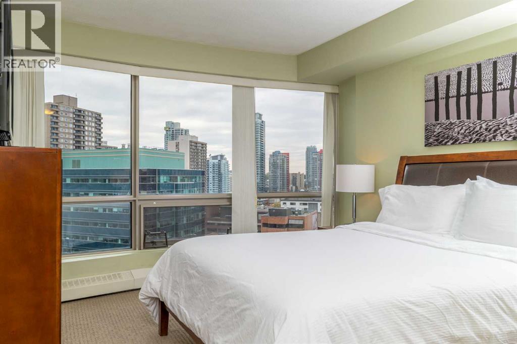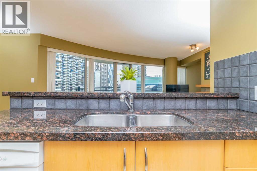 Welcome to your cozy urban getaway nestled in downtown Calgary! This stylish condo offers a perfect balance of comfort, convenience, and captivating city views. Step into the welcoming open-concept living area, filled with natural light from floor-to-ceiling windows. The kitchen, equipped with granite countertops and a convenient breakfast bar, is perfect for quick meals and casual dining. Relax in the comfortable master suite, complete with a spacious walk-through closet leading to the ensuite. The Den is versatile, providing space for a bed, guest area, or home office, according to your needs. Take advantage of the spacious balcony, offering a serene retreat from the city buzz below. Whether enjoying morning coffee with skyline views or unwinding with a glass of wine as the city lights twinkle, this balcony is your private oasis. Additional amenities include in-unit laundry and secure underground parking. Building facilities such as concierge service, fitness center, pool, hot tub, and recreation spaces enhance your urban living experience. Located in the heart of downtown Calgary, you're within walking distance of the city's best restaurants, shops, and public transportation options. Explore the nearby Bow River and Prince's Island Park for outdoor activities and leisure. This condo embodies downtown living in Calgary, offering modern comfort, convenience, and a front-row seat to city life. Don't miss out on the opportunity to make this cozy urban retreat your new home! (id:55577)