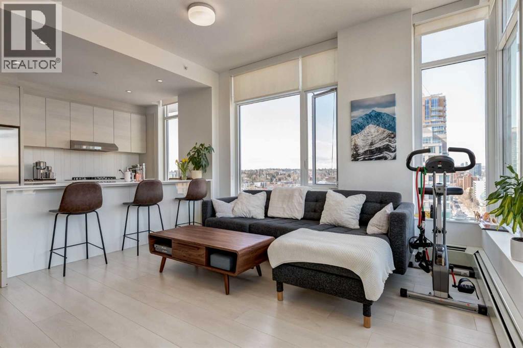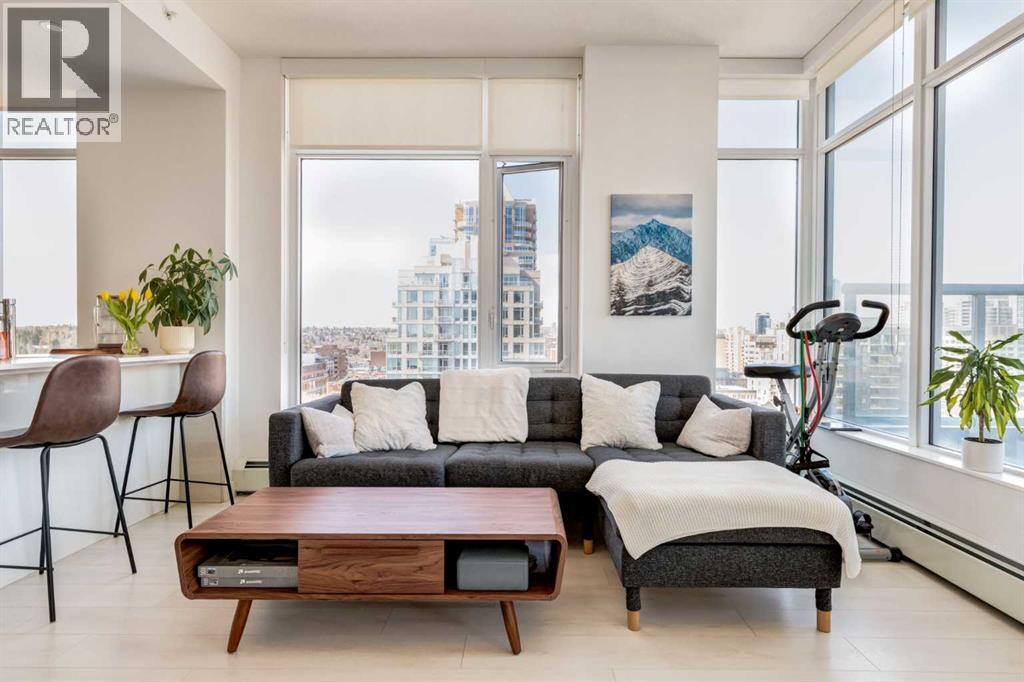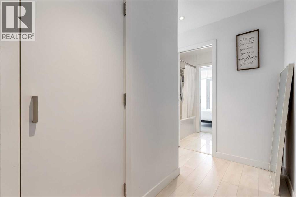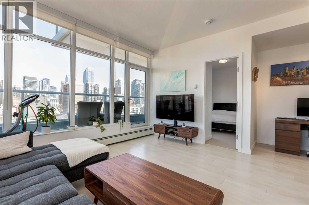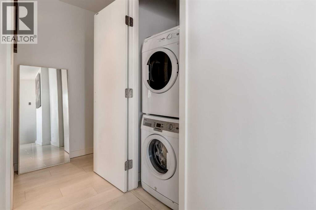 Fantastic opportunity to own a beautiful NW condo in the Smith building, located in the bustling Beltline community. Whether you are looking for a rental property or a convenient downtown condo, this home is not to be missed! This one bedroom and one bathroom unit also comes with a large private titled storage unit and underground heated titled parking on P1. The open floor plan is filled with wide plank laminate floors. Your dining room, kitchen and living room is enhanced by the full windows, bringing in sunlight and views of downtown. The kitchen features stainless steel appliances with a gas cook top and upgraded heated tile. The primary bedroom is well sized with a 4 piece ensuite bathroom with a second door access for guests. The showstopper of this unit has to be the oversized terrace balcony, with entry from the living room and bedroom, offering both city and mountain views, perfect for enjoying a morning coffee or evening glass of wine. Separate in unit laundry and oversized entry coat closet complete this home. The Smith building offers the security of concierge service, bicycle share program for quick transportation and a fun owners lounge to socialize. With all of these incredible features, don't hesitate and book a showing with your realtor today! (id:55577)