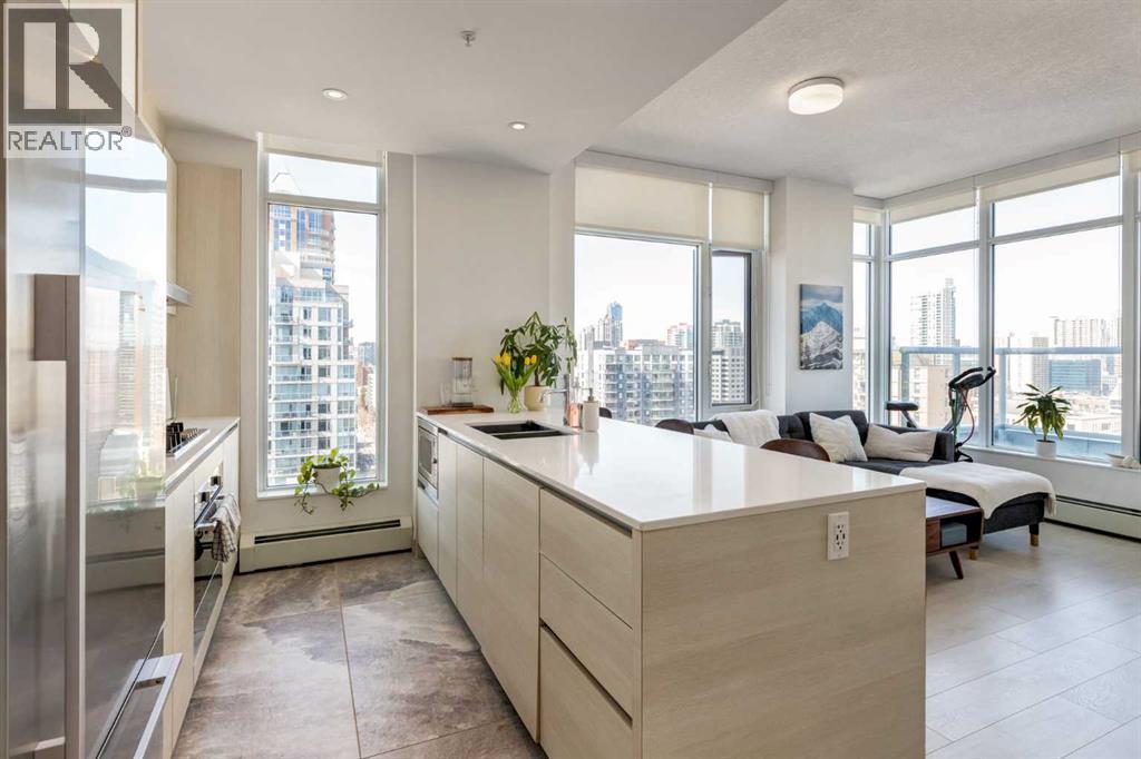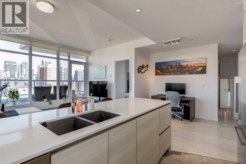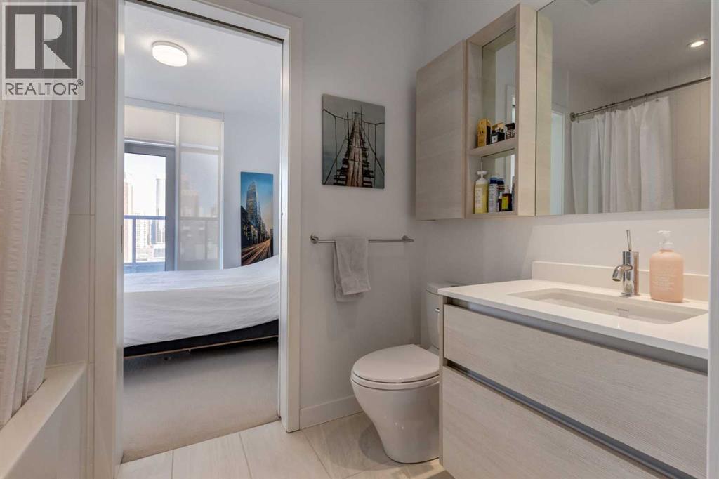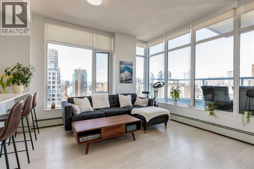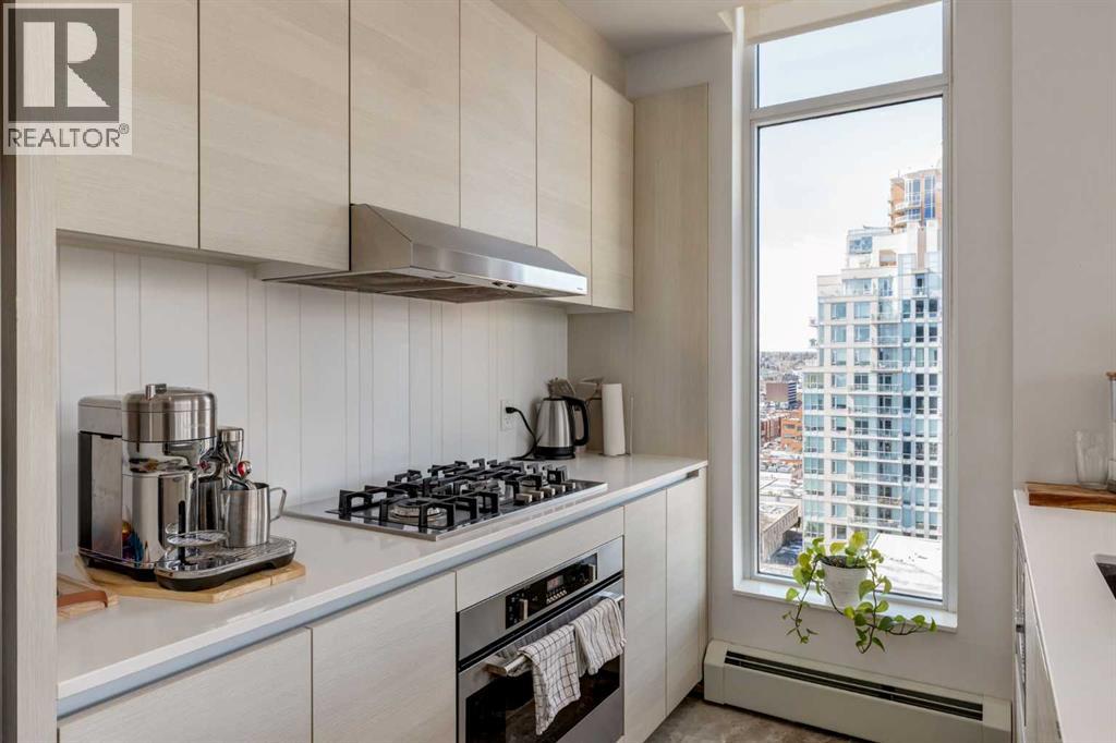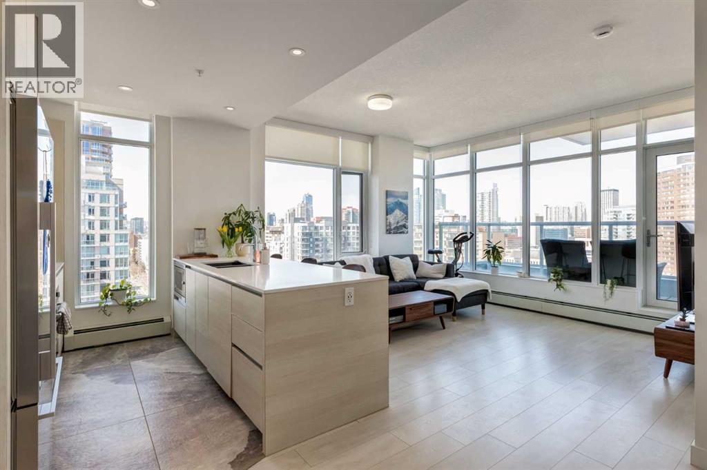 Fantastic opportunity to own a beautiful NW condo in the Smith building, located in the bustling Beltline community. Whether you are looking for a rental property or a convenient downtown condo, this home is not to be missed! This one bedroom and one bathroom unit also comes with a large private titled storage unit and underground heated titled parking on P1. The open floor plan is filled with wide plank laminate floors. Your dining room, kitchen and living room is enhanced by the full windows, bringing in sunlight and views of downtown. The kitchen features stainless steel appliances with a gas cook top and upgraded heated tile. The primary bedroom is well sized with a 4 piece ensuite bathroom with a second door access for guests. The showstopper of this unit has to be the oversized terrace balcony, with entry from the living room and bedroom, offering both city and mountain views, perfect for enjoying a morning coffee or evening glass of wine. Separate in unit laundry and oversized entry coat closet complete this home. The Smith building offers the security of concierge service, bicycle share program for quick transportation and a fun owners lounge to socialize. With all of these incredible features, don't hesitate and book a showing with your realtor today! (id:55577)