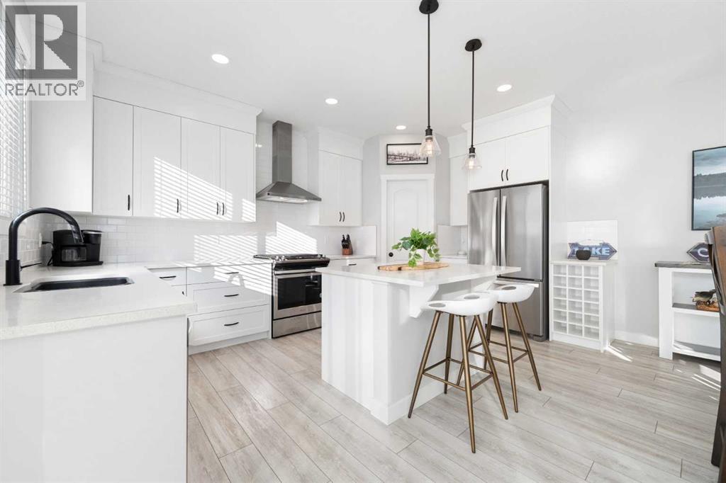 Tucked away on a quiet cul-de-sac and set on an exceptionally large pie-shaped lot, this beautifully maintained home delivers a rare combination of privacy, space, and unobstructed golf course views. This custom property offers over 2,250 square feet of thoughtfully designed living space above grade—ideal for families who value both functionality and style. From the moment you enter, the home impresses with its welcoming layout and refined finishes. Just off the front entrance is a versatile flex room that easily adapts to your lifestyle—perfect as a home office, playroom, or creative space. Moving through the foyer, the heart of the home opens up into a bright and airy open-concept design that seamlessly connects the living room, dining area, kitchen, and backyard, making it ideal for entertaining or everyday family life. The contemporary kitchen is both stylish and practical, featuring quartz countertops, an island with breakfast seating, stainless steel appliances, a gas range, and a spacious corner pantry. A charming farmhouse-style sink sits beneath a window overlooking the backyard, filling the space with natural light and offering peaceful views while you cook. From the kitchen, you can easily keep an eye on family and guests gathered by the fireplace or enjoying the expansive outdoor space. The main level is completed with a convenient powder room and a well-designed mudroom to keep daily life organized. Upstairs, you’ll find a generous bonus room flooded with light and overlooking the backyard—an ideal spot for movie nights or a kids’ retreat. The primary suite is a true sanctuary, featuring a striking custom feature wall, a spa-inspired ensuite, and a large walk-in closet. Two additional spacious bedrooms, a full four-piece bathroom, and a conveniently located upper-floor laundry room complete this level. Step outside and discover your own private backyard escape. The oversized pie lot backs directly onto the golf course and features a multi-tiered deck wi th gazebo, perfect for entertaining or unwinding. Relax in the hot tub while taking in the open views and tranquil surroundings—this outdoor space is truly something special. (id:55577)