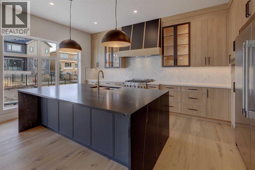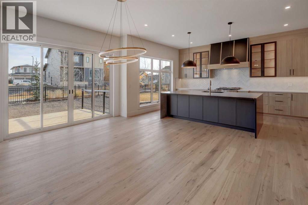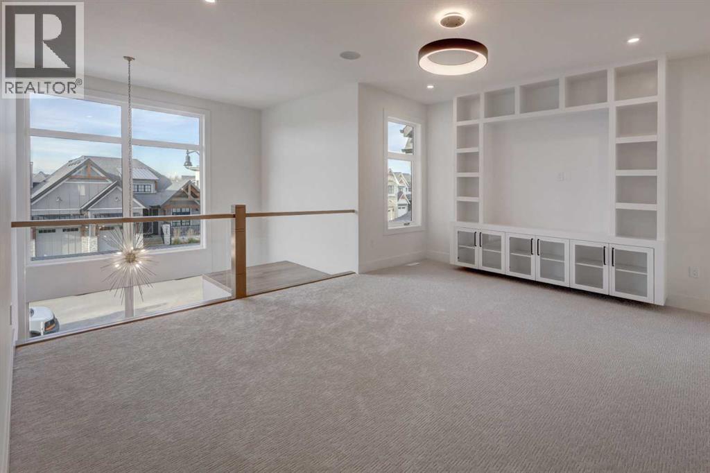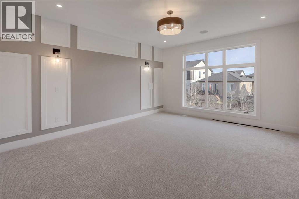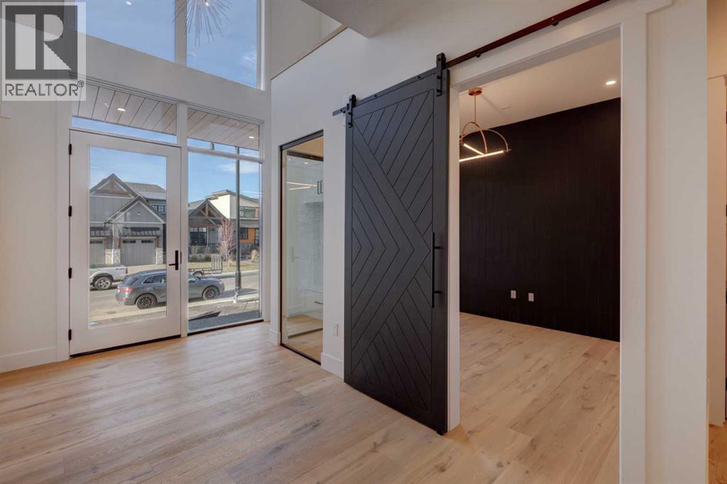Welcome to this stunning home located in the highly sought-after community of Coopers Crossing! Boasting exceptional curb appeal and backing onto beautiful green space, this home is ideally situated close to schools with convenient access to major roads.The main floor offers 10’ ceiling, engineered hardwood flooring, a spacious and inviting entryway, an office with glass features and custom finishes, and a large living room featuring a cozy gas fireplace and built-in shelving. The elegant dining area opens onto a generous sized deck with bbq gas line, perfect for entertaining. The gourmet kitchen is a chefs dream, complete with a waterfall island, built-in stainless steel appliances, quartz countertops, and a walk-through pantry. You will also find a large mudroom and a convenient powder room on this level.Upstairs, you are welcomed by a cozy loft area with custom built book shelf and a thoughtfully designed laundry room with a sink and lots of storage space. The luxurious primary suite includes a spacious walk-in closet and a spa-inspired ensuite with a custom walk-in steam shower, in floor heating, dual vanities and a freestanding tub. There are three additional generously sized bedrooms, each with custom-built closet shelving. One bedroom features its own ensuite, while a well-appointed main bathroom serves the other two.The fully finished basement adds even more living space, offering an additional bedroom, full bathroom, and a large recreation room complete with a wet bar—perfect for hosting guests.Throughout the home, you will find elegant lighting, custom woodwork and large windows that flood the space with natural light. The oversized triple tandem garage is insulated, finished to paint grade with texture ceiling and features high ceilings designed to accommodate a car lift, offering plenty of room for vehicles and storage.This exceptional home is truly a must-see! (id:55577)