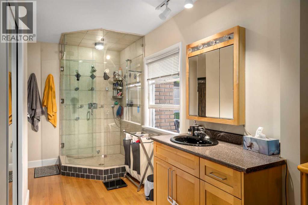 Make Your Mark in Upper Scarboro!Welcome to this charming mid-century bungalow, perfectly situated on a generous 60' x 110' lot with sweeping views of downtown Calgary. Renovated in 2000, this solid home offers timeless character with modern updates, featuring 2 spacious bedrooms on the main level both with ensuite bathrooms, the primary features a beautiful steam shower with multiple Grohe heads, and an additional bedroom in the fully developed basement. The beautiful maple kitchen has plenty of storage and countertops with downtown views from the kitchen and dining room windows.Set on an extremely quiet street, this property boasts a large, private backyard—an ideal retreat for relaxing or entertaining. The prime location makes it equally attractive as a redevelopment opportunity, a long-term investment property, or a comfortable home to move right in and enjoy.With its enviable setting just minutes to the core, you’ll love the quick access to downtown, parks, schools, shopping, and the welcoming community feel that Upper Scarboro is known for. This is a rare chance to secure a view lot in one of Calgary’s most sought-after inner-city neighbourhoods. Enjoy one of the best inner-city community associations and amenities including tennis, basketball and volleyball courts in the summer and skating and hockey rinks in the winter complete with a community fire pit and gathering hall. Are you a dog lover? There are 2 off leash dog parks within walking distance. Upgrades include: upgraded electric services and wiring to 100 Amp service and grounded plugs, Mid/High Efficient Gas with much new ductwork through home, wired for Cad 5 and Coax to all rooms, beautiful site sand and finished hardwood throughout main floor and newer roof shingles. Don't miss your chance to capitalize on this rare offering. (id:55577)