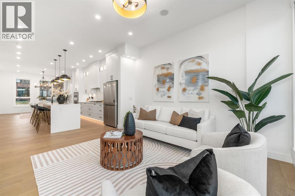 Welcome to Refined Living in Rosscarrock ! Crafted for those who appreciate fine design and smart investment.Luxury, comfort, and convenience come together beautifully at 1444 43 Street SW, an exquisite modern infill designed for today’s lifestyle. Perfectly positioned in the sought-after community of Rosscarrock, this home is within walking distance to the Westbrook C-Train Station, Westbrook Mall, Walmart, Starbucks, and local restaurants — offering true inner-city living without compromise.Step inside and be greeted by 10-foot ceilings, an open and airy floor plan, and engineered hardwood flooring on the main level. The chef-inspired kitchen is a showstopper, featuring built-in premium appliances, a massive extended island with a dual waterfall quartz countertop, full-height cabinetry, and a sleek quartz backsplash. Designed to impress, this kitchen perfectly balances luxury and everyday functionality.The living area exudes elegance with its feature gas fireplace, glass-railed staircase, and abundance of natural light, creating a warm and welcoming atmosphere ideal for gatherings or quiet evenings at home.Upstairs, the primary suite is a serene retreat — highlighted by a vaulted ceiling, custom-designed closet, and a luxurious five-piece ensuite with a soaker tub, double vanity, glass-enclosed shower, and in-floor heating for a spa-like experience. Two additional bedrooms, a full bath, and a laundry room complete the upper level, designed with both comfort and practicality in mind.A standout feature of this property is the fully LEGAL two-bedroom basement SUITE with its own private side entrance, ideal for generating rental income or hosting extended family. The suite includes a full kitchen, private laundry , and sound-reduction construction for added privacy.Every element of 1444 43 St SW has been crafted with precision and purpose, offering an elevated lifestyle in one of Calgary’s most desirable inner-city communities. (id:55577)