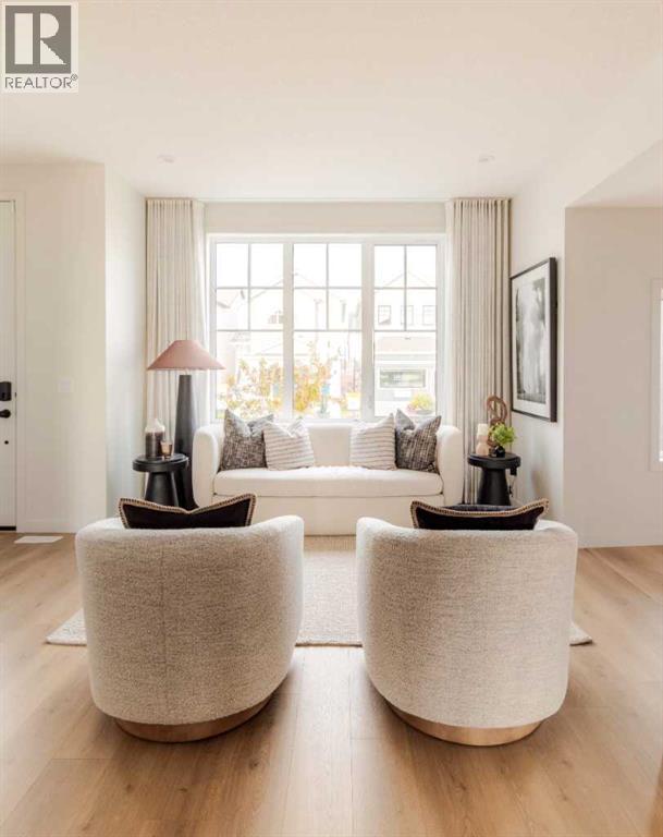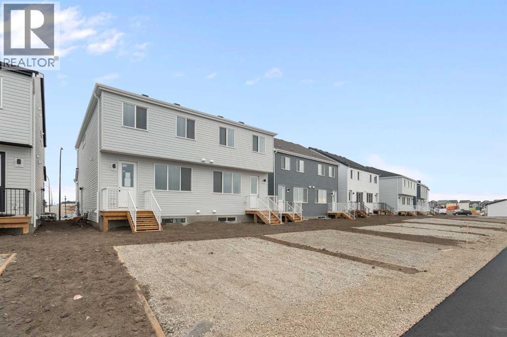 **Open House - Saturday November 15, 1:00pM-4;00PM** Welcome to the Aurora—a stunning paired home that blends modern farmhouse style with thoughtful functionality, located in the heart of Rangeview—Calgary’s award-winning Community of the Year. This is a home designed for real life, offering a smart layout, timeless charm, and access to one of the most vibrant, forward-thinking neighbourhoods in the city. From the street, the modern farmhouse exterior stands out with its clean lines, bold contrast, and character-rich curb appeal. Inside, a bright, open-concept layout welcomes you in, filled with natural light and layered with design details that make every space feel intentional and inviting. At the center of the main floor is the well-appointed kitchen, flanked by the living and dining areas to create a seamless, functional flow. Whether you're entertaining guests or cooking up a quiet family dinner, this kitchen delivers with quality cabinetry, ample counter space, and a layout designed for connection. Just off the main living area, a smart pocket office offers a quiet, tucked-away workspace—ideal for working from home, managing schedules, or even creative pursuits. Toward the rear, a mudroom with built-in storage leads out to your private backyard, offering a great space to relax, garden, or entertain. You also have the flexibility to develop a future garage or outdoor setup to fit your lifestyle. One of the most versatile features of the Aurora is the side entrance, providing excellent potential for a future basement suite (A secondary suite would be subject to approval and permitting by the city/municipality) —ideal for extended family, rental income, or additional space to grow into. Upstairs, a bonus room offers the perfect second living area, creating separation and flexibility for family life. The primary bedroom is a cozy retreat with a private ensuite, while two more well-sized bedrooms, a full bath, and upper laundry rough-in complete the upper level. Th roughout the home, triple-pane windows and energy-conscious design help improve comfort and efficiency. But why Rangeview? Rangeview isn't just a neighbourhood—it’s a movement. Recently named Calgary’s Community of the Year, Rangeview is a one-of-a-kind agri-urban community inspired by food, connection, and sustainable living. With community gardens, orchards, edible landscaping, and seasonal events, this is a place where growing, sharing, and connecting are part of everyday life. Walkable streetscapes, welcoming green spaces, and architecture with real character make Rangeview feel like home the moment you arrive. Whether you’re picking fresh herbs from the communal garden, attending a local workshop, or simply chatting with neighbours on your front porch, life in Rangeview is rooted in a slower, more intentional rhythm. The Aurora in Rangeview isn’t just a home—it’s a lifestyle. (id:55577)