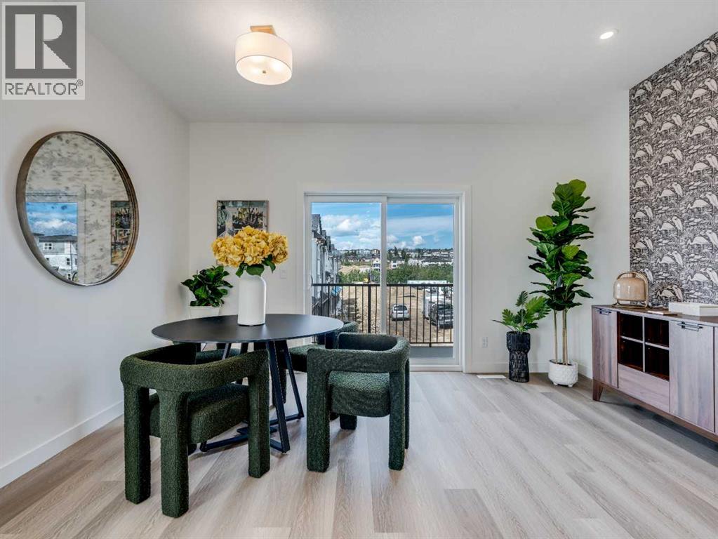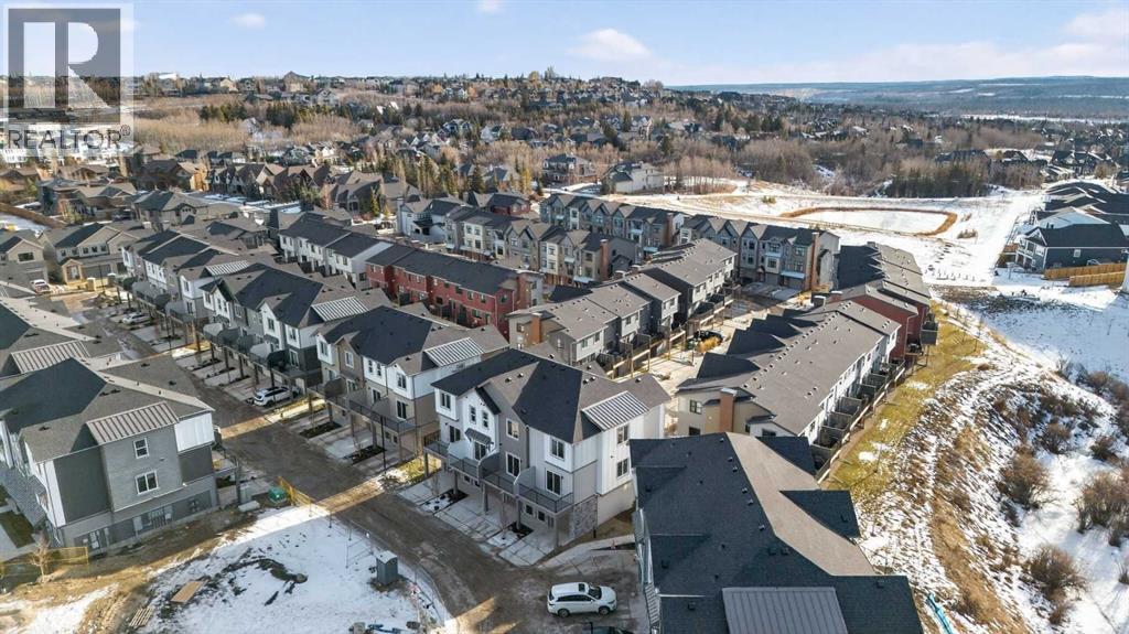 **Immediate Occupancy** Discover the charm and convenience of our Juniper Townhomes — a collection of stylish heritage-style row townhouses near the heart of our beautiful Environment Reserve Park!This Heritage model B (Corner unit) offers the perfect blend of comfortand function, ideal for families and professionals alike. With 3 bedrooms, 2.5 bathrooms, and a versatile main-floor den, this spacious home isdesigned for modern living. Upon entry, you'll find a bright, ground-floor den/home office featuring a large window, closet, and a convenient powderroom. Enjoy a professionally landscaped front yard, a single attached garage, and additional driveway parking. The open-concept main floor boasts 9'ceilings and is filled with natural light, creating a warm and inviting space for everyday living or entertaining. The modern kitchen features quartzcountertops, a breakfast bar, professional stainless steel appliances, and a chimney-style hood fan. Sliding doors open to a full-sized balcony — idealfor relaxing or dining outdoors. Upstairs, you'll find two spacious bedrooms, including a primary suite with a double access closet and a privateensuite featuring a stand-up shower and sliding glass door. A second full 3-piece bathroom serves the additional bedroom, which can easily double asa home office. The upper level also includes a conveniently located washer and dryer, a linen closet, and thoughtful storage throughout. This home islocated in vibrant Springbank Hill and offers easy access to Aspen Landing, Rundle College, Griffith Woods, Ambrose University, restaurants, andsenior care facilities. * The GST is included in the price. * All Interior Pictures from Show Home #2227-81St SW. (id:55577)