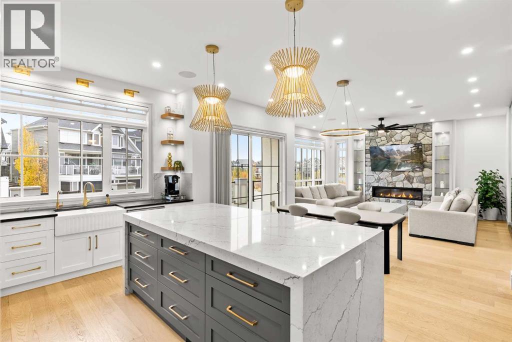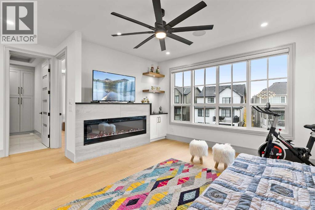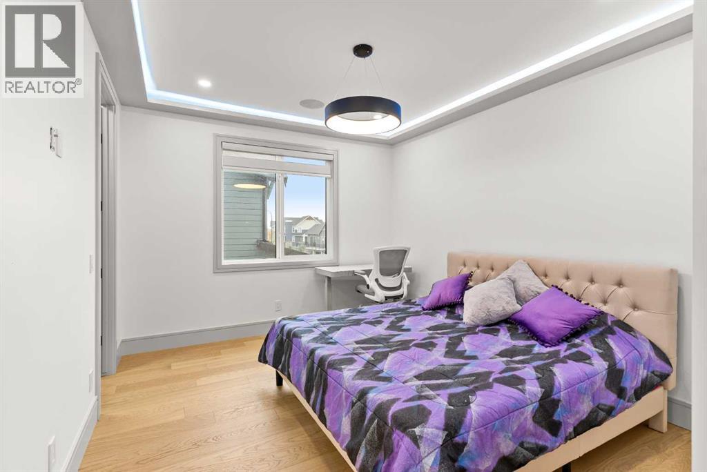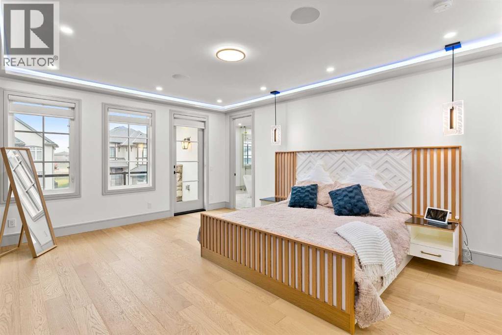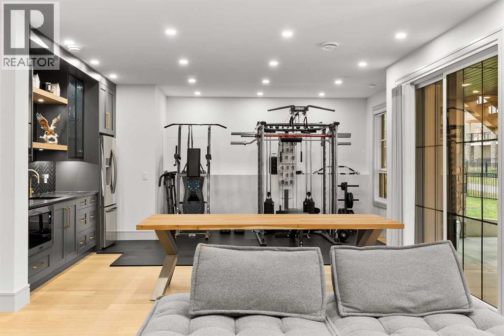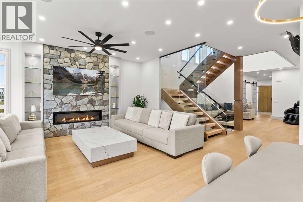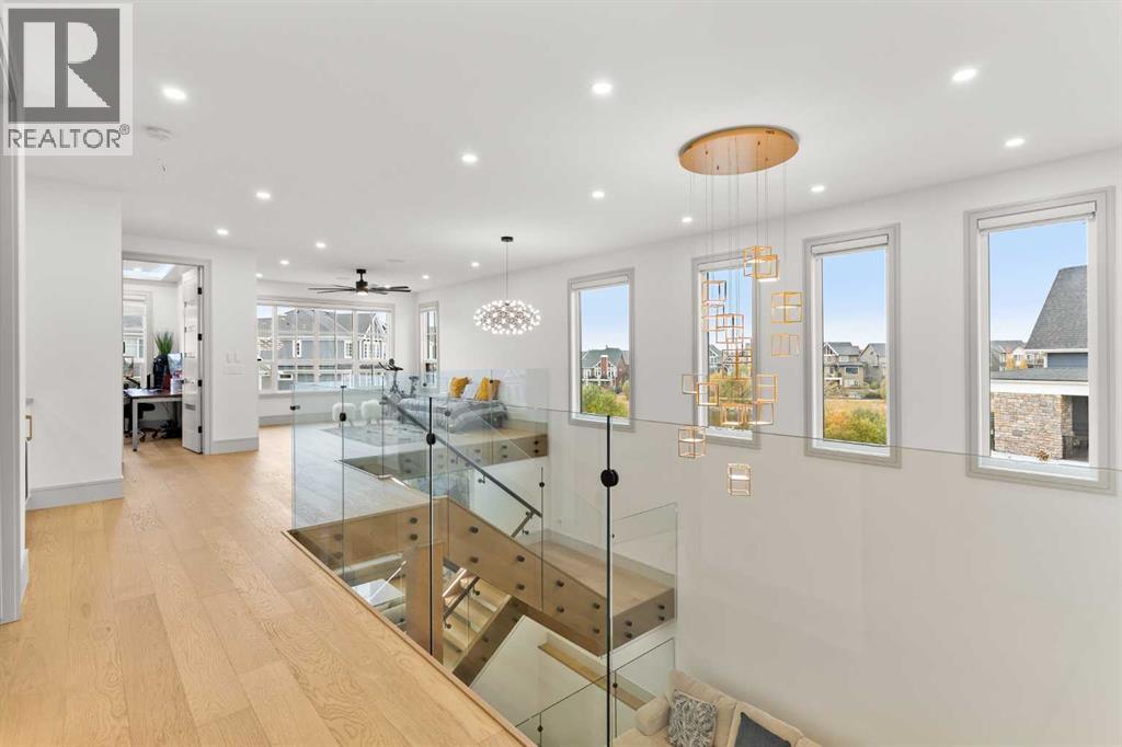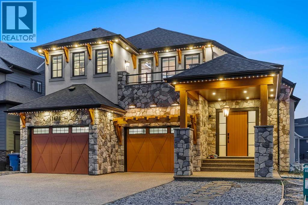Welcome to 1473 Coopers Landing SW, an extraordinary residence backing onto a serene pond and pathway. This architectural gem boasts a total of impressive 5,528 square feet of thoughtfully designed living space, exemplifying the height of luxury. As you enter, you’re greeted by grand 10' ceilings on the main floor, featuring a sleek, modern flat paint finish. The main level flows seamlessly, including a Living Room, Formal Dining Room, Den/Office, Family Room, Nook, Main Kitchen, Spice Kitchen or Butler’s Kitchen, and a Full Bath with a custom shower. A large low maintenance deck with plexiglass railings and stairs leading down to the backyard off the kitchen nook overlooks the numerous pathways and greenery that is a beautiful feature in Coopers Crossing. Daily life is made effortless with a convenient Mud Room and direct access to the garage. Ascending to the second floor on a one of a kind set of stairs, you’ll find 9' ceilings and a versatile bonus room, ideal for a media space or home office. Four spacious bedrooms await, each with its own bathroom and walk-in closet. The luxurious custom ceiling perimeter with RGB LED lighting adds a touch of elegance. Don’t overlook the intriguing Unfinished Hidden Room, a perfect canvas for your creative vision.The basement is an entertainer's dream, featuring a Rec Room, Nook, Gym, Wet Bar, and two additional bedrooms with their own full baths. A second laundry area adds to the convenience, ensuring that every need is met.Craftsmanship is unparalleled throughout, highlighted by upgraded plumbing fixtures from MOEN ALIGN in a beautiful brushed gold finish. A robust boiler system provides continuous hot water, complemented by in-floor heating in the basement(2 zones) and a hot water circulation pump for instant access at every faucet.The oversized triple tandem garage is thoughtfully roughed in for a gas heater and car charger, with hot and cold water facilities for added convenience. Outdoor elegance shines through with custom timber sourced from Revelstoke, BC, featuring a stunning timber-framed front porch and PARGOLA above the garage. The beautifully landscaped grounds include an exposed aggregate driveway, porch patio, and entry stairs.Technology is seamlessly integrated, featuring a wired security system, cameras, LCD screens, Eufy Smart Lock, dual-camera doorbell, and a speaker system throughout the home, ensuring security and entertainment are paramount.Experience warmth and sophistication with the 120” Electric Fireplace in the basement, the contemporary 60” Linear Gas Fireplace on the main floor, and the serene 72” Electric Fireplace in the bonus room. Every detail of this home reflects a commitment to comfort and luxury.Don’t miss the chance to experience the epitome of luxury living in Coopers Crossing in Airdrie. Too many upgrades to list!!!. Schedule your private viewing today—this isn’t just a house; it’s an extraordinary lifestyle. (id:55577)
