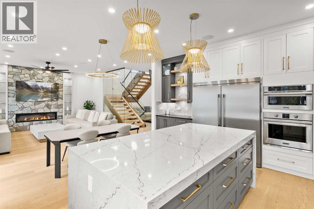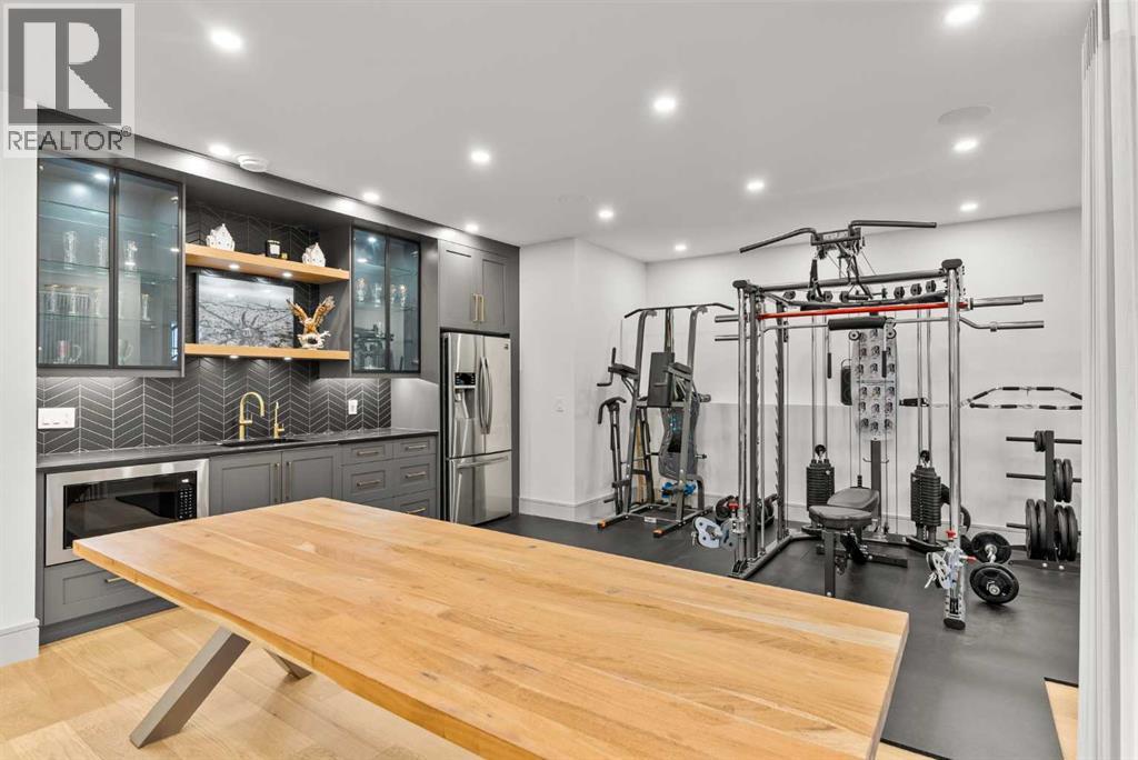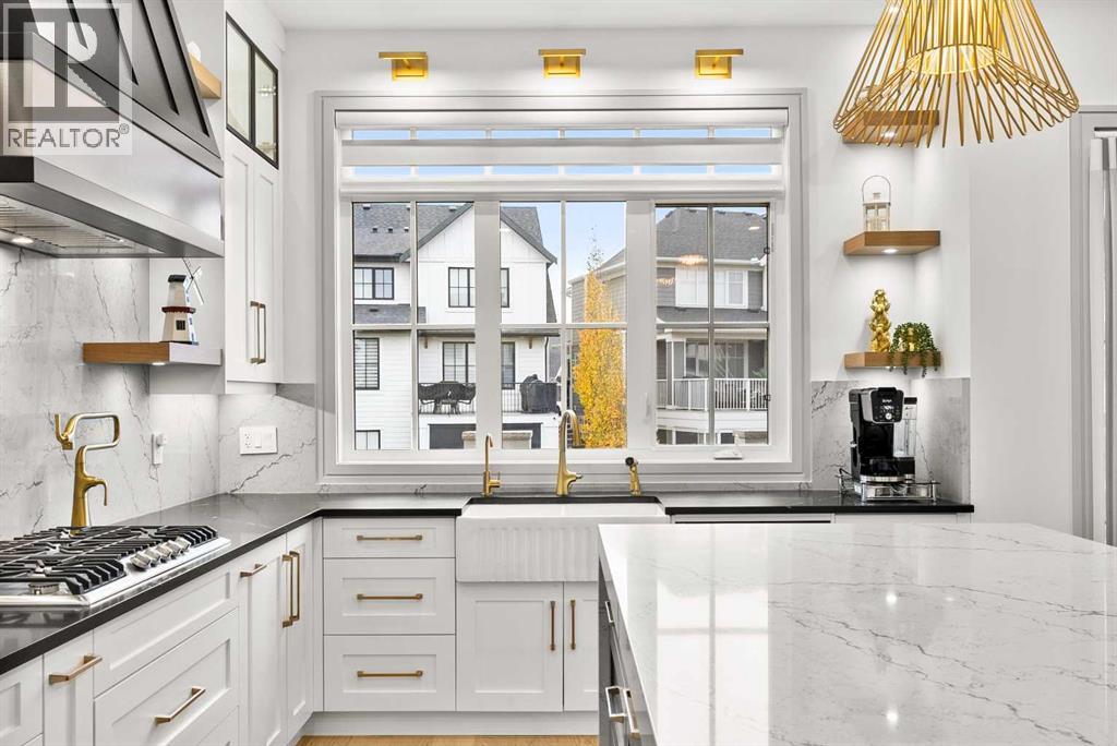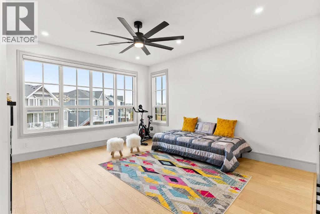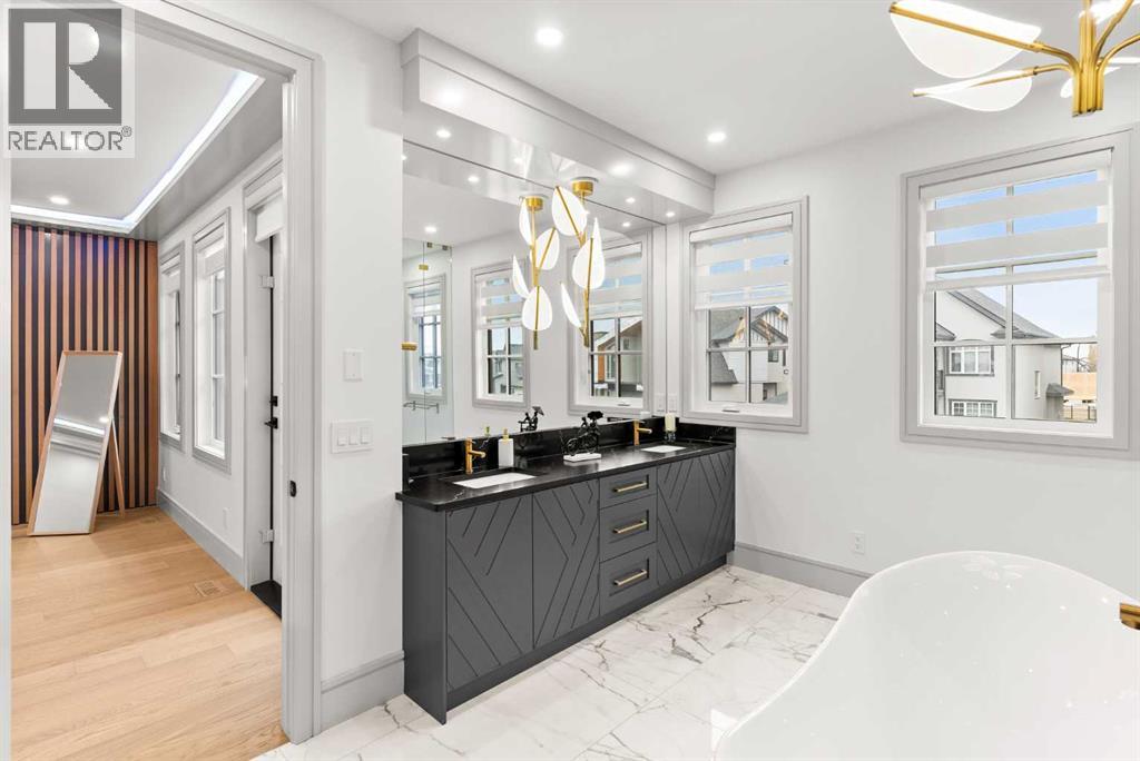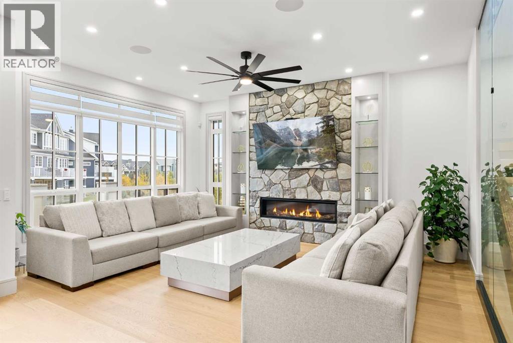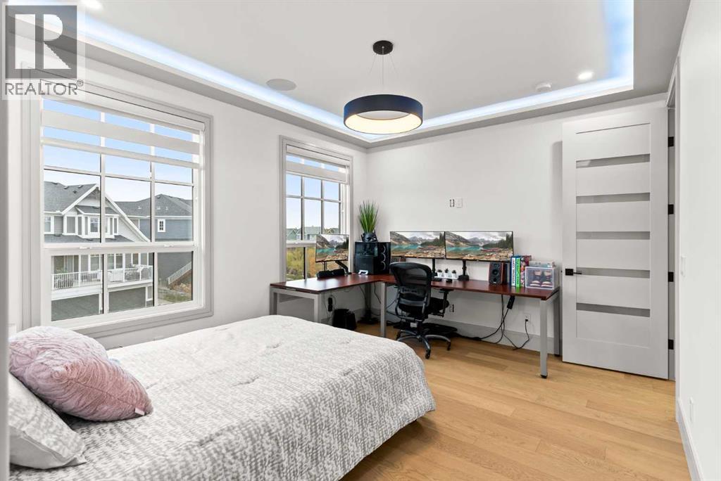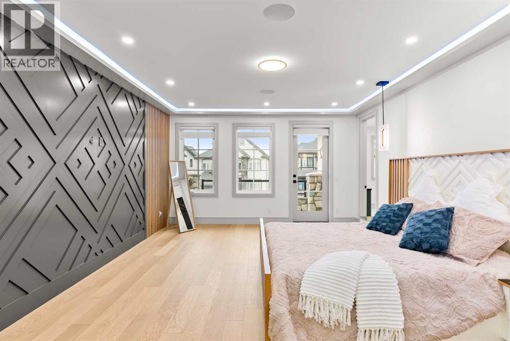 Welcome to 1473 Coopers Landing SW, an extraordinary residence backing onto a serene pond and pathway. This architectural gem boasts a total of impressive 5,528 square feet of thoughtfully designed living space, exemplifying the height of luxury. As you enter, you’re greeted by grand 10' ceilings on the main floor, featuring a sleek, modern flat paint finish. The main level flows seamlessly, including a Living Room, Formal Dining Room, Den/Office, Family Room, Nook, Main Kitchen, Spice Kitchen or Butler’s Kitchen, and a Full Bath with a custom shower. A large low maintenance deck with plexiglass railings and stairs leading down to the backyard off the kitchen nook overlooks the numerous pathways and greenery that is a beautiful feature in Coopers Crossing. Daily life is made effortless with a convenient Mud Room and direct access to the garage. Ascending to the second floor on a one of a kind set of stairs, you’ll find 9' ceilings and a versatile bonus room, ideal for a media space or home office. Four spacious bedrooms await, each with its own bathroom and walk-in closet. The luxurious custom ceiling perimeter with RGB LED lighting adds a touch of elegance. Don’t overlook the intriguing Unfinished Hidden Room, a perfect canvas for your creative vision.The basement is an entertainer's dream, featuring a Rec Room, Nook, Gym, Wet Bar, and two additional bedrooms with their own full baths. A second laundry area adds to the convenience, ensuring that every need is met.Craftsmanship is unparalleled throughout, highlighted by upgraded plumbing fixtures from MOEN ALIGN in a beautiful brushed gold finish. A robust boiler system provides continuous hot water, complemented by in-floor heating in the basement(2 zones) and a hot water circulation pump for instant access at every faucet.The oversized triple tandem garage is thoughtfully roughed in for a gas heater and car charger, with hot and cold water facilities for added convenience. Outdoor elegance shines through with custom timber sourced from Revelstoke, BC, featuring a stunning timber-framed front porch and PARGOLA above the garage. The beautifully landscaped grounds include an exposed aggregate driveway, porch patio, and entry stairs.Technology is seamlessly integrated, featuring a wired security system, cameras, LCD screens, Eufy Smart Lock, dual-camera doorbell, and a speaker system throughout the home, ensuring security and entertainment are paramount.Experience warmth and sophistication with the 120” Electric Fireplace in the basement, the contemporary 60” Linear Gas Fireplace on the main floor, and the serene 72” Electric Fireplace in the bonus room. Every detail of this home reflects a commitment to comfort and luxury.Don’t miss the chance to experience the epitome of luxury living in Coopers Crossing in Airdrie. Too many upgrades to list!!!. Schedule your private viewing today—this isn’t just a house; it’s an extraordinary lifestyle. (id:55577)