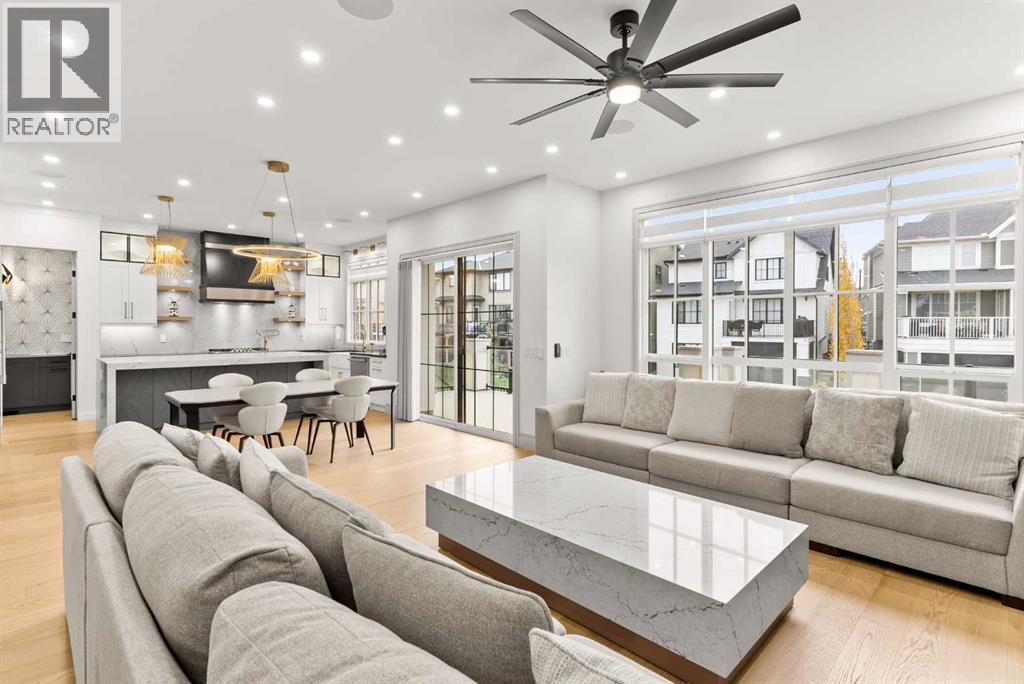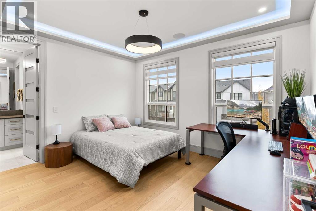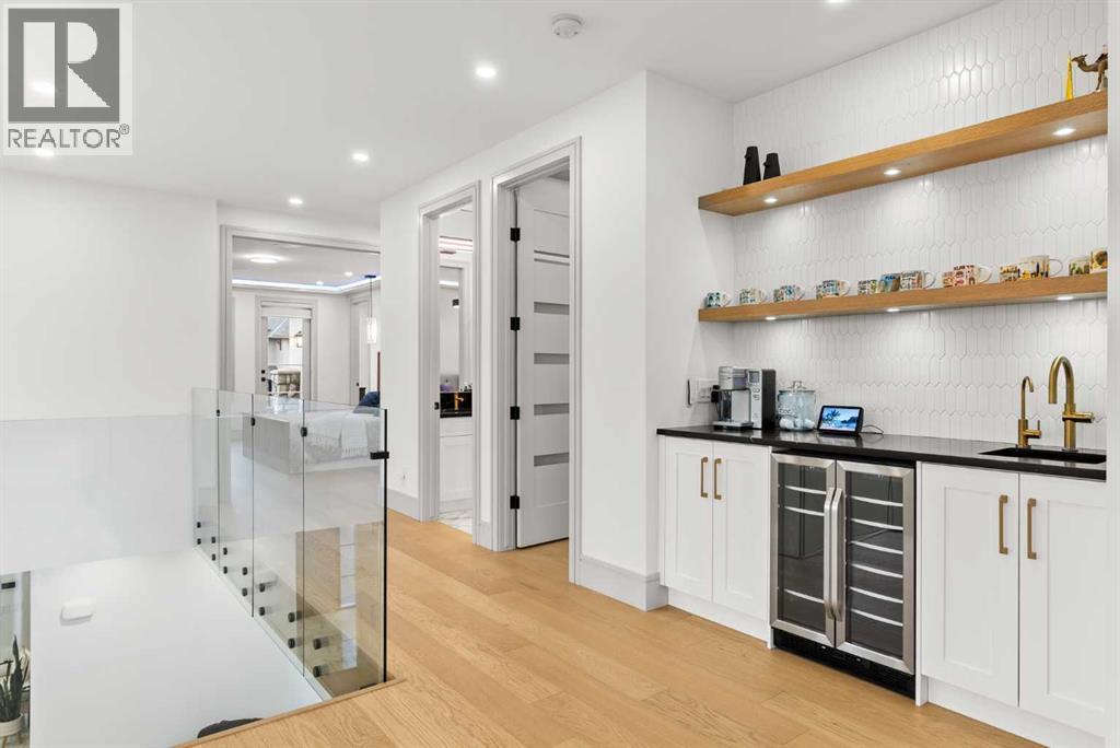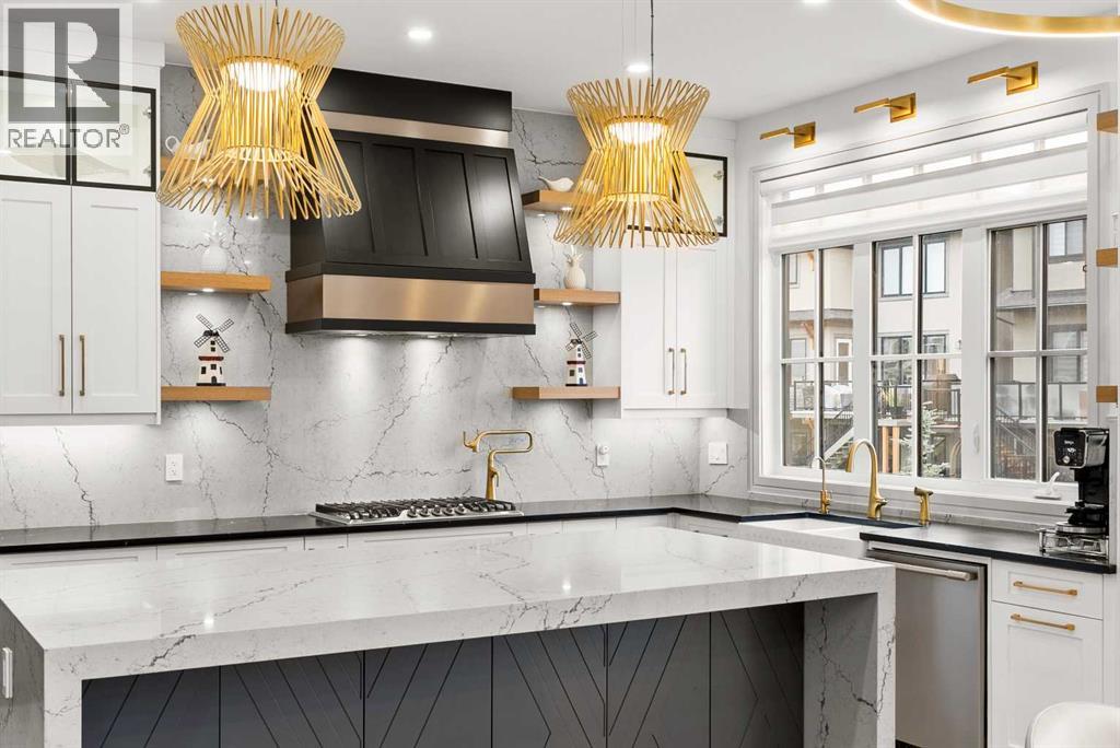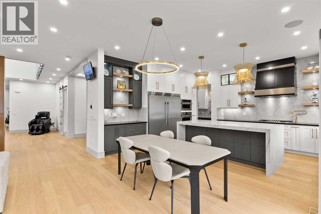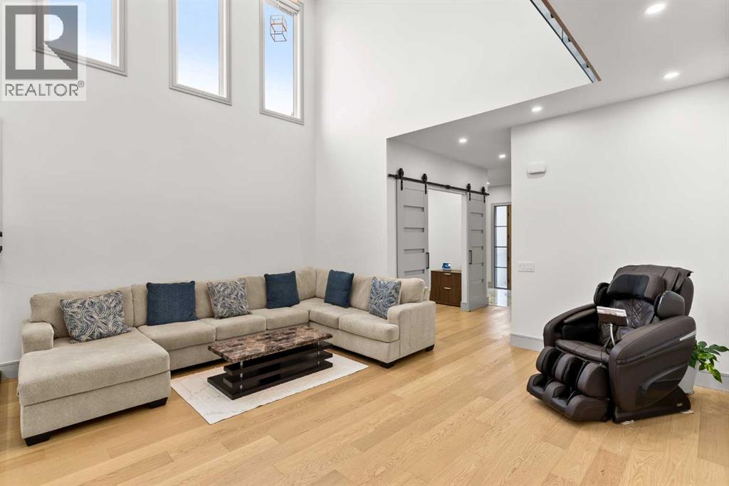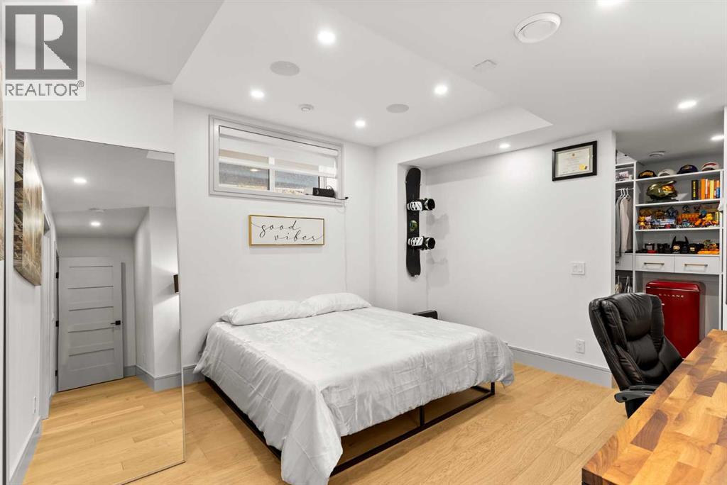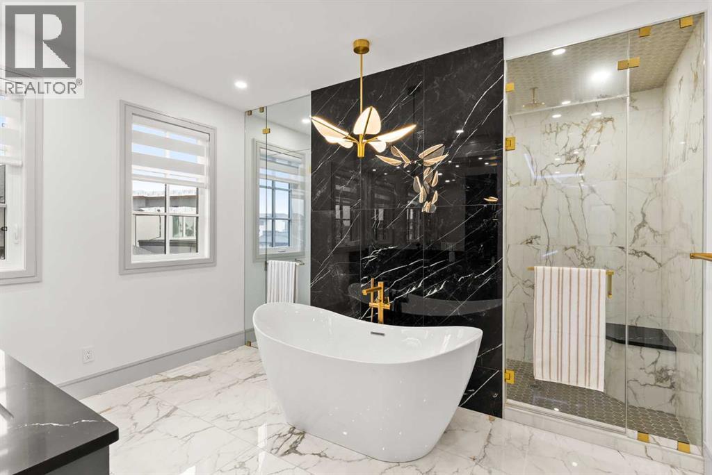 Welcome to 1473 Coopers Landing SW, an extraordinary residence backing onto a serene pond and pathway. This architectural gem boasts a total of impressive 5,528 square feet of thoughtfully designed living space, exemplifying the height of luxury. As you enter, you’re greeted by grand 10' ceilings on the main floor, featuring a sleek, modern flat paint finish. The main level flows seamlessly, including a Living Room, Formal Dining Room, Den/Office, Family Room, Nook, Main Kitchen, Spice Kitchen or Butler’s Kitchen, and a Full Bath with a custom shower. A large low maintenance deck with plexiglass railings and stairs leading down to the backyard off the kitchen nook overlooks the numerous pathways and greenery that is a beautiful feature in Coopers Crossing. Daily life is made effortless with a convenient Mud Room and direct access to the garage. Ascending to the second floor on a one of a kind set of stairs, you’ll find 9' ceilings and a versatile bonus room, ideal for a media space or home office. Four spacious bedrooms await, each with its own bathroom and walk-in closet. The luxurious custom ceiling perimeter with RGB LED lighting adds a touch of elegance. Don’t overlook the intriguing Unfinished Hidden Room, a perfect canvas for your creative vision.The basement is an entertainer's dream, featuring a Rec Room, Nook, Gym, Wet Bar, and two additional bedrooms with their own full baths. A second laundry area adds to the convenience, ensuring that every need is met.Craftsmanship is unparalleled throughout, highlighted by upgraded plumbing fixtures from MOEN ALIGN in a beautiful brushed gold finish. A robust boiler system provides continuous hot water, complemented by in-floor heating in the basement(2 zones) and a hot water circulation pump for instant access at every faucet.The oversized triple tandem garage is thoughtfully roughed in for a gas heater and car charger, with hot and cold water facilities for added convenience. Outdoor elegance shines through with custom timber sourced from Revelstoke, BC, featuring a stunning timber-framed front porch and PARGOLA above the garage. The beautifully landscaped grounds include an exposed aggregate driveway, porch patio, and entry stairs.Technology is seamlessly integrated, featuring a wired security system, cameras, LCD screens, Eufy Smart Lock, dual-camera doorbell, and a speaker system throughout the home, ensuring security and entertainment are paramount.Experience warmth and sophistication with the 120” Electric Fireplace in the basement, the contemporary 60” Linear Gas Fireplace on the main floor, and the serene 72” Electric Fireplace in the bonus room. Every detail of this home reflects a commitment to comfort and luxury.Don’t miss the chance to experience the epitome of luxury living in Coopers Crossing in Airdrie. Too many upgrades to list!!!. Schedule your private viewing today—this isn’t just a house; it’s an extraordinary lifestyle. (id:55577)