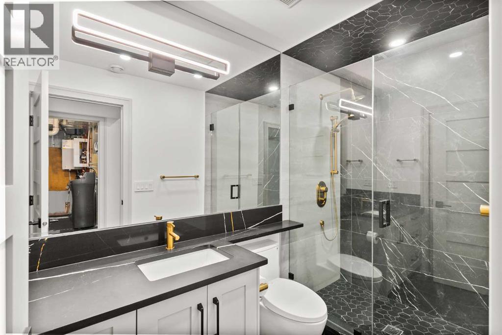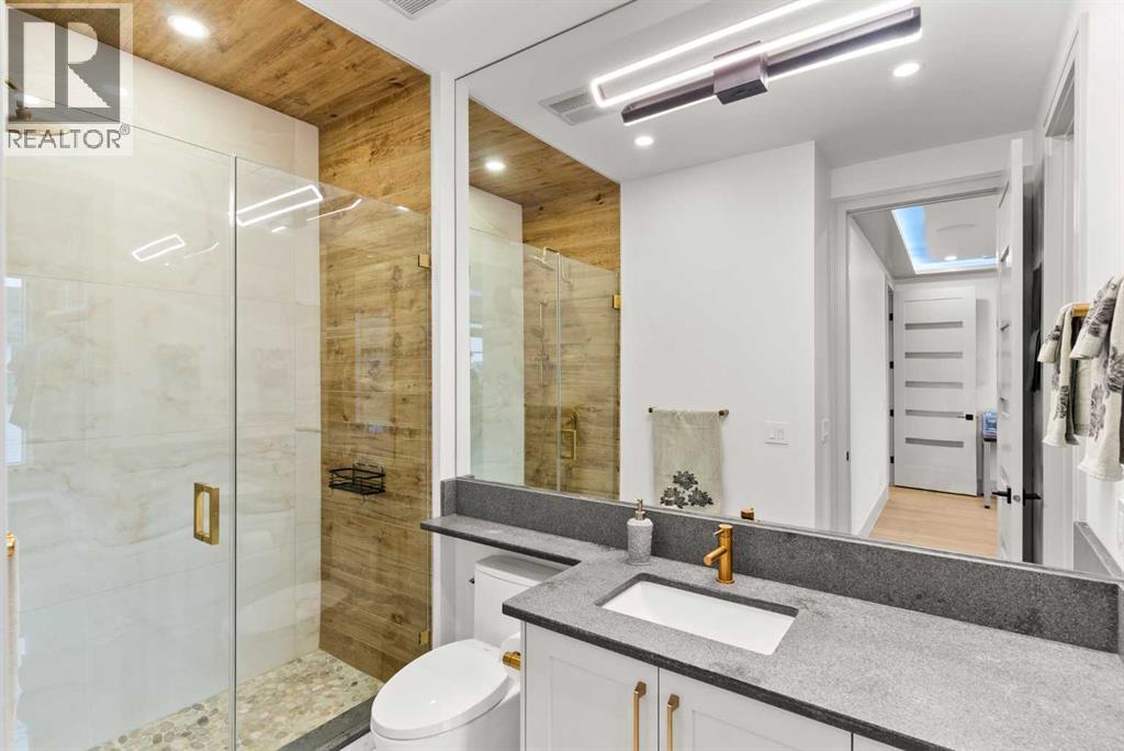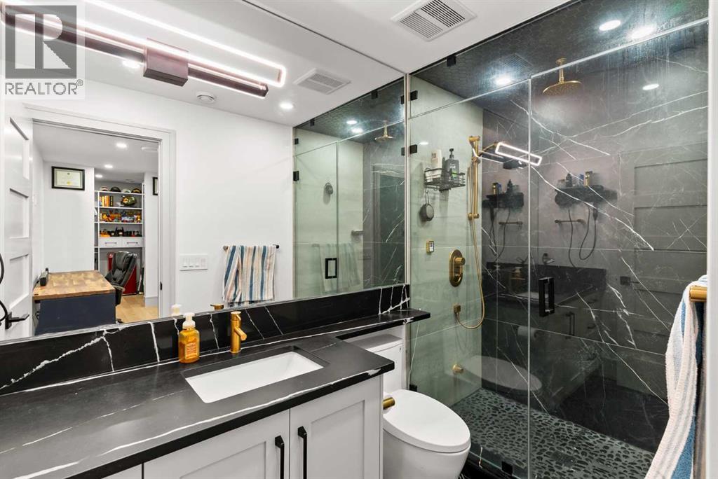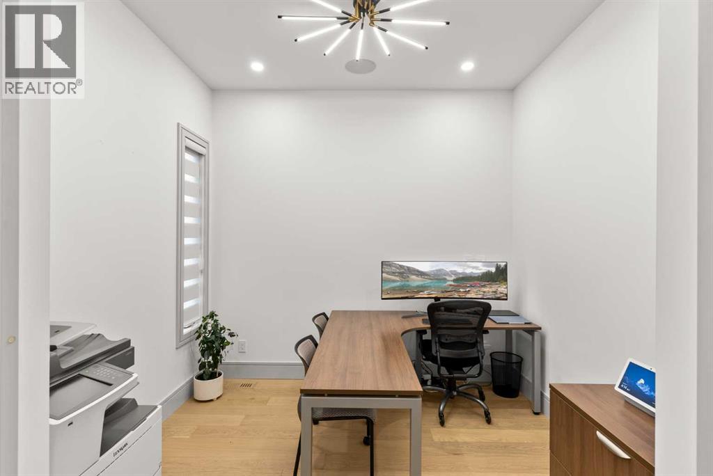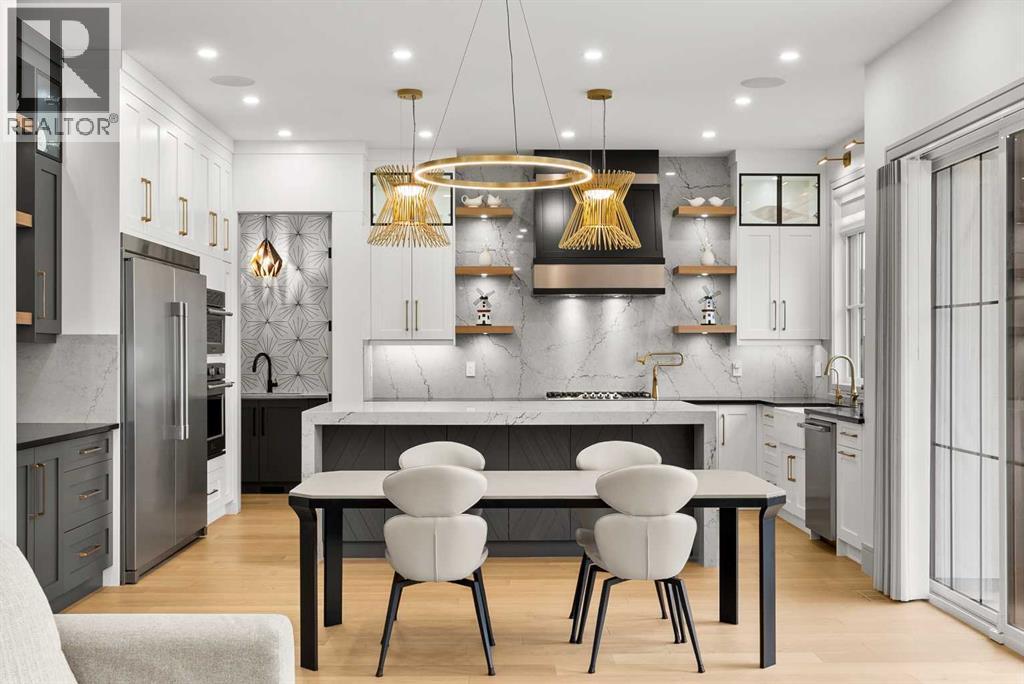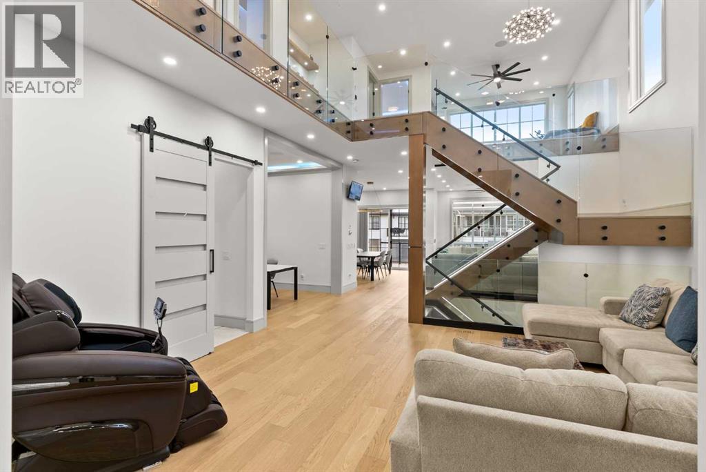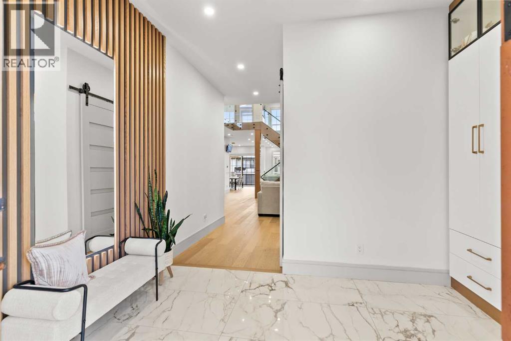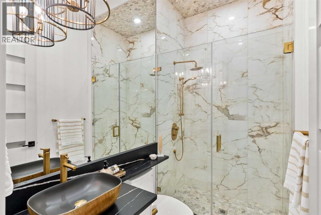 Welcome to 1473 Coopers Landing SW, an extraordinary residence backing onto a serene pond and pathway. This architectural gem boasts a total of impressive 5,528 square feet of thoughtfully designed living space, exemplifying the height of luxury. As you enter, you’re greeted by grand 10' ceilings on the main floor, featuring a sleek, modern flat paint finish. The main level flows seamlessly, including a Living Room, Formal Dining Room, Den/Office, Family Room, Nook, Main Kitchen, Spice Kitchen or Butler’s Kitchen, and a Full Bath with a custom shower. A large low maintenance deck with plexiglass railings and stairs leading down to the backyard off the kitchen nook overlooks the numerous pathways and greenery that is a beautiful feature in Coopers Crossing. Daily life is made effortless with a convenient Mud Room and direct access to the garage. Ascending to the second floor on a one of a kind set of stairs, you’ll find 9' ceilings and a versatile bonus room, ideal for a media space or home office. Four spacious bedrooms await, each with its own bathroom and walk-in closet. The luxurious custom ceiling perimeter with RGB LED lighting adds a touch of elegance. Don’t overlook the intriguing Unfinished Hidden Room, a perfect canvas for your creative vision.The basement is an entertainer's dream, featuring a Rec Room, Nook, Gym, Wet Bar, and two additional bedrooms with their own full baths. A second laundry area adds to the convenience, ensuring that every need is met.Craftsmanship is unparalleled throughout, highlighted by upgraded plumbing fixtures from MOEN ALIGN in a beautiful brushed gold finish. A robust boiler system provides continuous hot water, complemented by in-floor heating in the basement(2 zones) and a hot water circulation pump for instant access at every faucet.The oversized triple tandem garage is thoughtfully roughed in for a gas heater and car charger, with hot and cold water facilities for added convenience. Outdoor elegance shines through with custom timber sourced from Revelstoke, BC, featuring a stunning timber-framed front porch and PARGOLA above the garage. The beautifully landscaped grounds include an exposed aggregate driveway, porch patio, and entry stairs.Technology is seamlessly integrated, featuring a wired security system, cameras, LCD screens, Eufy Smart Lock, dual-camera doorbell, and a speaker system throughout the home, ensuring security and entertainment are paramount.Experience warmth and sophistication with the 120” Electric Fireplace in the basement, the contemporary 60” Linear Gas Fireplace on the main floor, and the serene 72” Electric Fireplace in the bonus room. Every detail of this home reflects a commitment to comfort and luxury.Don’t miss the chance to experience the epitome of luxury living in Coopers Crossing in Airdrie. Too many upgrades to list!!!. Schedule your private viewing today—this isn’t just a house; it’s an extraordinary lifestyle. (id:55577)