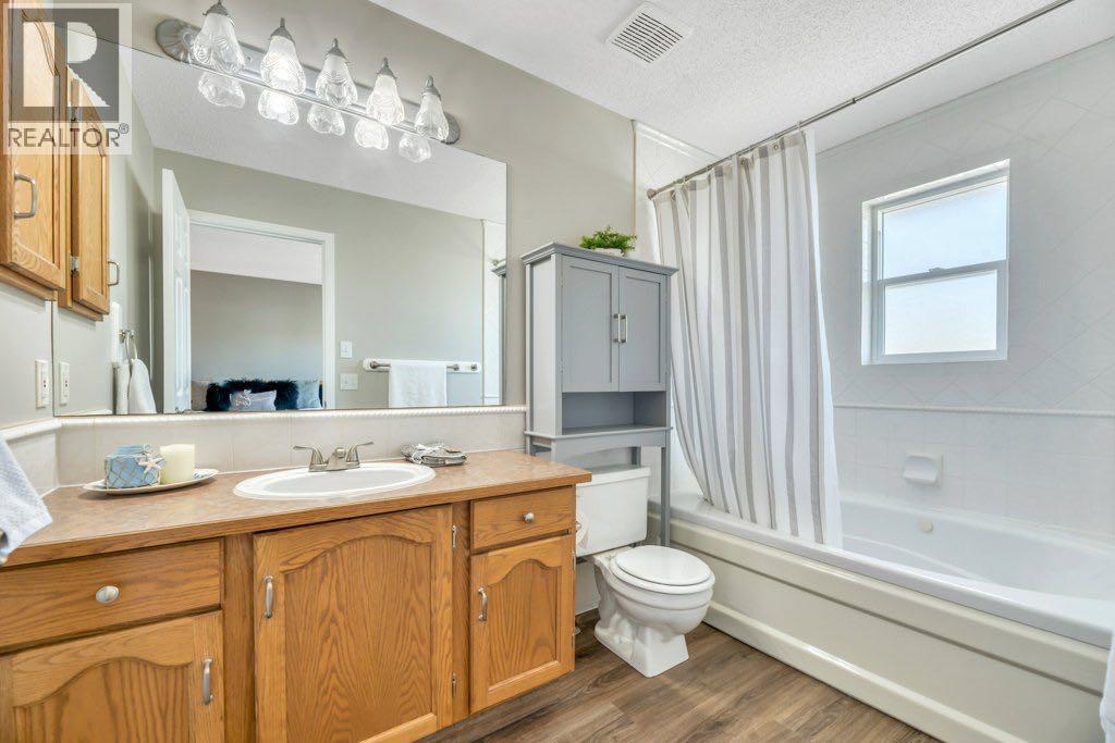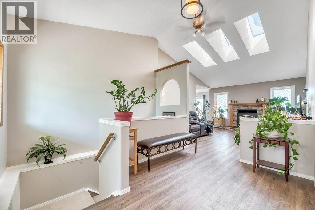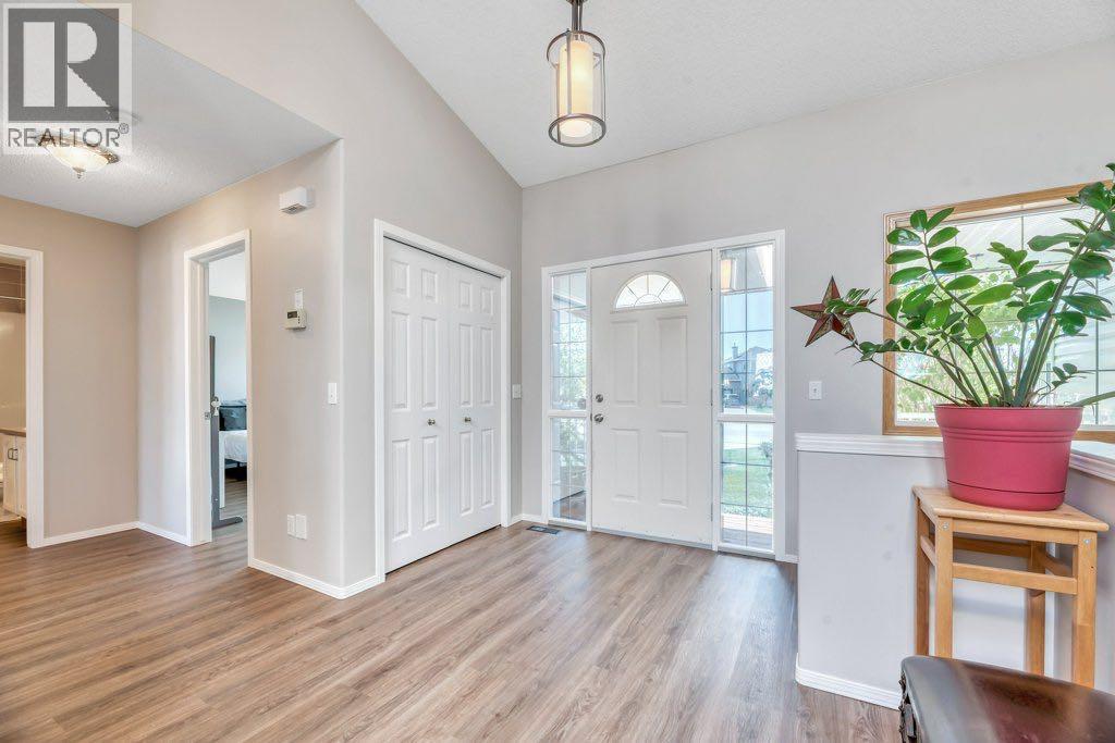 Homes this special don’t hit the market very often. This fully finished walk out bungalow nestled on the most idyllic lot on Langdon’s popular NE side could be yours just in time for summer. At just over a 1/4 acre this property is abundant with mature trees, bushes, plants and decorative garden areas. Situated on a quiet cul-de-sac the home is set back to provide an expansive front lawn as well as an oversized driveway with plenty of room for multiple cars and your RV or boat. A charming covered front porch is the perfect place to sip a morning coffee and wait for the hummingbirds to flit by. As you step into the spacious front foyer you’ll be wowed by how bright, light and open space the main living area ... thanks to the vaulted ceilings with skylights. A cozy wood fireplace is flanked by 2 windows with decorative glass creating a unique and charming feel. A nice sized dining area is just off of the living room with sliding doors to easily access your terrific back deck that stretches the entire width of the home. A raised breakfast bar is between the kitchen and dining areas. This layout is ideal for those who like some separation between their living space and kitchen without it being completely closed off. The laundry room / mudroom is next to the kitchen and leads to the garage. You’ll find 2 really large bedrooms on this main level including the primary with 4 pc ensuite, walk in closet and direct access to the back deck. A second 4 pc bath is ideally located next to the other bedroom. Newer luxury vinyl plank flooring throughout the entire main floor is durable and provides a fresh, clean, cohesive feel. The fully finished lower level offers 9 foot tall ceilings, 2 more really large bedrooms each with its own walk in closet and a 4 piece bath. . They share the full bath. The large recreation area is perfect for hanging out watching movies as a family or entertaining friends. Best of all you can step directly into your beautiful backyard where you’ll find a covered paving stone patio, raised garden beds and tons of trees and plants. All of the hard work creating this lush outdoor oasis has been done now you can spend your summers just enjoying it. Last but not least you can enjoy the oversized attached 2 car garage that is insulated, drywalled and heated with 11 foot ceilings and 8 foot doors. . Plus it comes with ample storage shelves, 2 work benches, a sink with hot and cold water and a man door to the side yard. If you’re ready to get away from the city why not come and see what the charming hamlet of Langdon has to offer? Great schools, unique and amazing local businesses, plus a friendly small town feel all within a short commute to Calgary. Your’e going to love it here! With a great walk out this home would be suitable for a multi generational family. (id:55577)