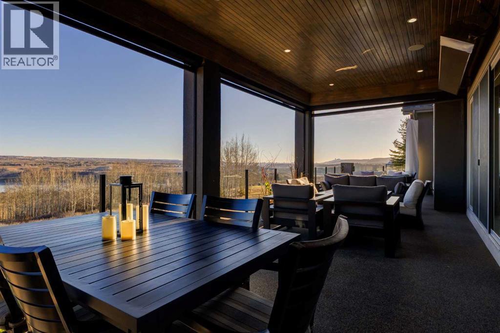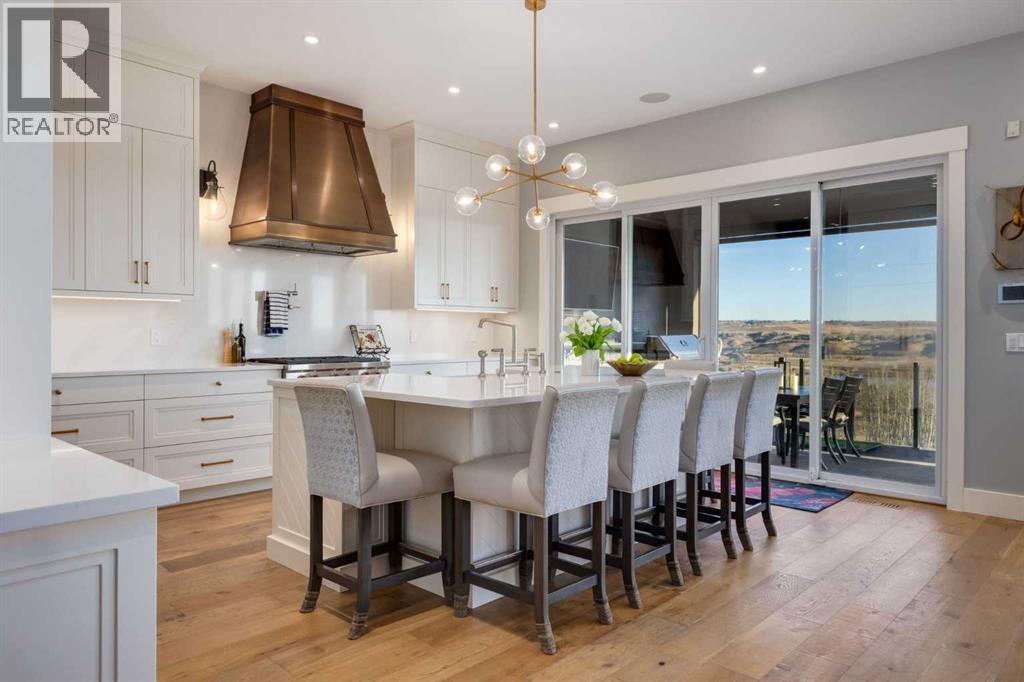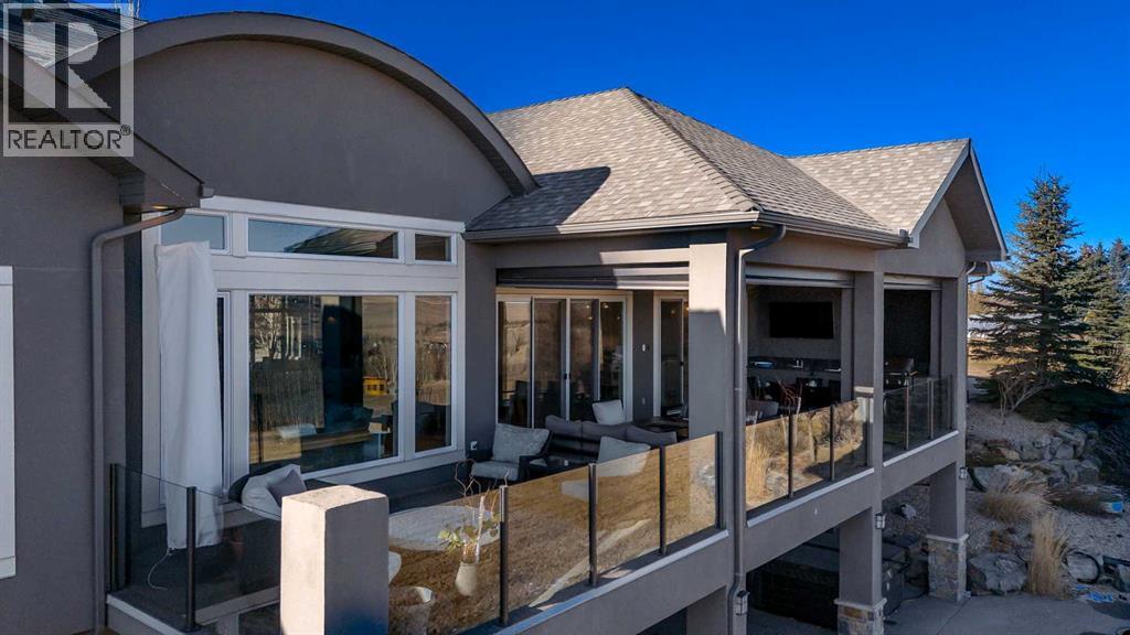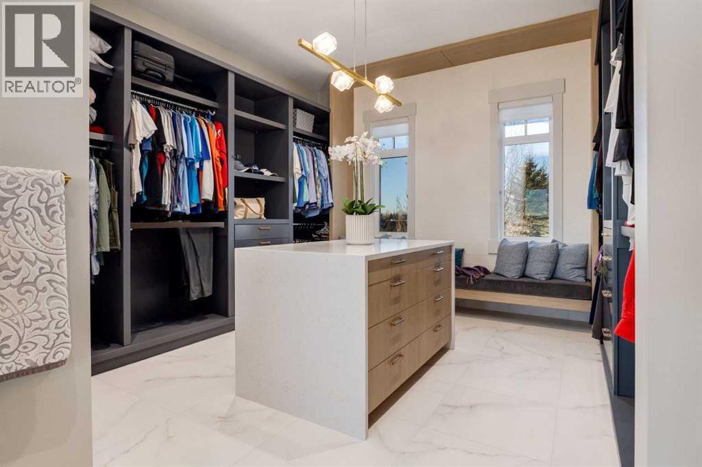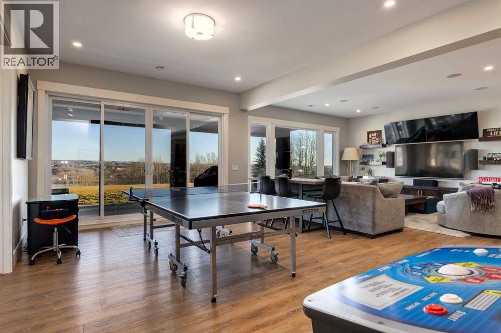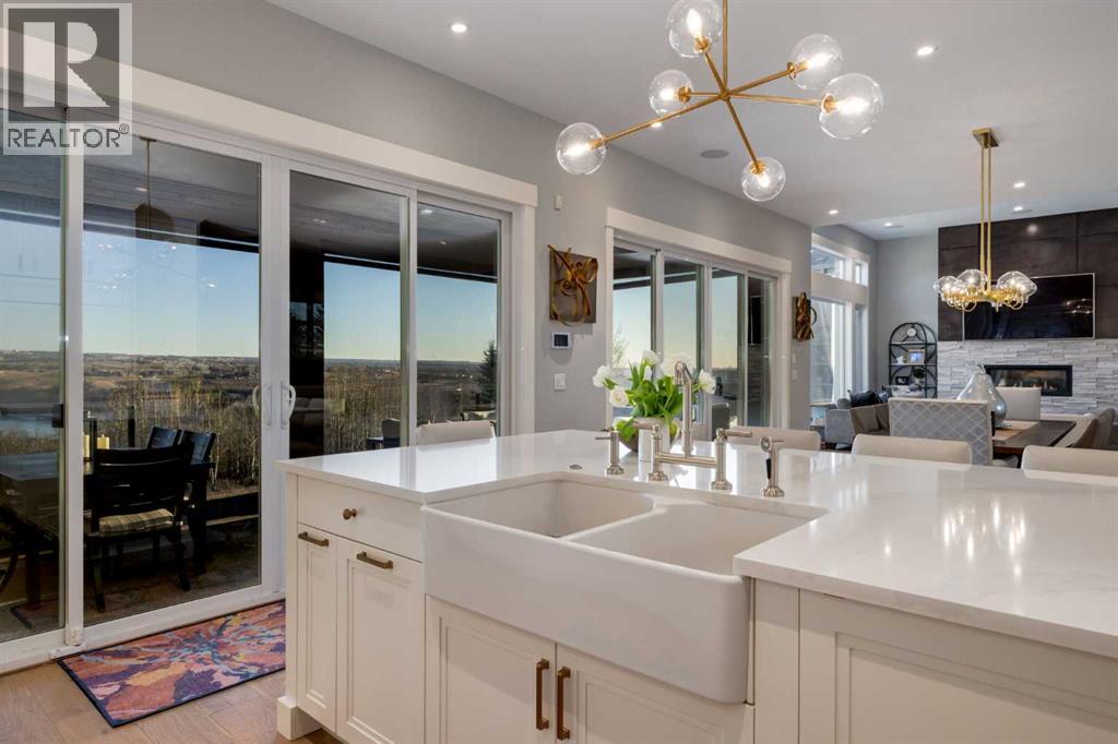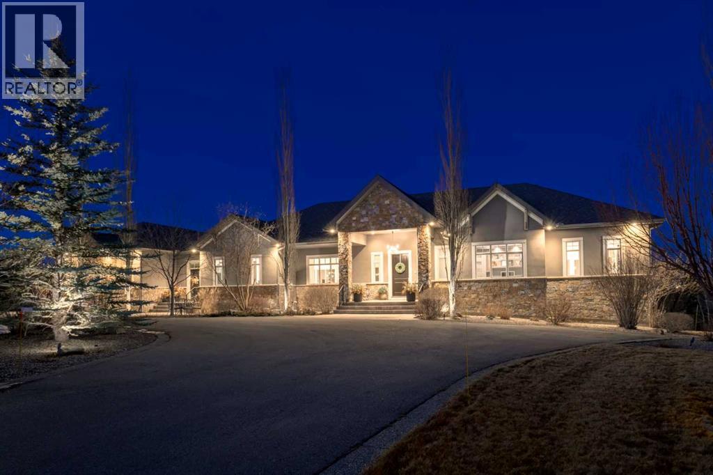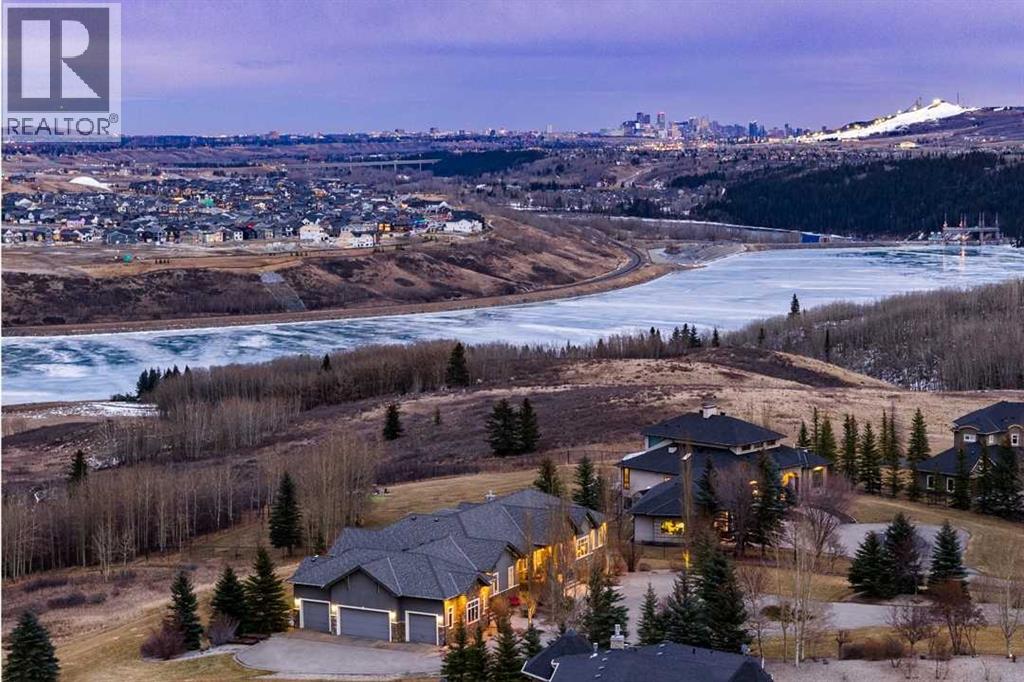 Set high on the escarpment in North Springbank is the most beautiful bungalow with unobstructed views of the city skyline, Bow River, the Springbank Links golf course, the mountains to the West and the breathtaking valley set below. Extensively renovated in 2022 and 2024, this property features over 2800 SF on the main level, over 400 SF on the outdoor living room deck, and another 2400 SF on the lower-level walk-out. The designer kitchen is gorgeous and has a beautiful butler’s pantry with a full wet bar and wine fridge. The living room is open to the dining room and kitchen areas and overlooks the stupendous views. The primary suite encompasses the entire SE wing of the home and has the most luxurious ensuite showcasing a gold framed shower, freestanding bathtub and waterfall vanities. The lower level features a games room, media area, home gym and three large bedrooms, each with their own ensuites and walk-in closets. The yard is professionally landscaped with mature trees and extensive garden areas. The oversized four car garage features a second mud room. This is a very special property in a unique location at the end of a private cul-de-sac and is within 10 minutes to local and private schools, shopping and recreational facilities. (id:55577)