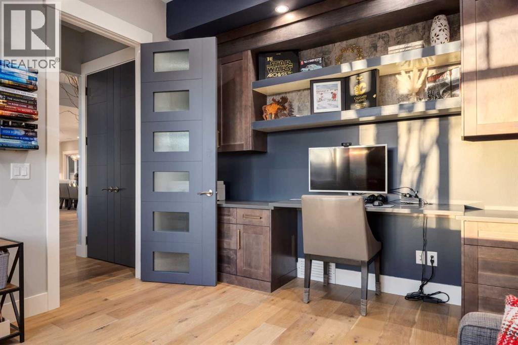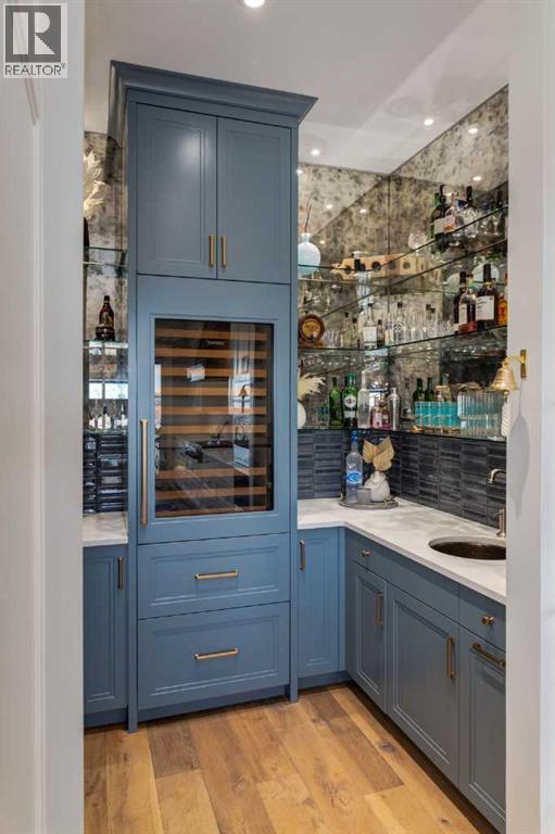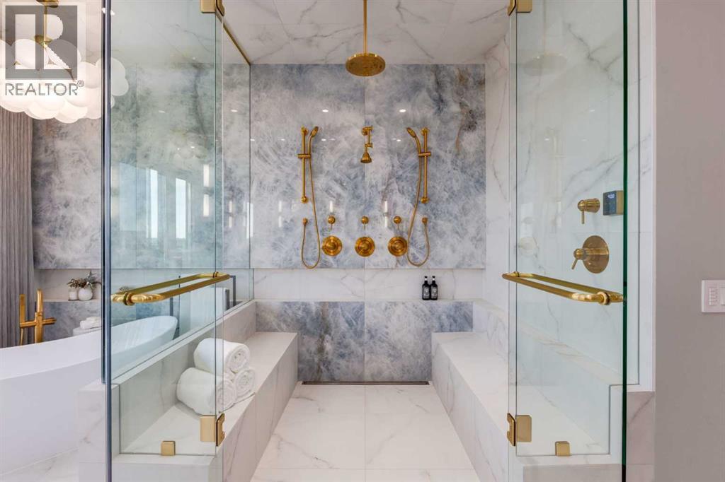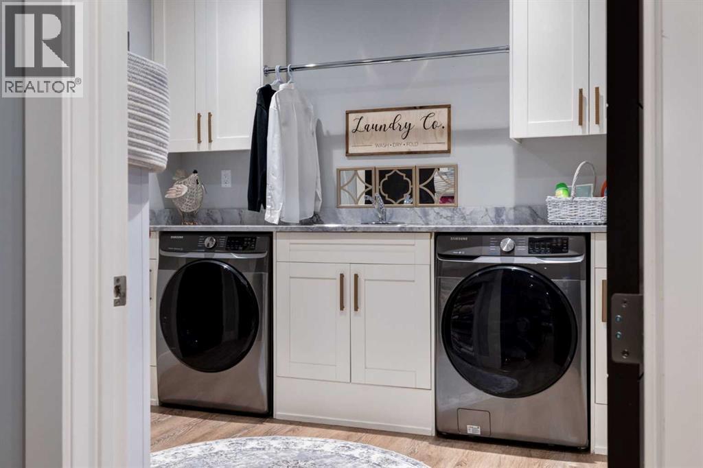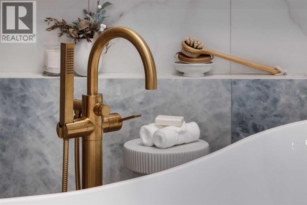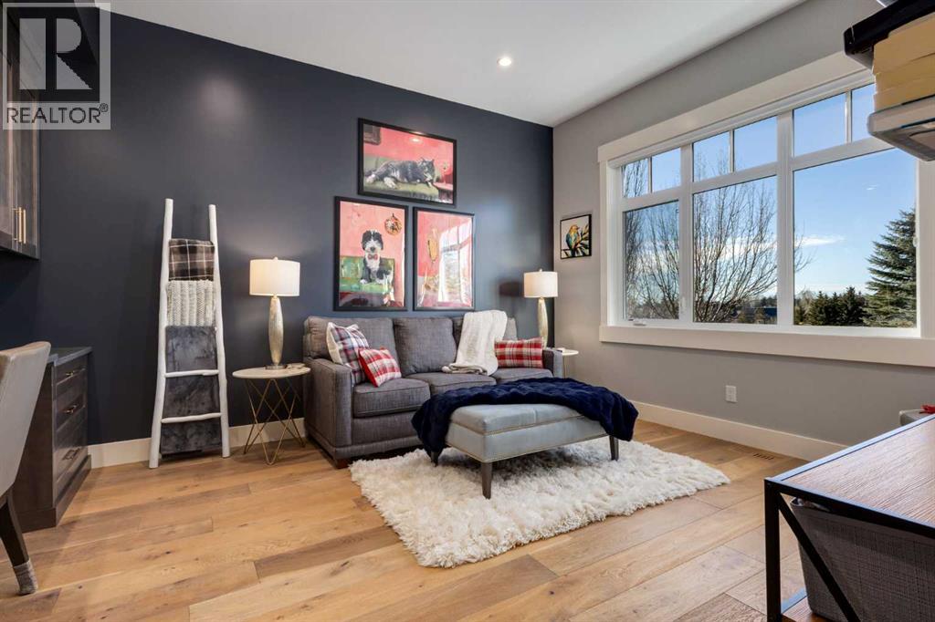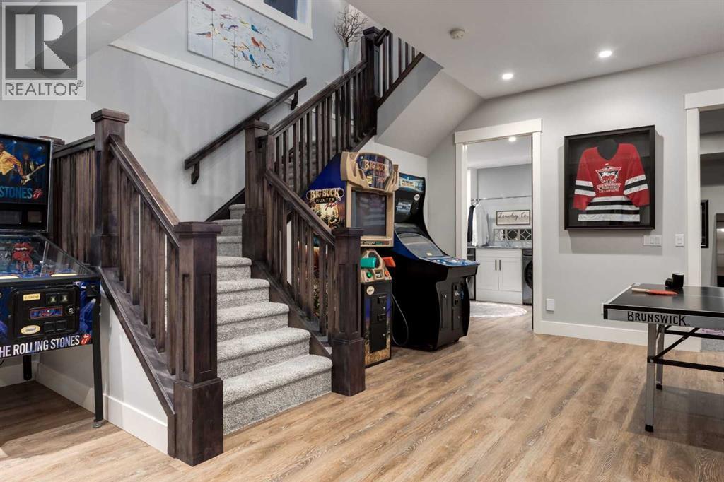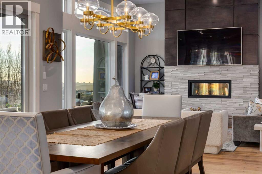 Set high on the escarpment in North Springbank is the most beautiful bungalow with unobstructed views of the city skyline, Bow River, the Springbank Links golf course, the mountains to the West and the breathtaking valley set below. Extensively renovated in 2022 and 2024, this property features over 2800 SF on the main level, over 400 SF on the outdoor living room deck, and another 2400 SF on the lower-level walk-out. The designer kitchen is gorgeous and has a beautiful butler’s pantry with a full wet bar and wine fridge. The living room is open to the dining room and kitchen areas and overlooks the stupendous views. The primary suite encompasses the entire SE wing of the home and has the most luxurious ensuite showcasing a gold framed shower, freestanding bathtub and waterfall vanities. The lower level features a games room, media area, home gym and three large bedrooms, each with their own ensuites and walk-in closets. The yard is professionally landscaped with mature trees and extensive garden areas. The oversized four car garage features a second mud room. This is a very special property in a unique location at the end of a private cul-de-sac and is within 10 minutes to local and private schools, shopping and recreational facilities. (id:55577)