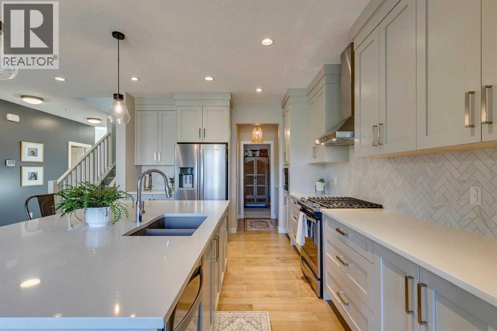 **OPEN HOUSES - Sat, Oct 25, 11 -1pm and Sun, Oct 26, 1-3pm **Welcome to 150 Cranbrook Circle – Nestled within an EXCLUSIVE POCKET OF CRANSTON RIVERSTONE, this property sits just steps from a children’s tot park and the BOW RIVER PATHWAYS. Situated on a beautifully landscaped corner lot, this warm and welcoming home offers over 2,600 sq.ft. of thoughtfully designed living space—ready for your family to create new memories in a setting surrounded by nature. A BRIGHT TWO-STOREY FOYER greets you, open to the level above. Morning light floods the great room through a wall of OVERSIZED WINDOWS overlooking the spacious backyard and mature trees. Step outside to a large back deck with plenty of room for dining and lounging, and unwind in the inviting hot tub after a long day. The kitchen, styled with full-height cabinetry, QUARTZ COUNTERTOPS, and ELEGANT HERRINGBONE TILE, connects seamlessly to the mudroom and includes a LARGE PANTRY plus a convenient coffee bar/nook tucked neatly out of sight. A MAIN-FLOOR OFFICE enjoys excellent natural light—perfect for working from home. Upstairs, the bonus room captures tranquil RIVER VIEWS, while three generous bedrooms and a large laundry room provide ideal family function. The bright primary ensuite features expansive windows, a DOUBLE VANITY, OVERSIZED SHOWER, and a HUGE WALK-IN CLOSET. The spacious basement awaits your creative touch, and the TRIPLE GARAGE plus corner lot offer AMPLE PARKING and STORAGE options. Discover this beautiful home in CRANSTON RIVERSTONE—Calgary’s best-kept secret—where Fish Creek Park and the Bow River are just outside your door. Enjoy easy access to schools, shopping, restaurants, and the South Health Campus and Seton YMCA, all only minutes away. (id:55577)